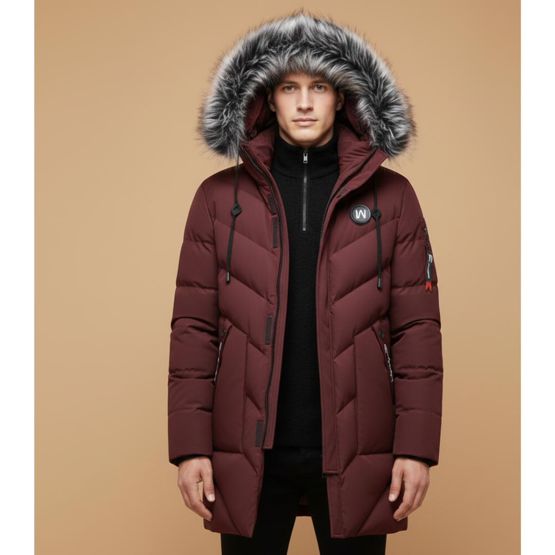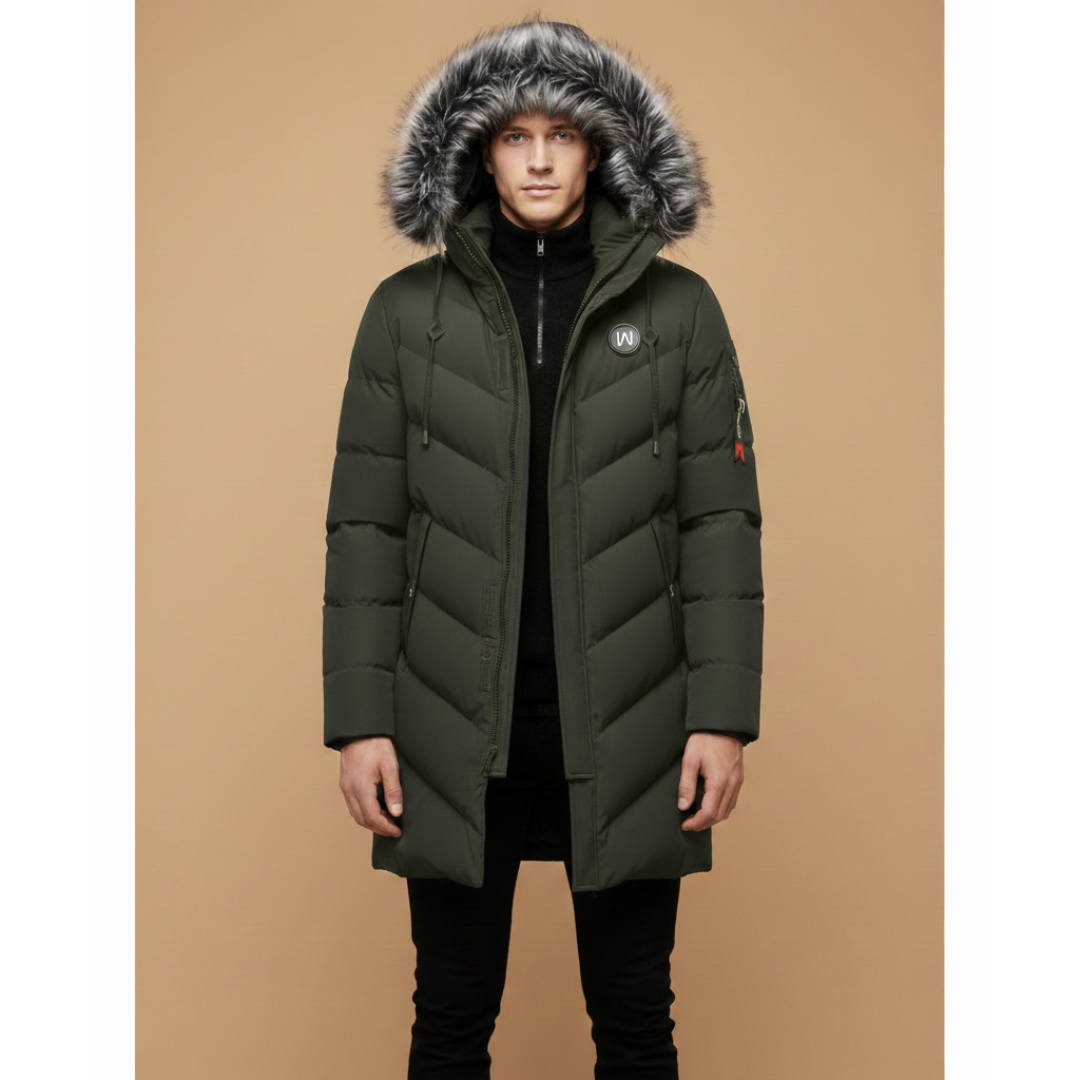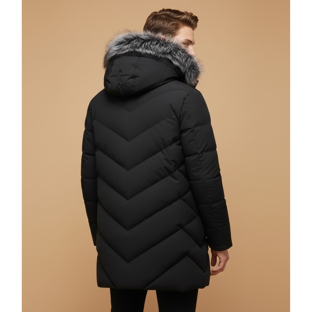 Men’s Quilted Parka with Hood and Zip Closure