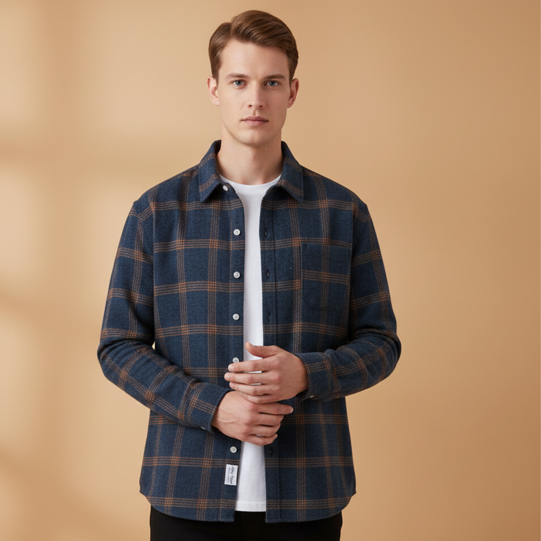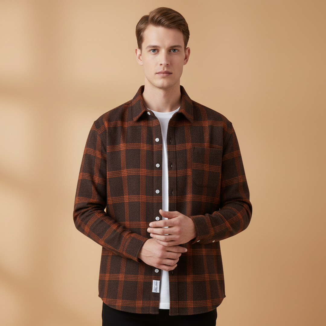 Men’s Check Shirt with Button Closure and Pocket