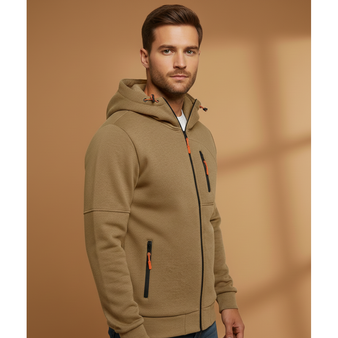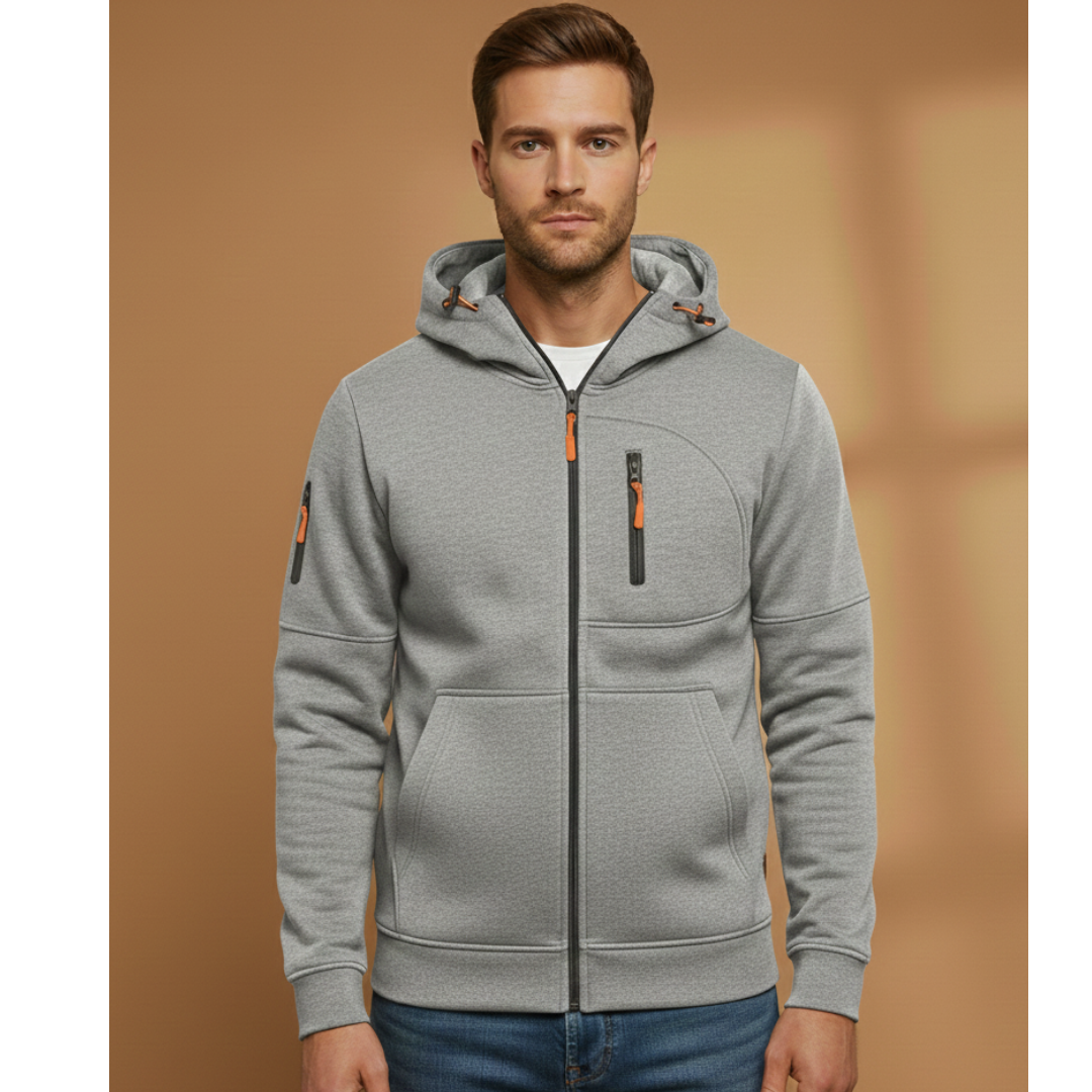 Men’s zip-up hoodie with multi pockets