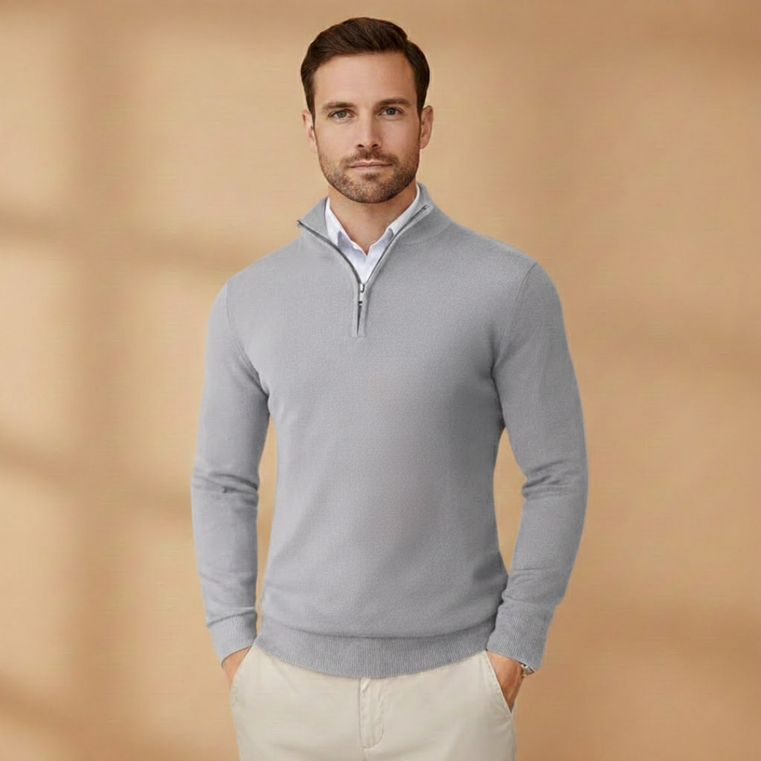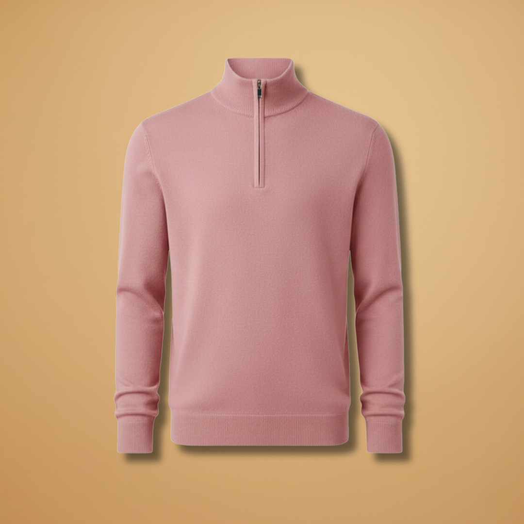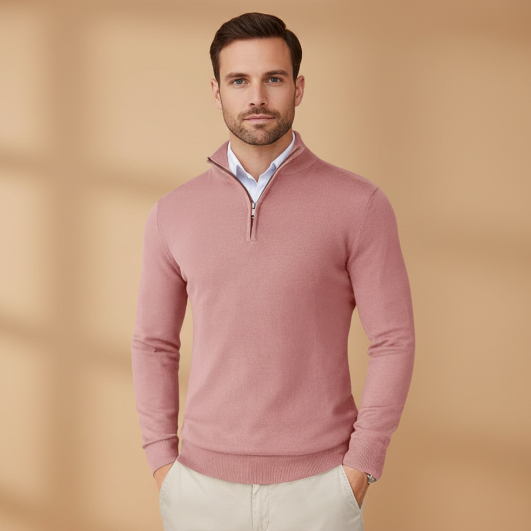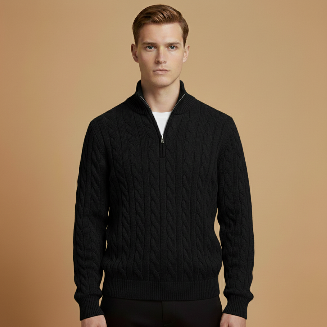 Men’s Knit Sweater with Zip Collar and Ribbed Cuffs