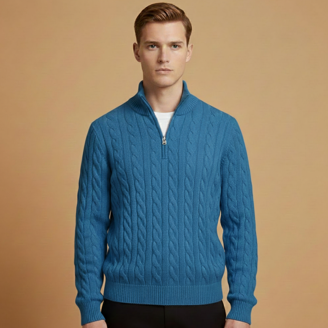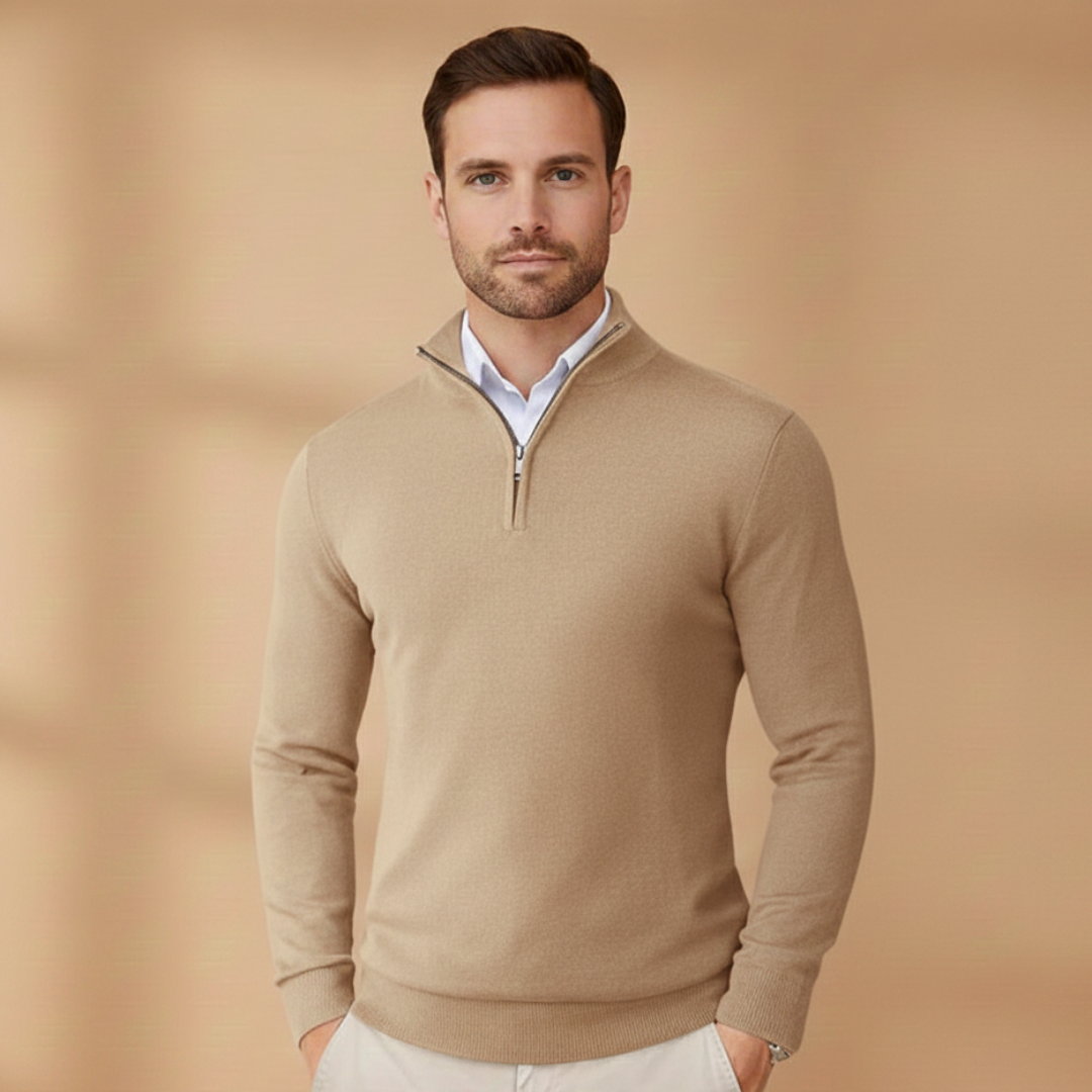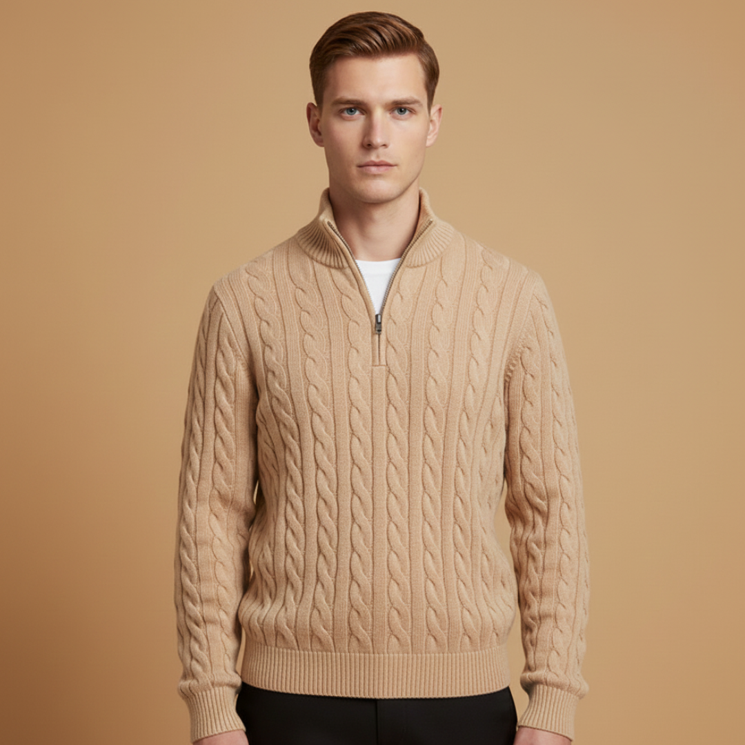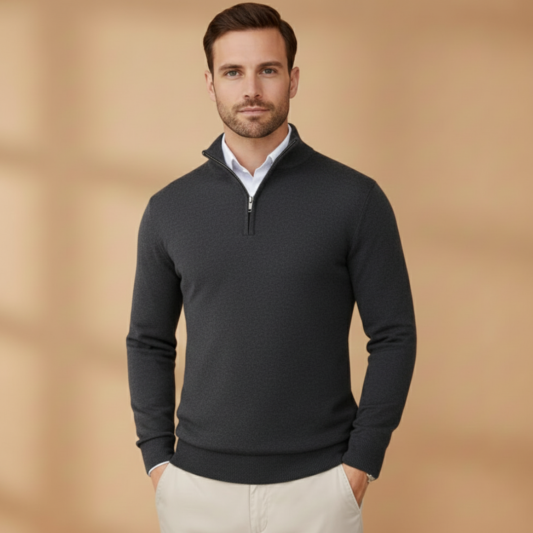Men’s Knit Sweater with Zip Collar and Ribbed Cuffs