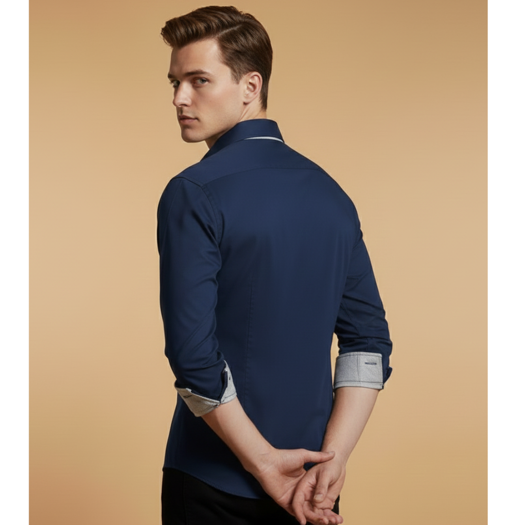 Men’s Shirt with Contrasting Placket and Cuffs