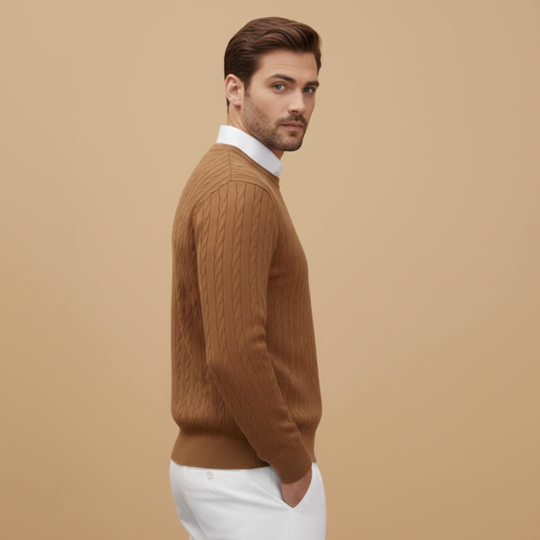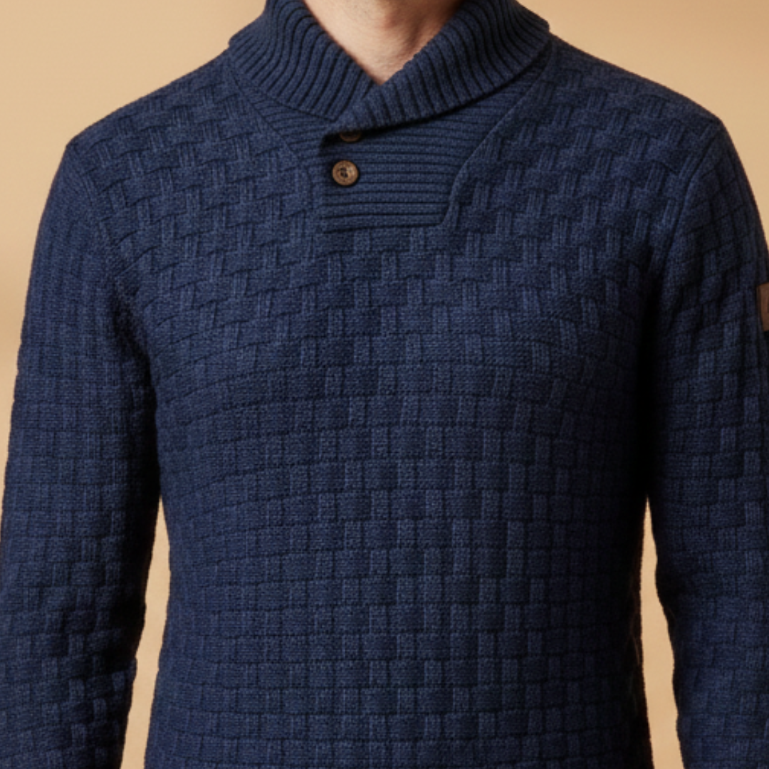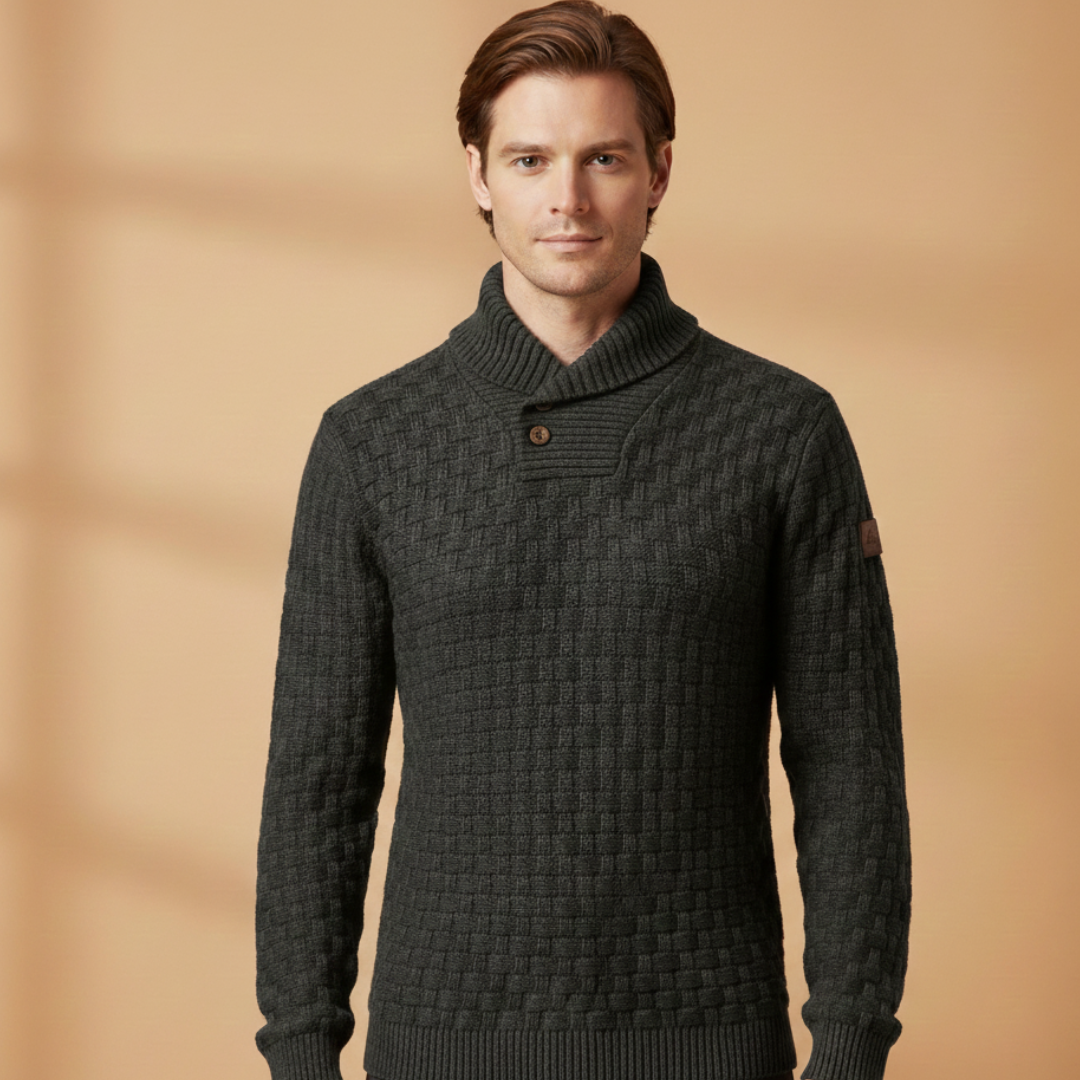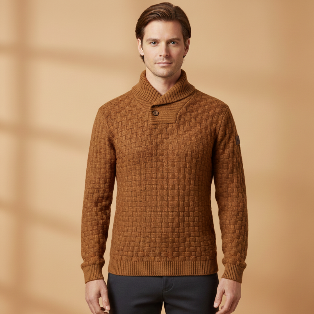 Men’s Sweater with Shawl Collar and Braided Pattern