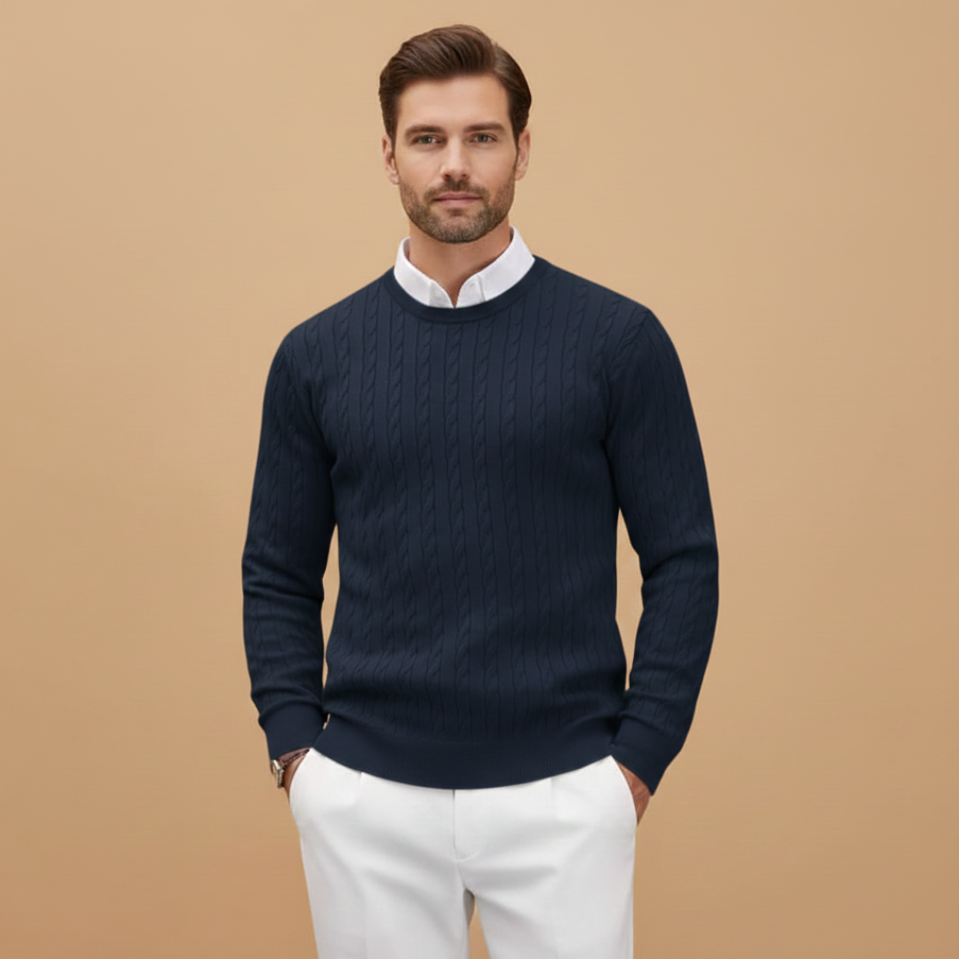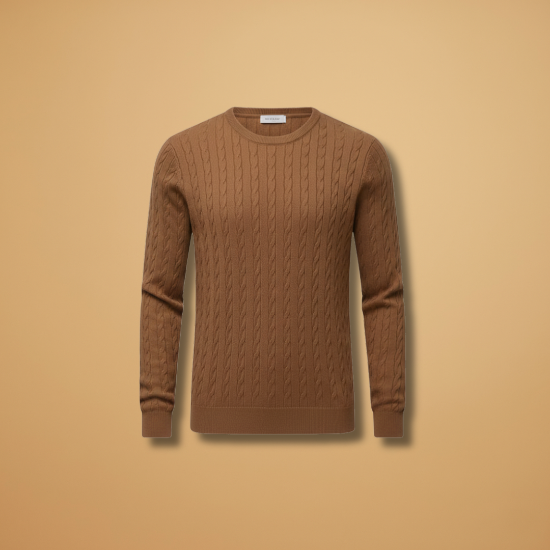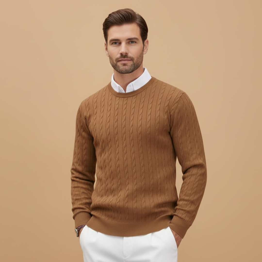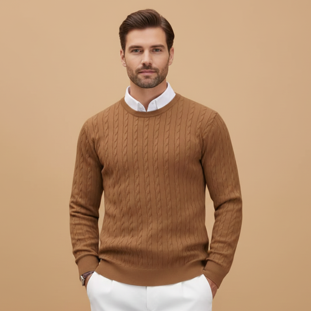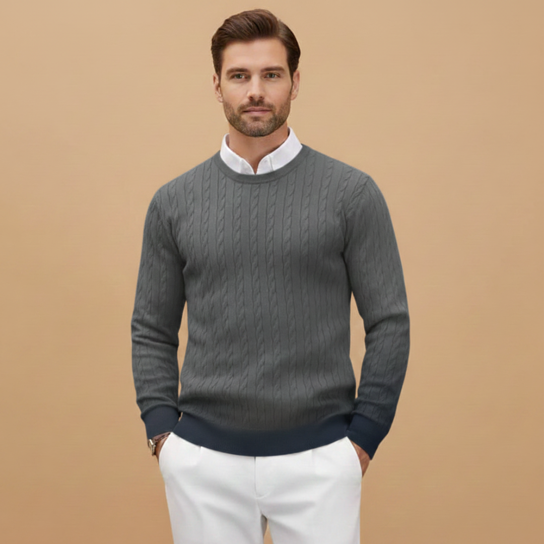 Men’s Sweater with Shawl Collar and Braided Pattern