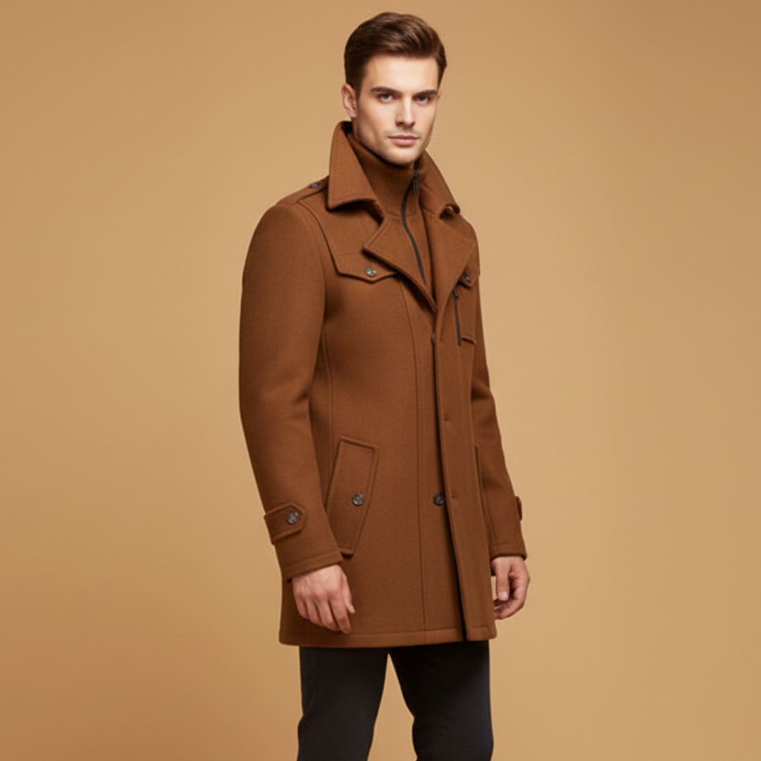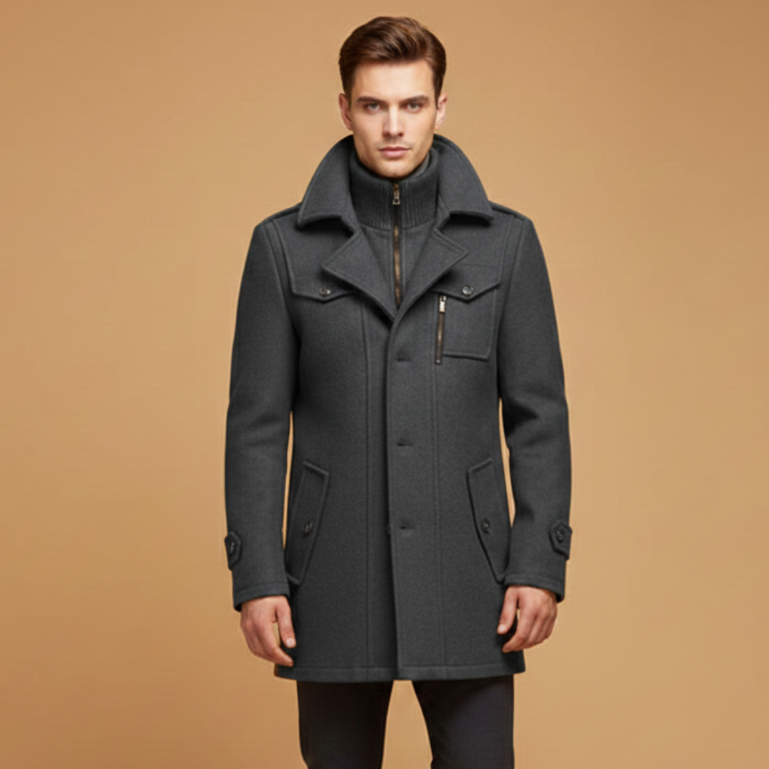 Men’s Winter Coat with Stand-Up Collar and Zip Closure