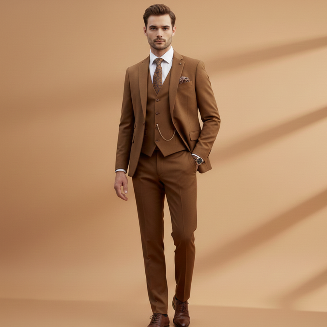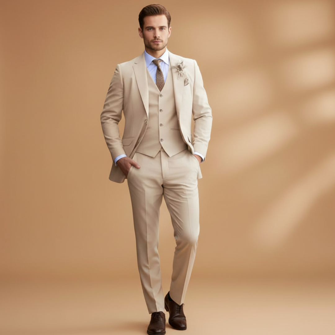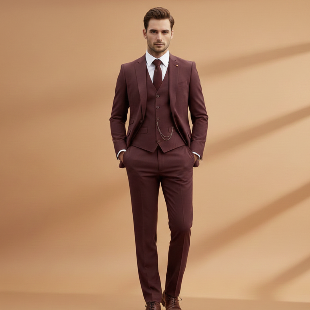 Men’s Three-Piece Suit with Jacket Vest and Trousers