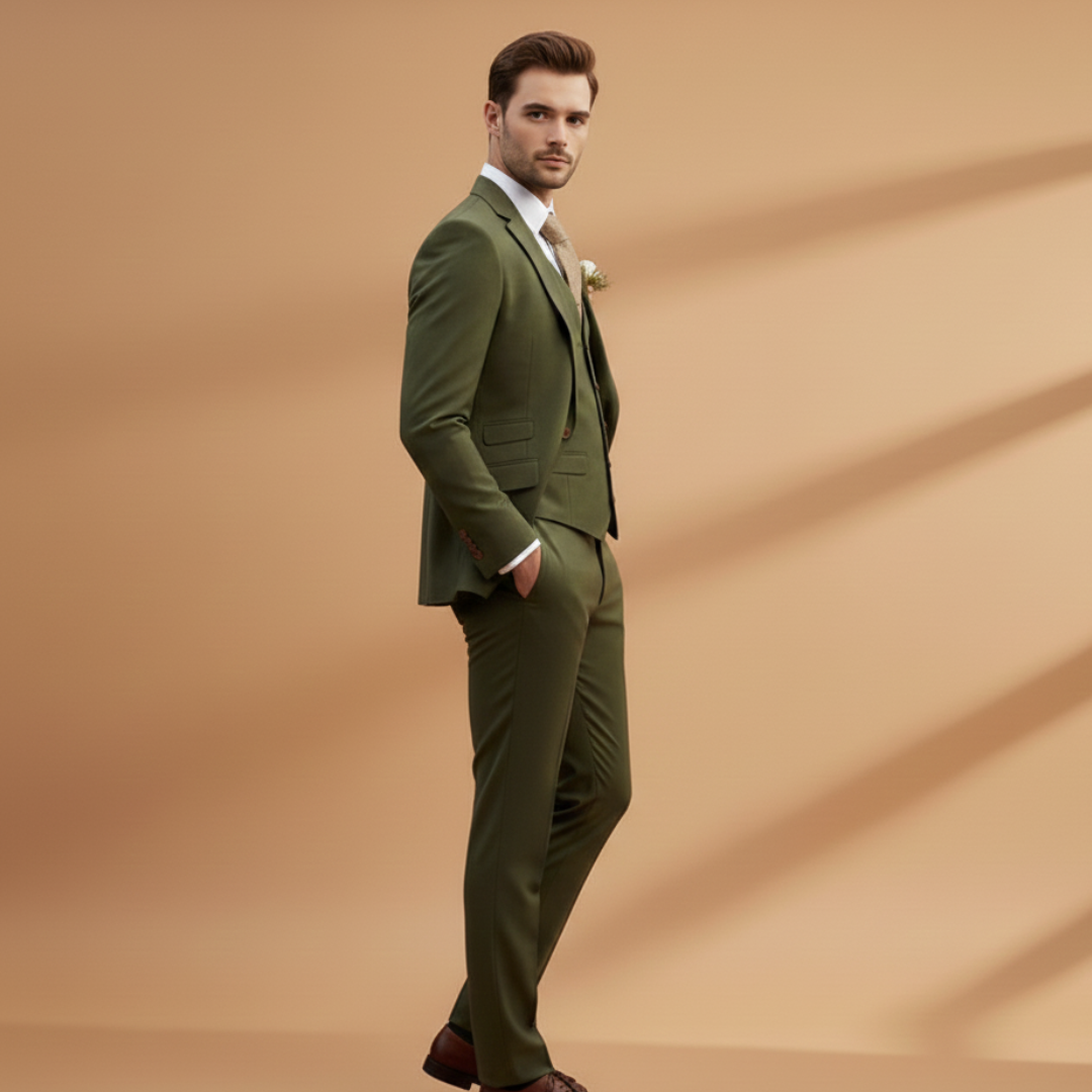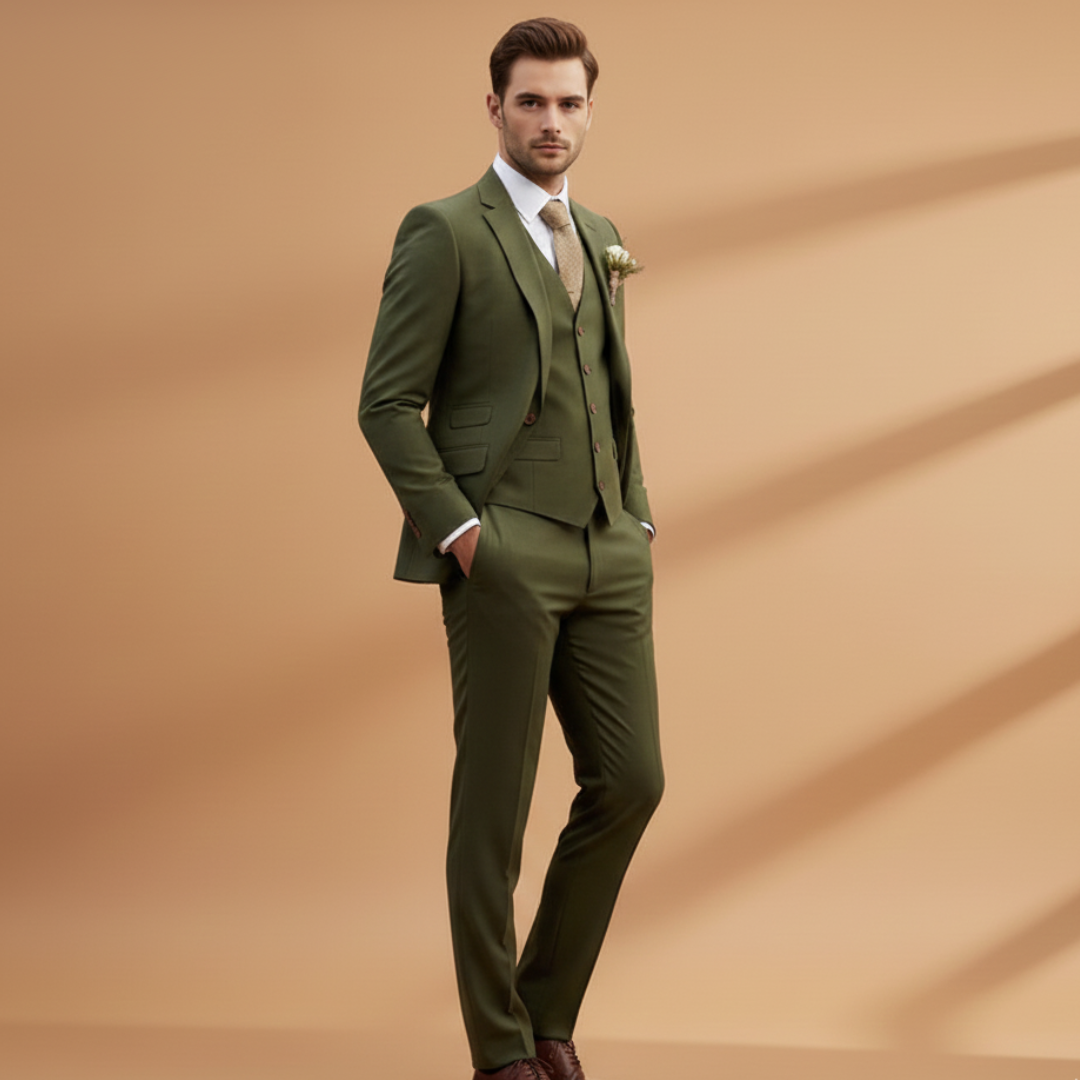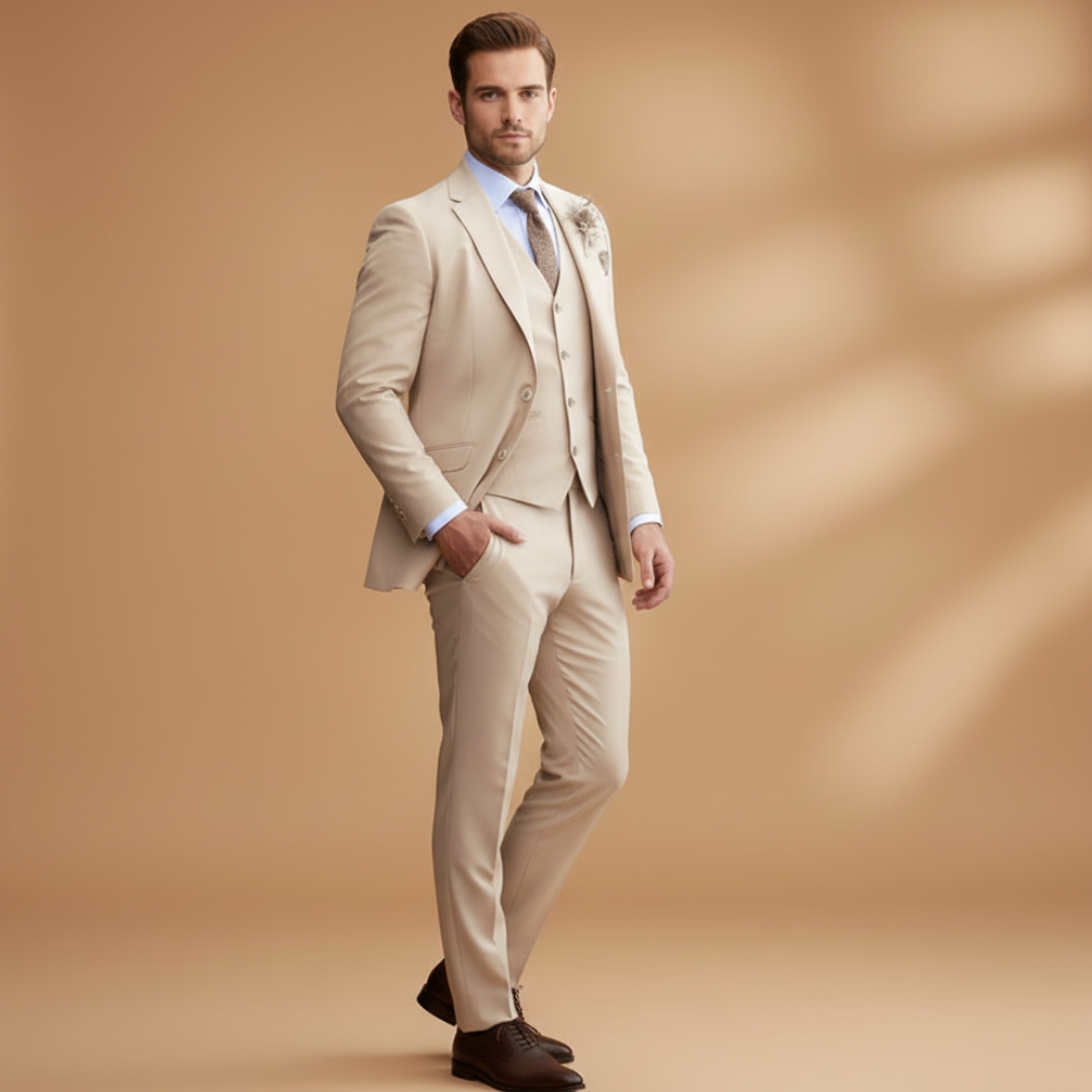 Men’s Three-Piece Suit with Jacket Vest and Trousers