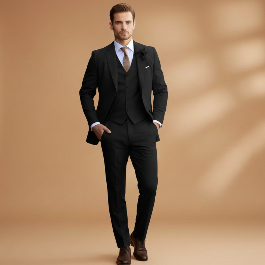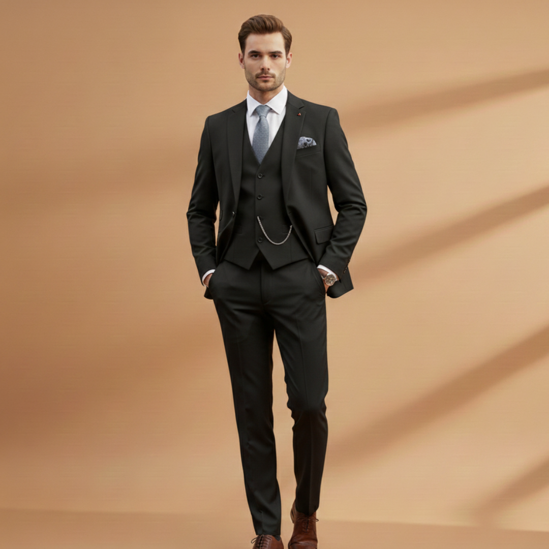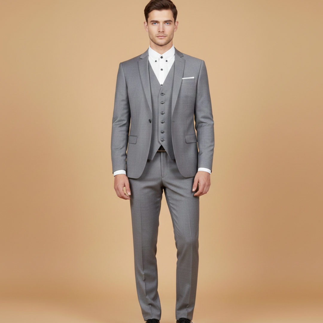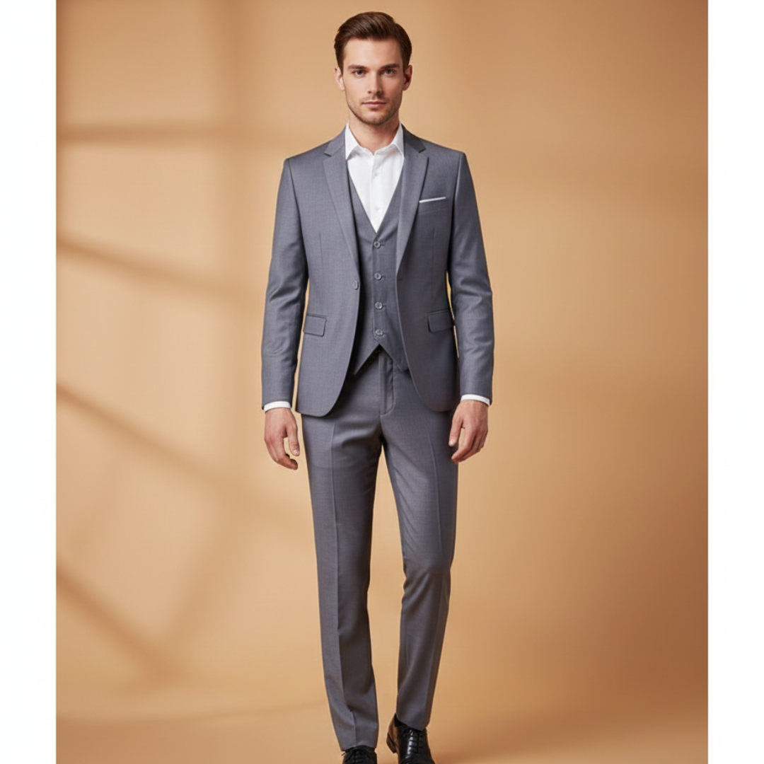 Men’s Three-Piece Suit with Vest and Straight Trousers