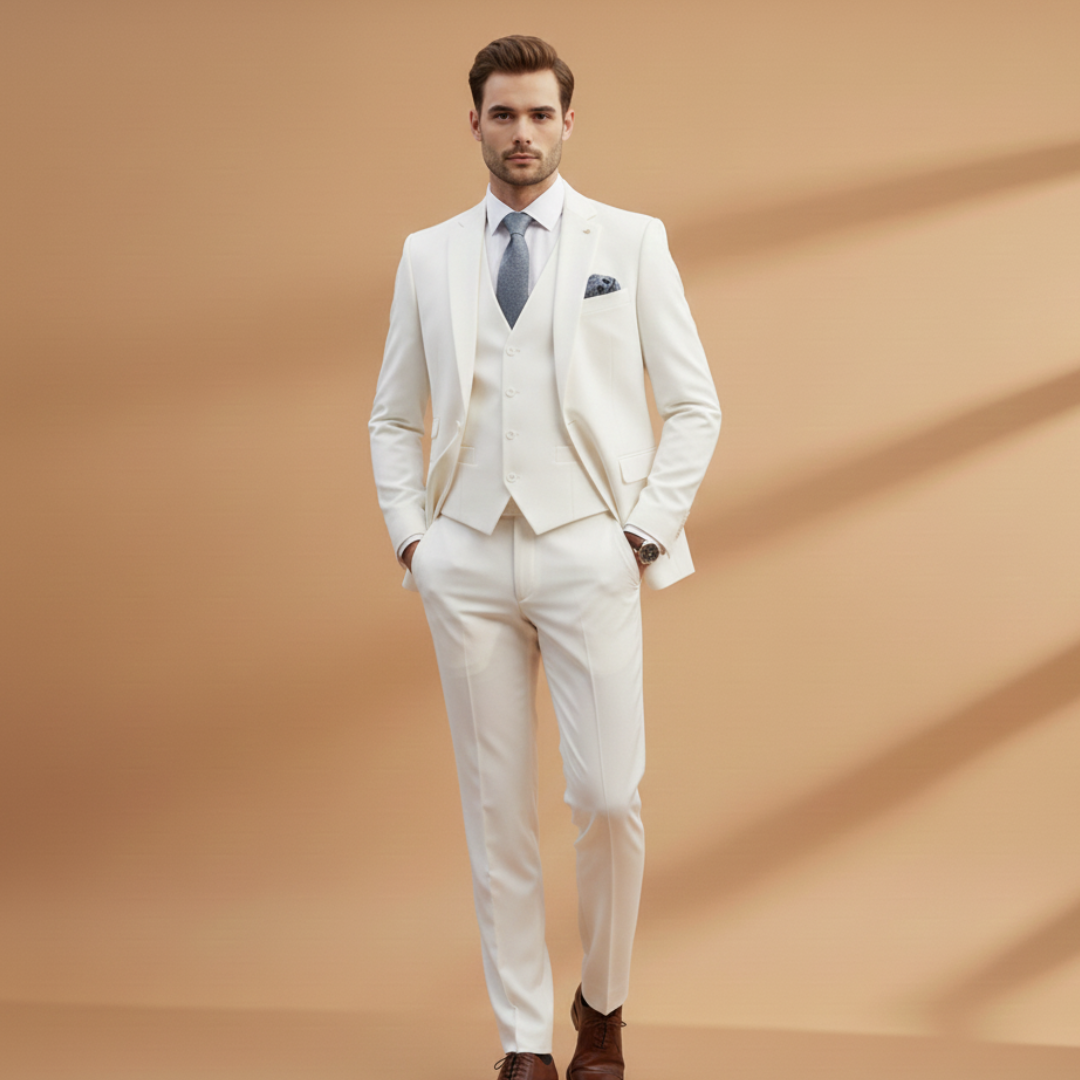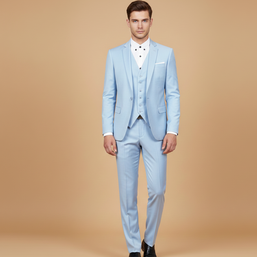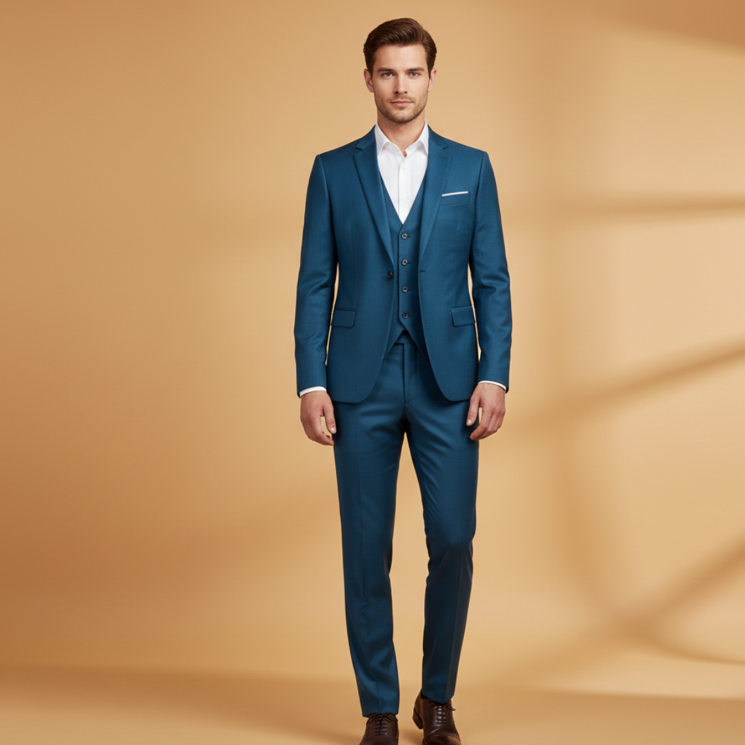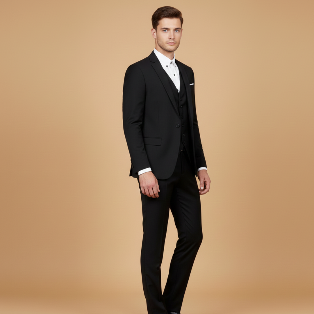 Men’s Three-Piece Suit with Vest and Straight Trousers