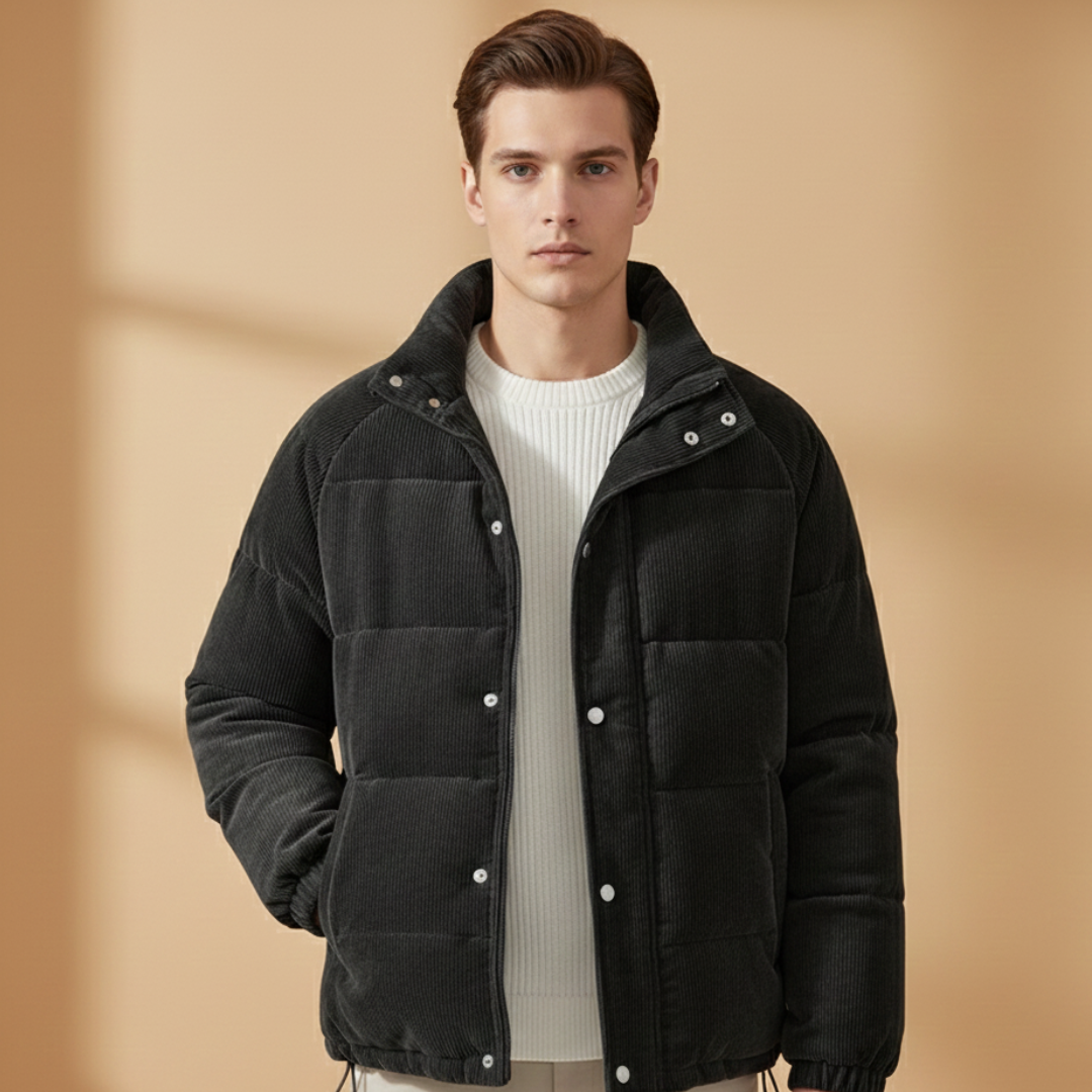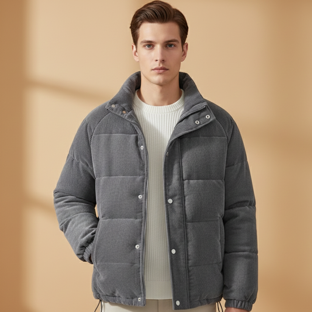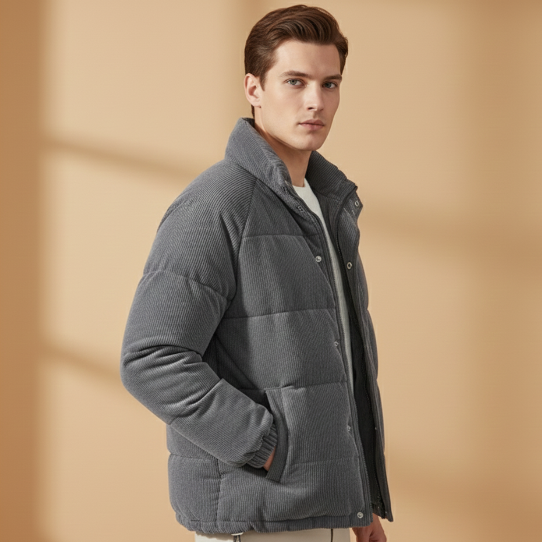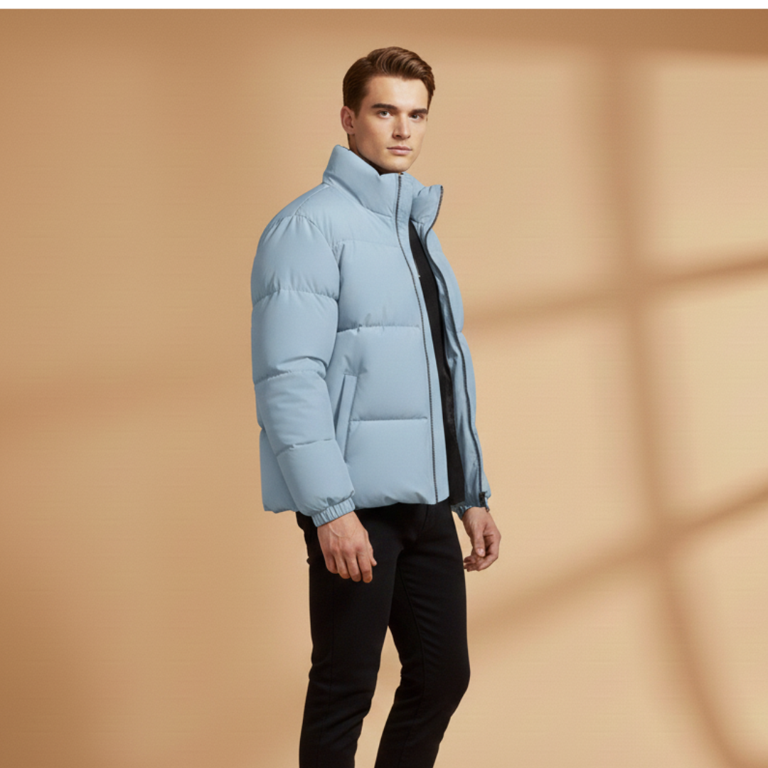 Men’s Quilted Jacket with Stand Collar and Zipper