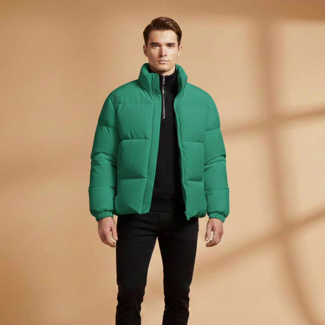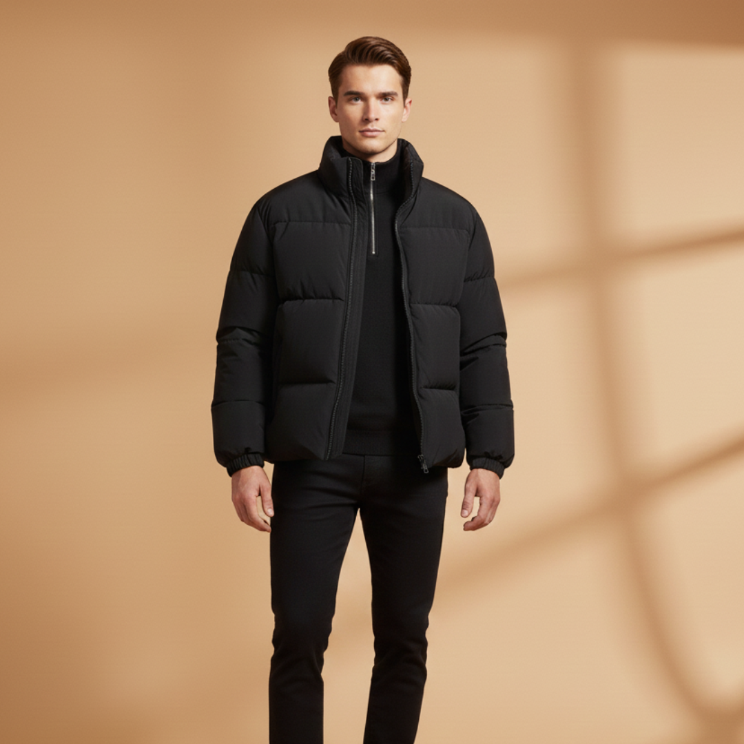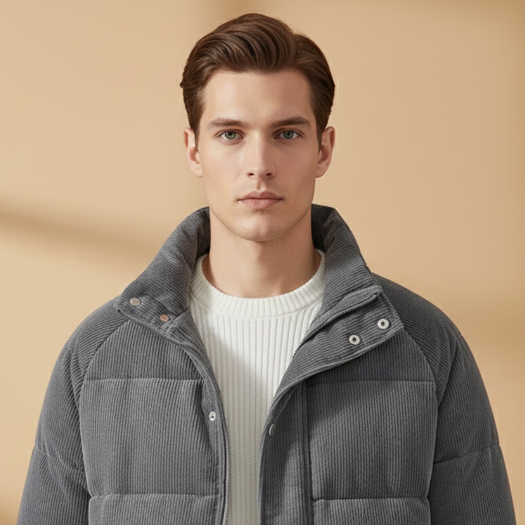 Men’s Quilted Jacket with Stand Collar and Zipper