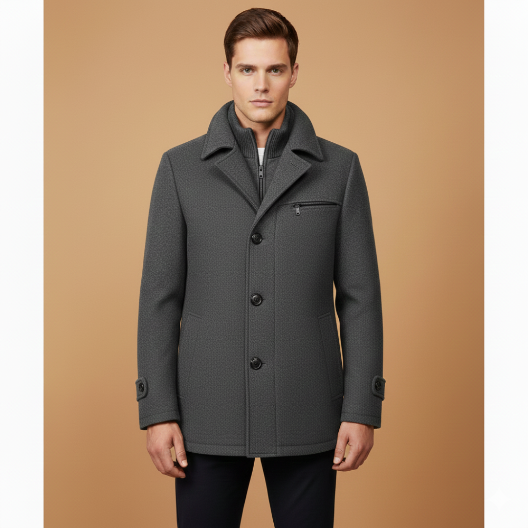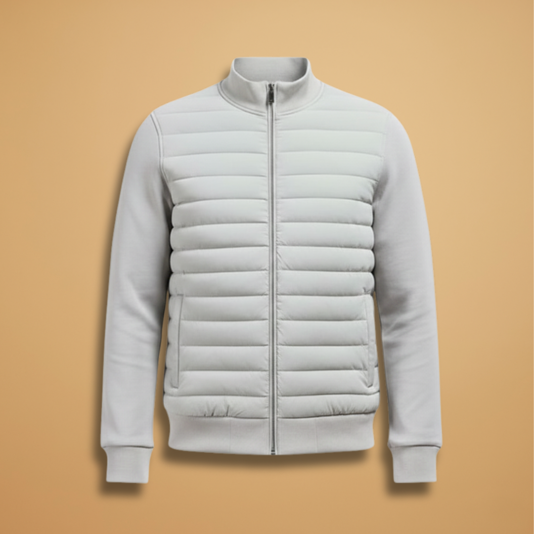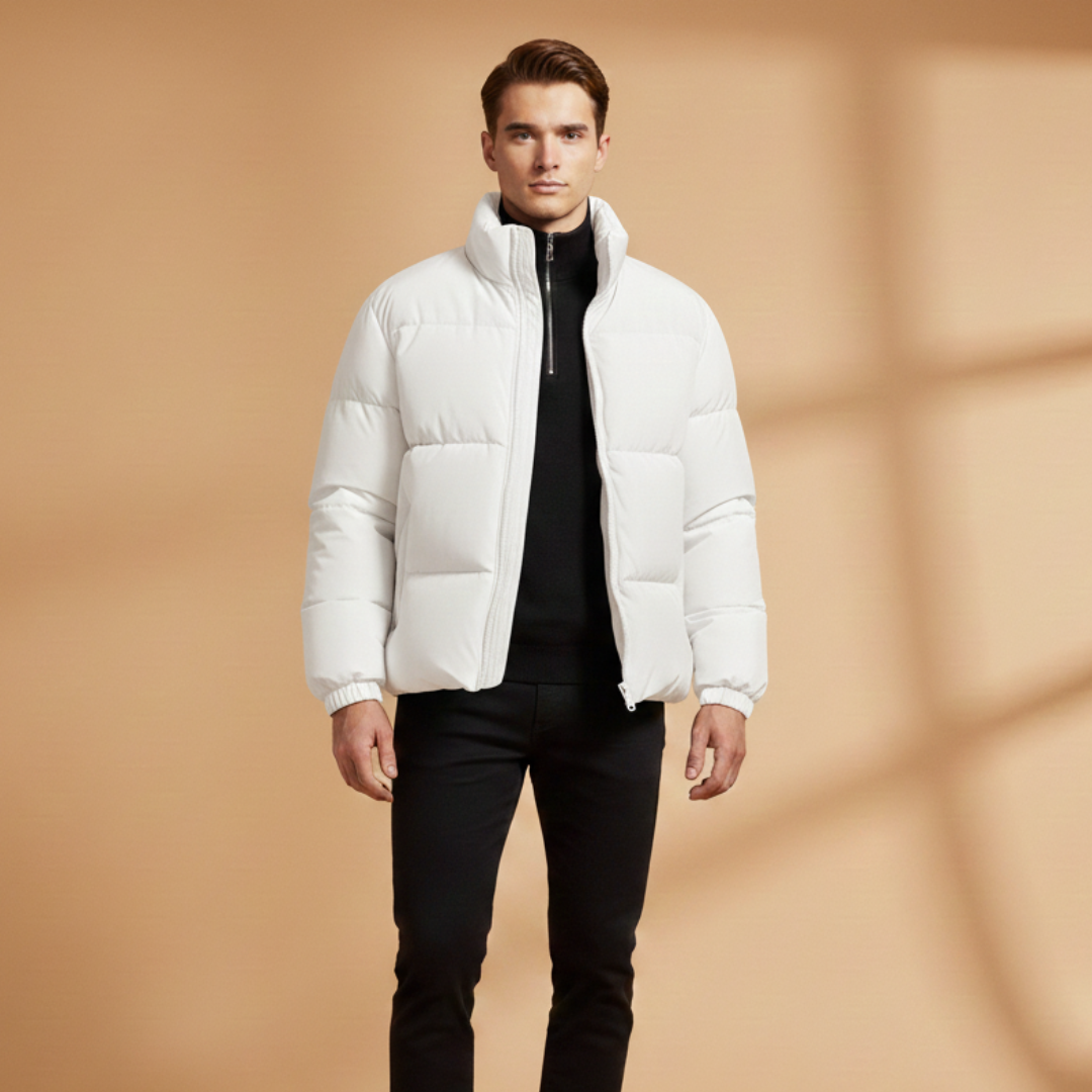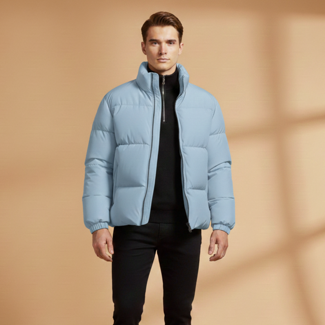 Men’s Quilted Jacket with Stand Collar and Zipper
