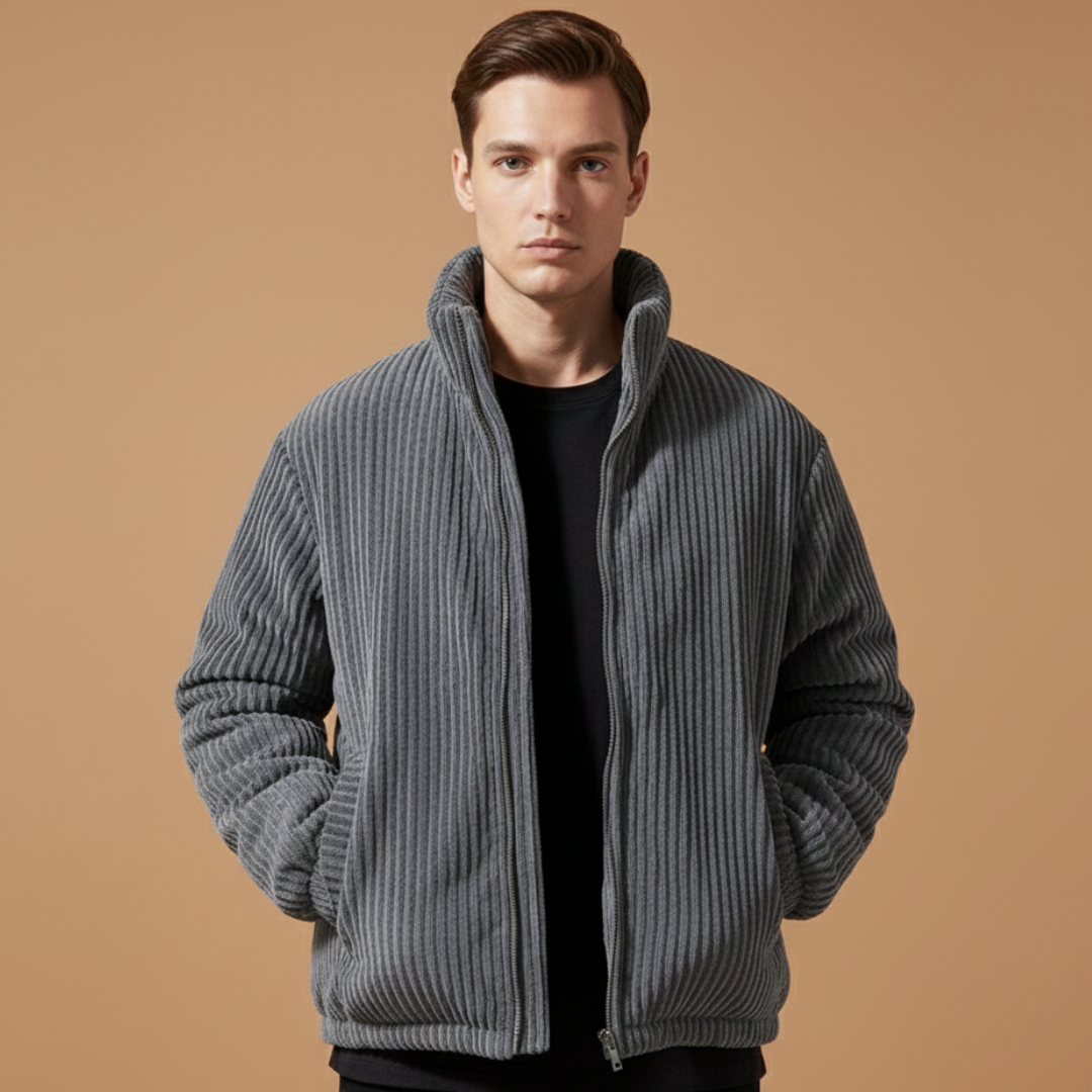 Men’s Cord Jacket with Snap Closure and Side Pockets