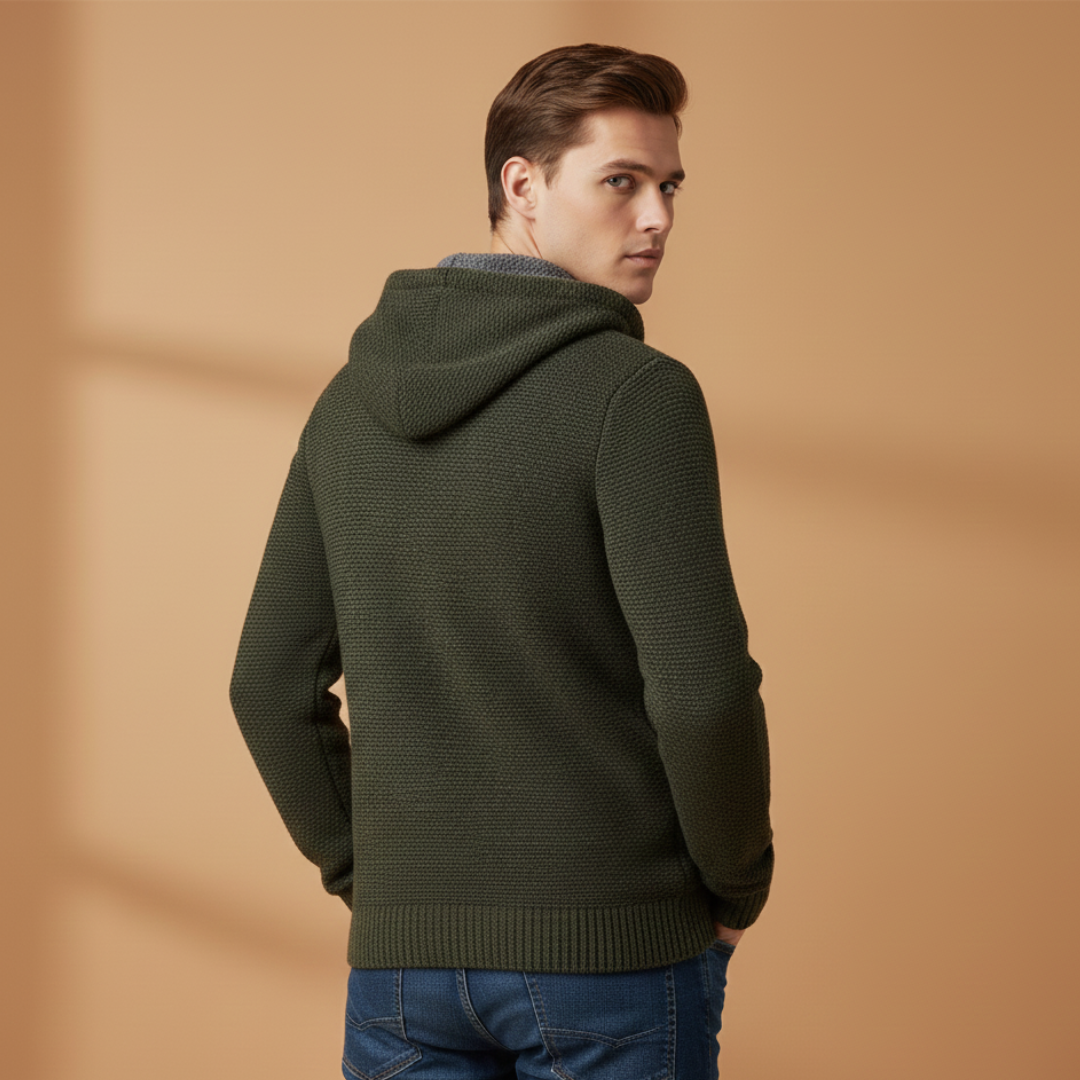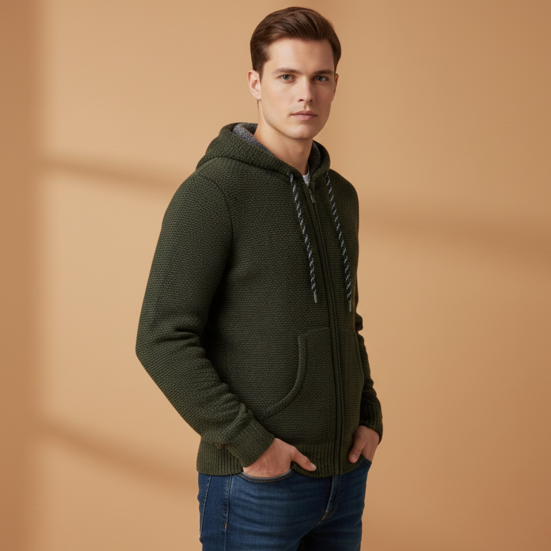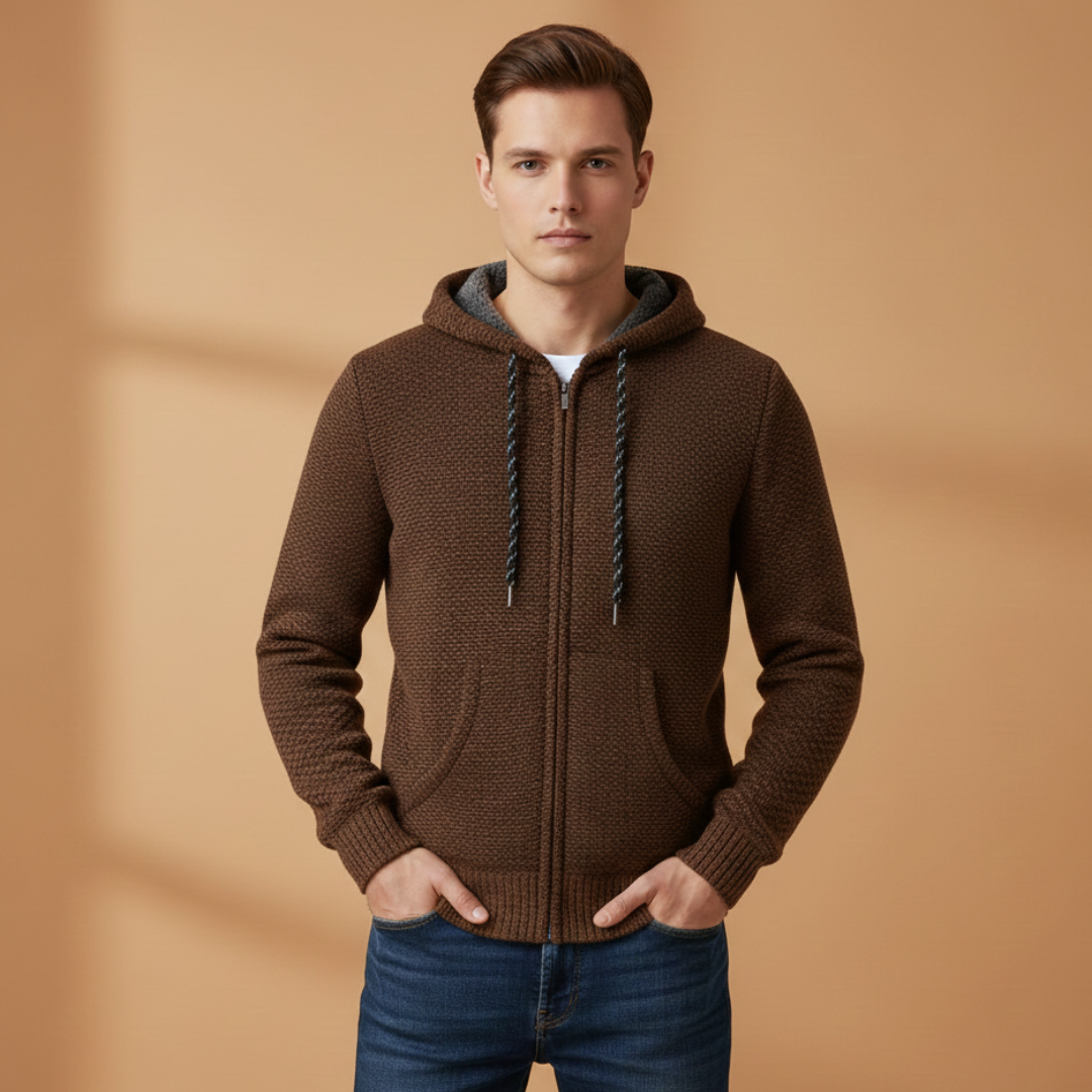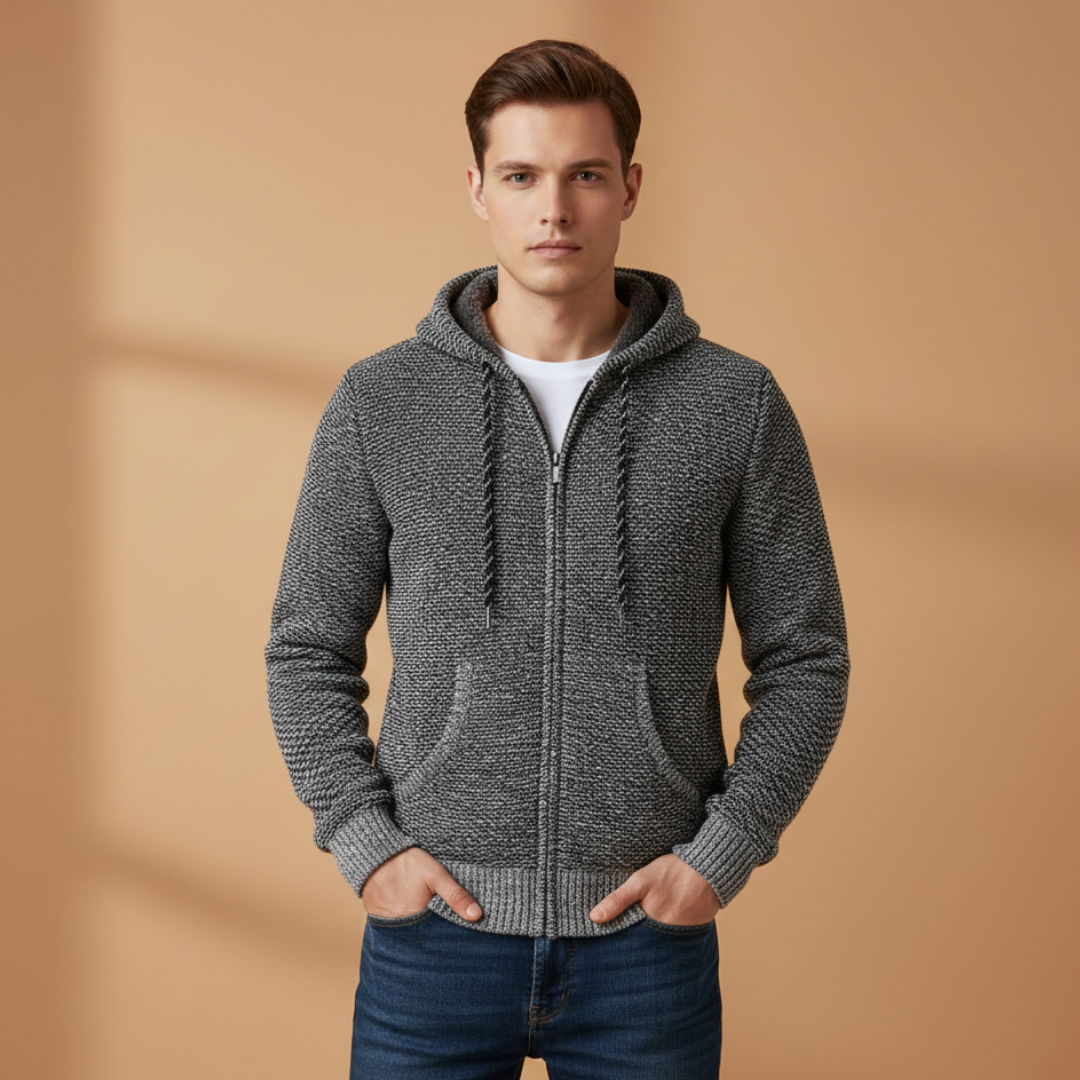 Men’s Knitted Hoodie Cardigan with Zip and Pockets