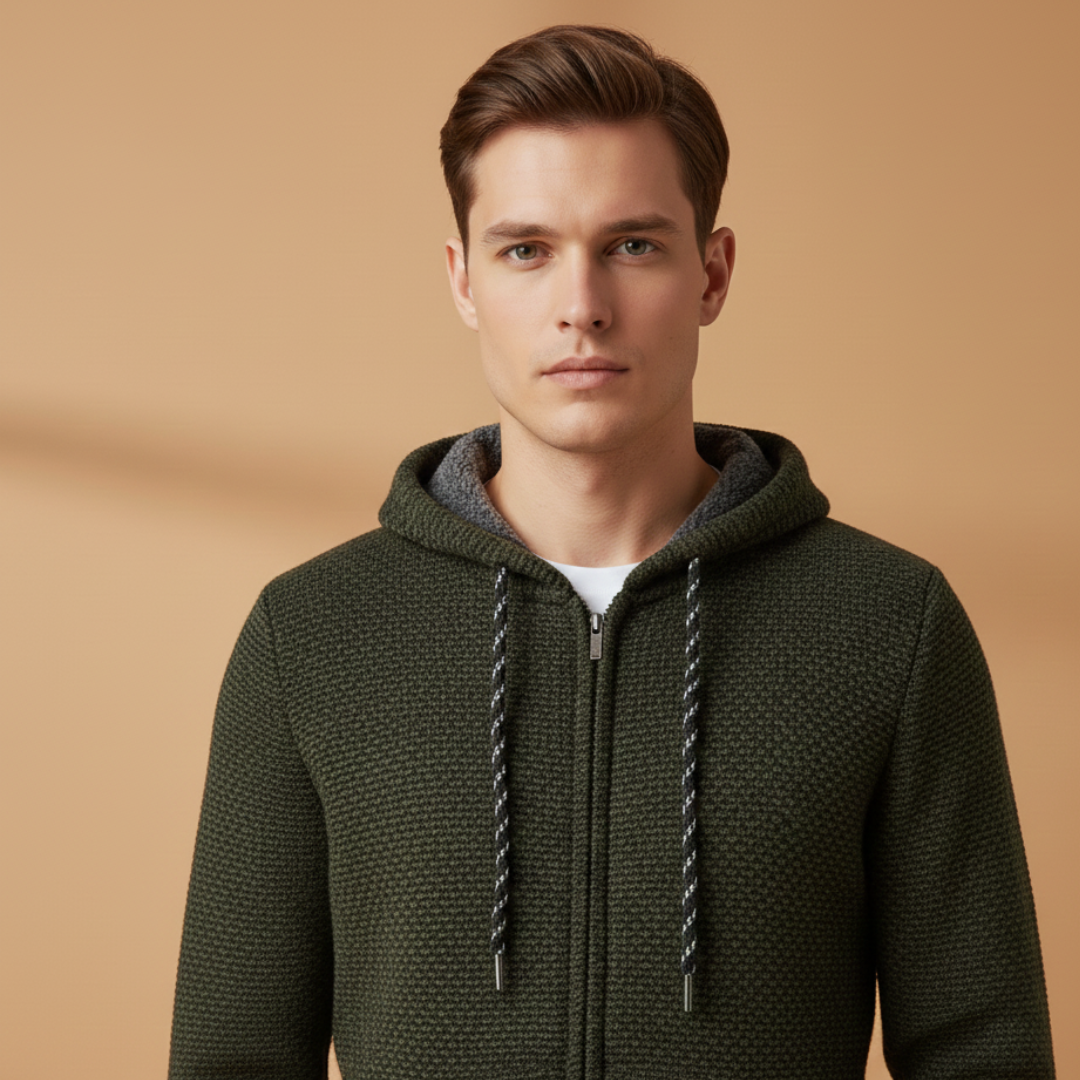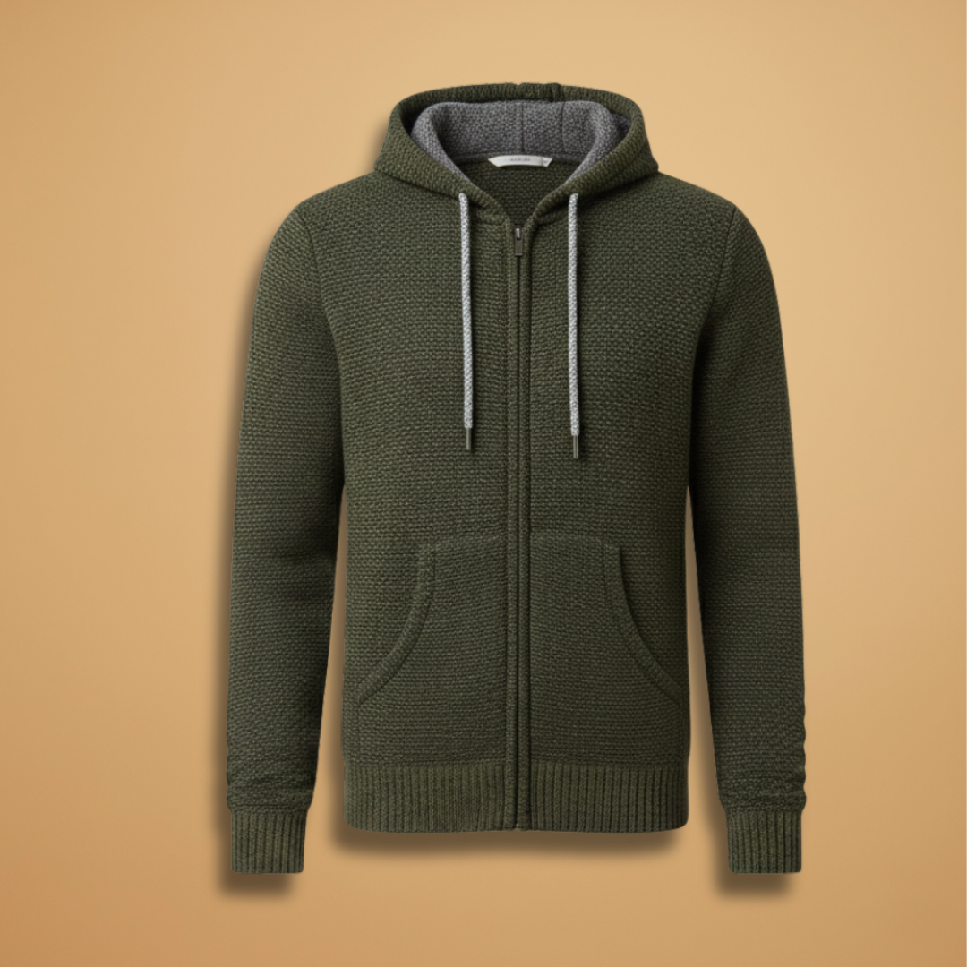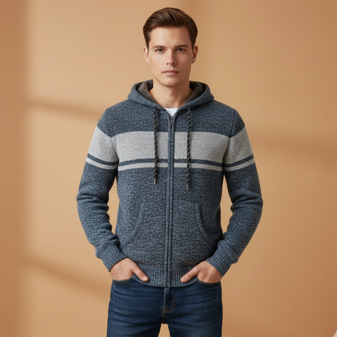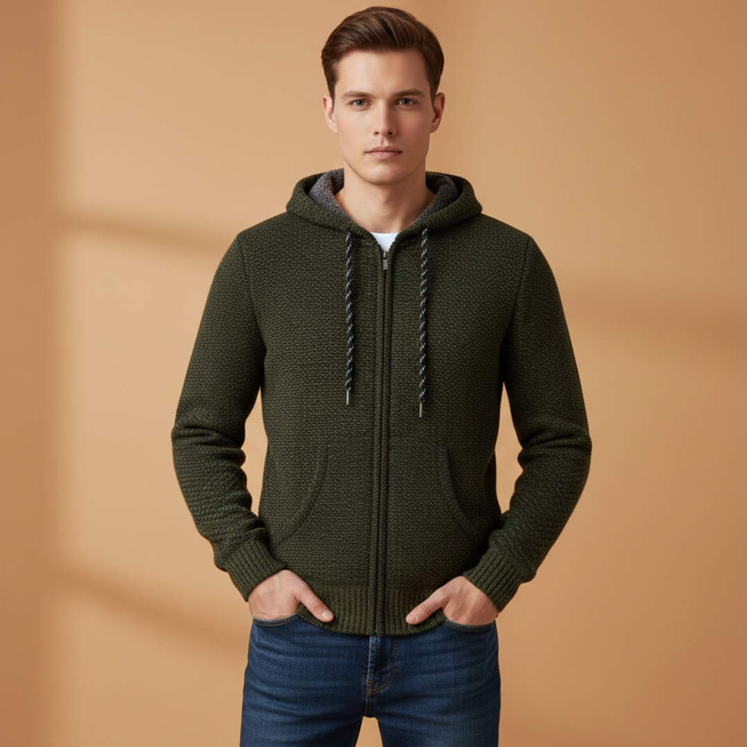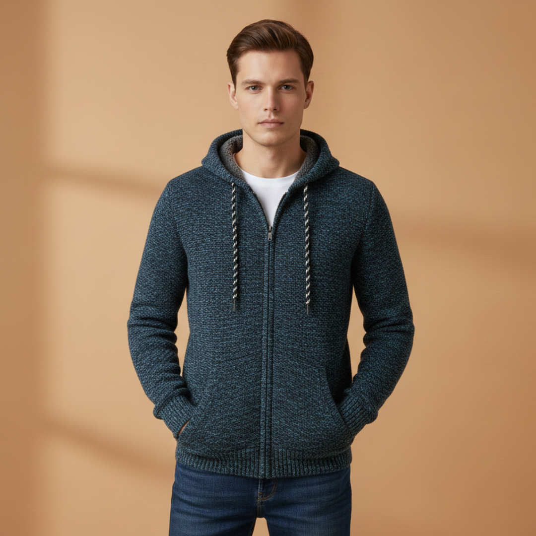 Men’s Knitted Hoodie Cardigan with Zip and Pockets