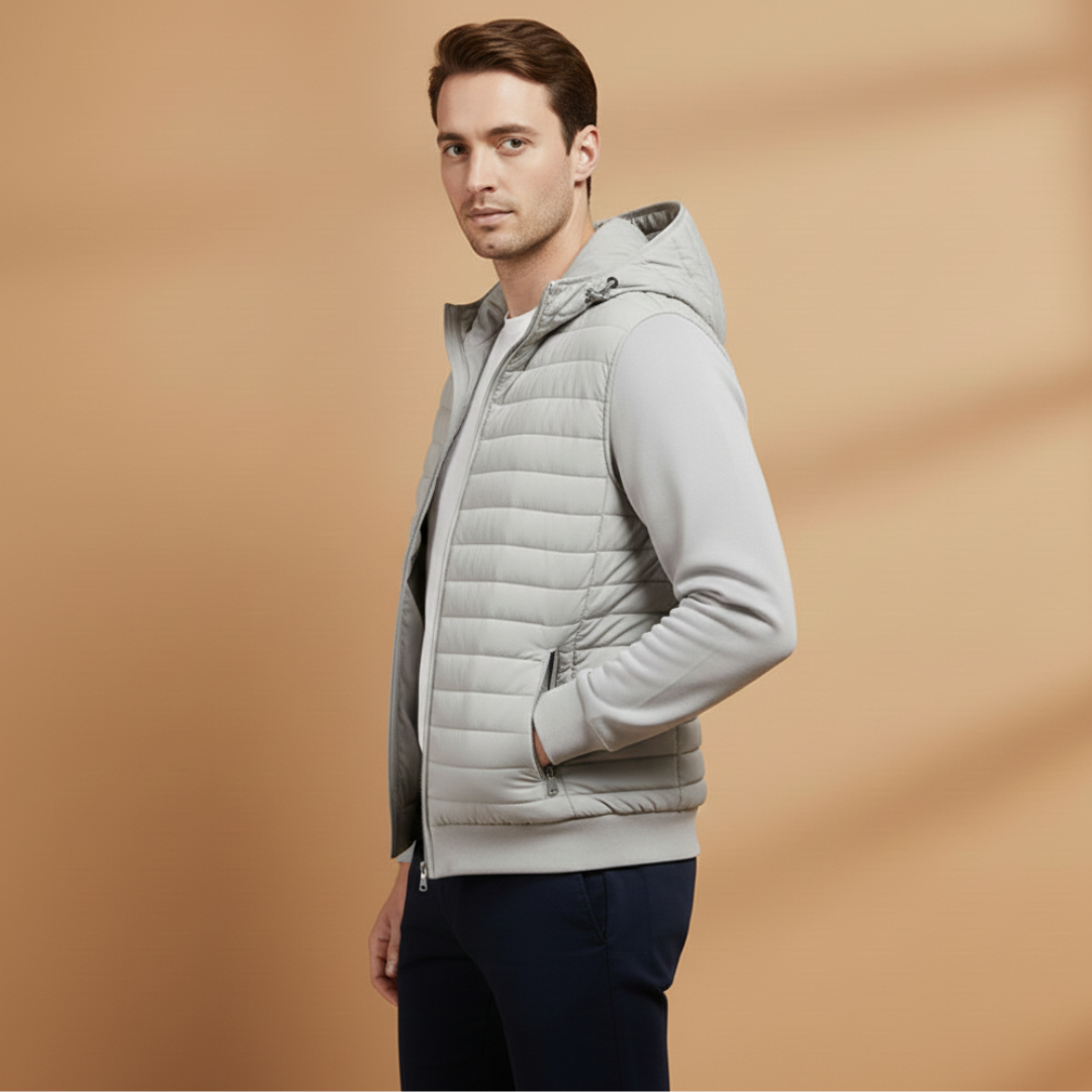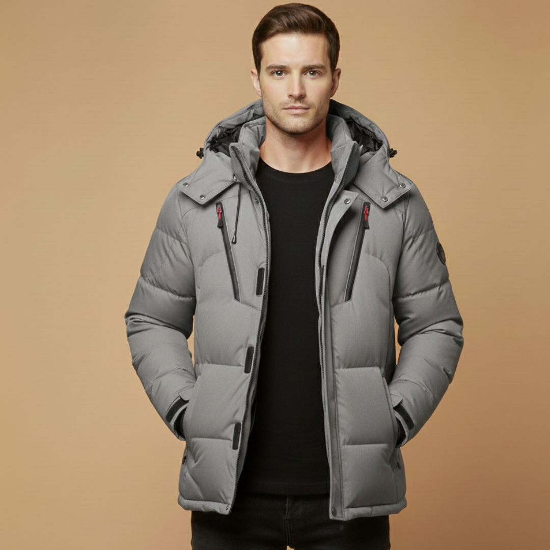 Men’s Quilted Jacket with Hood and Zip Pockets