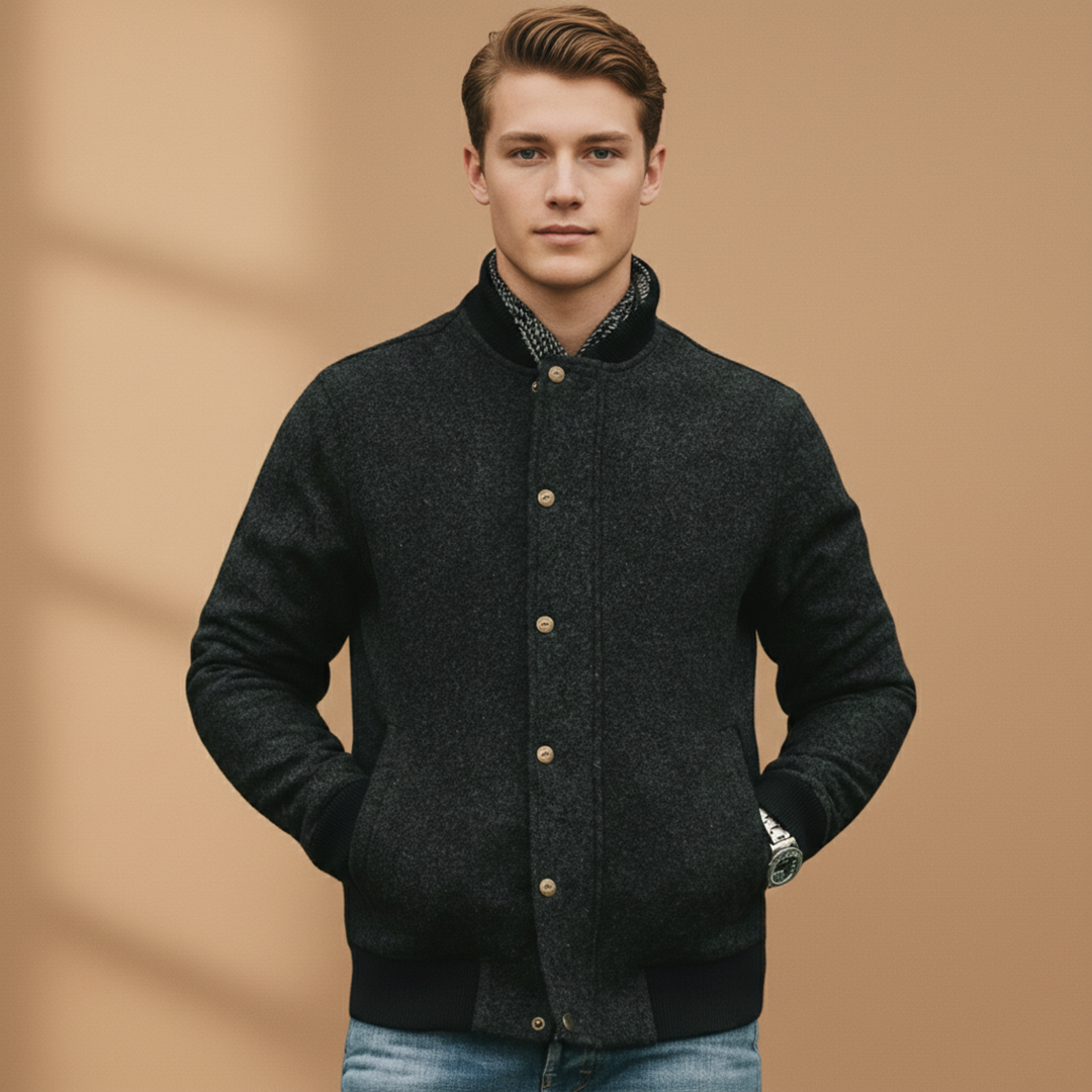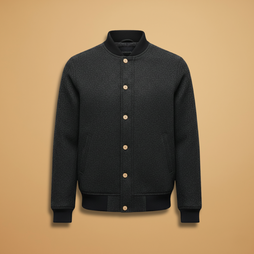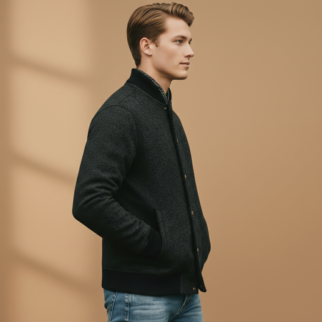 Men's Bomber Jacket with Button Closure and Ribbed Hem