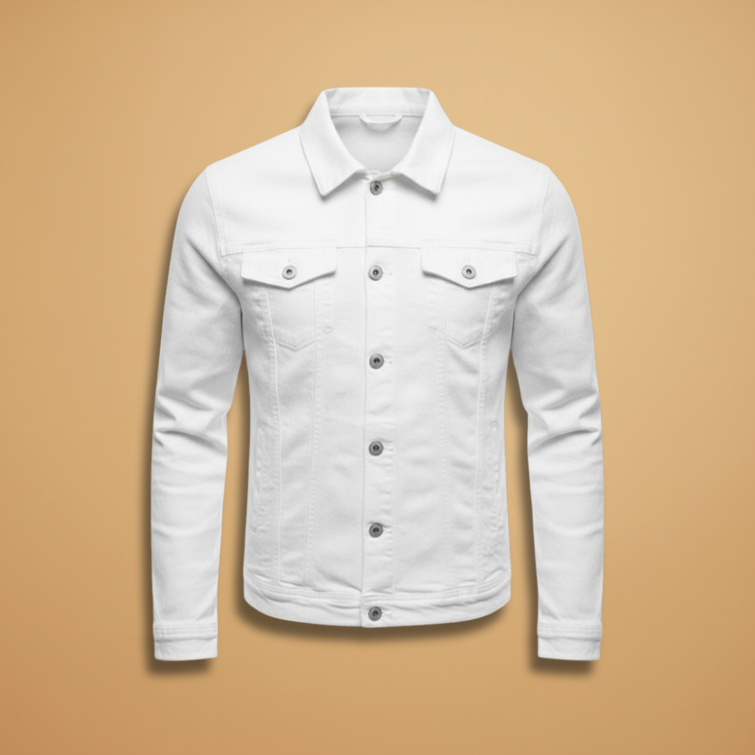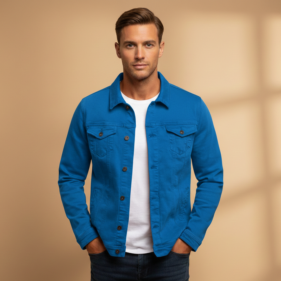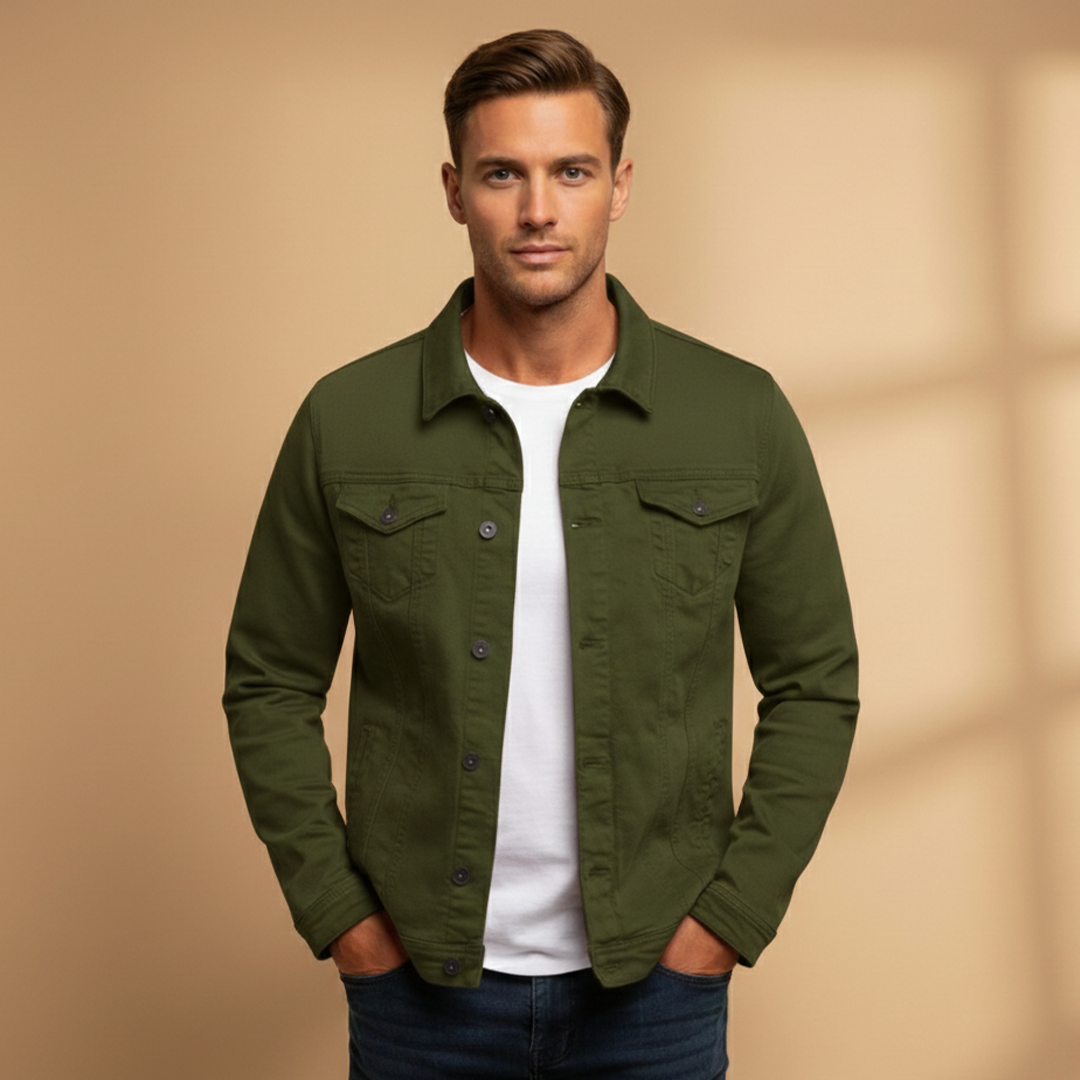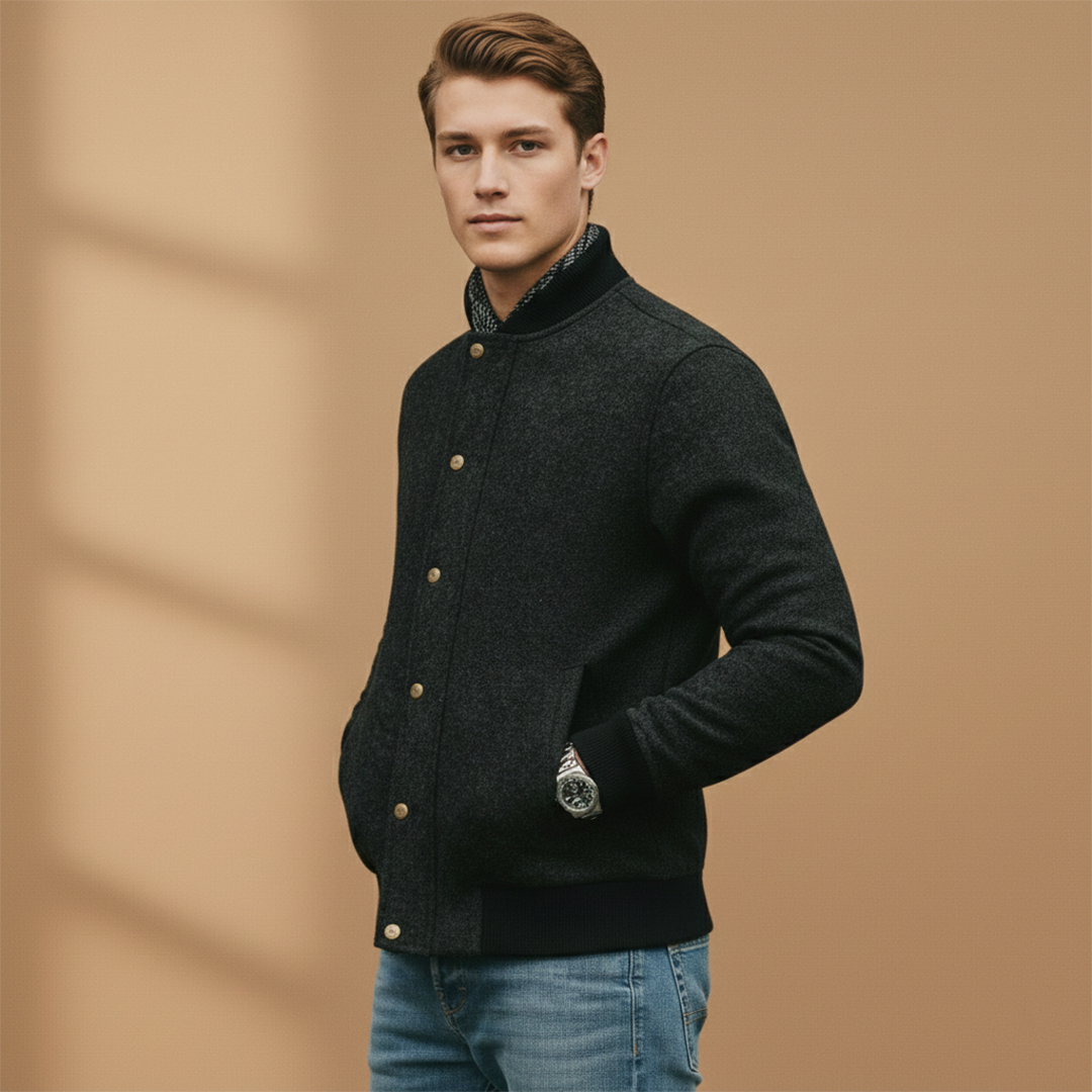 Men's Bomber Jacket with Button Closure and Ribbed Hem