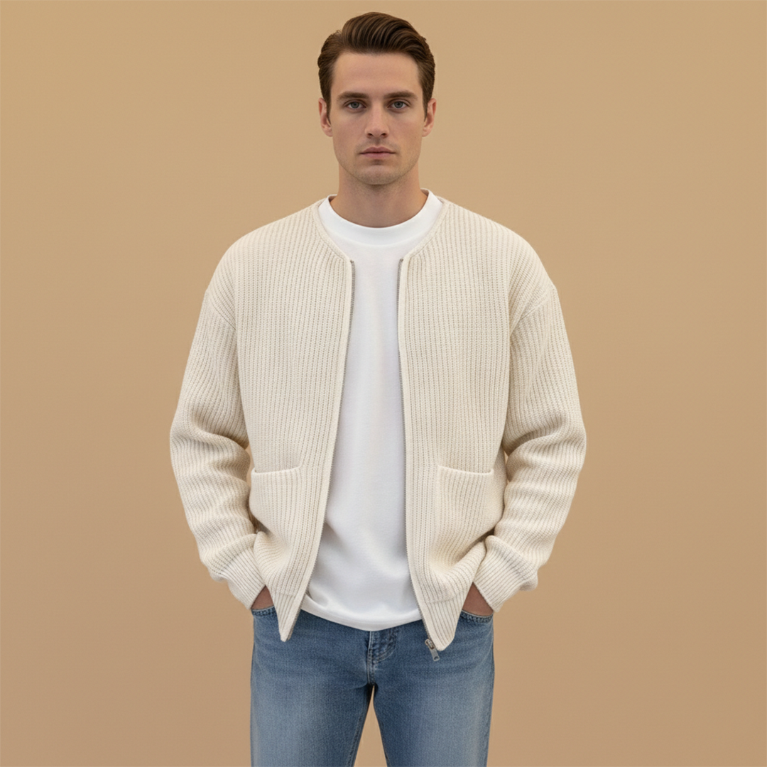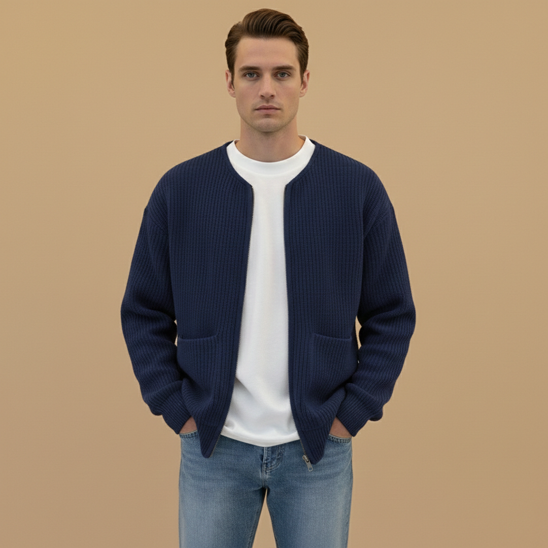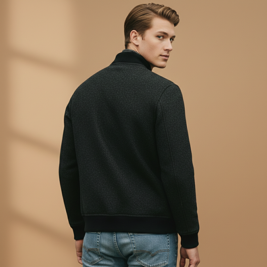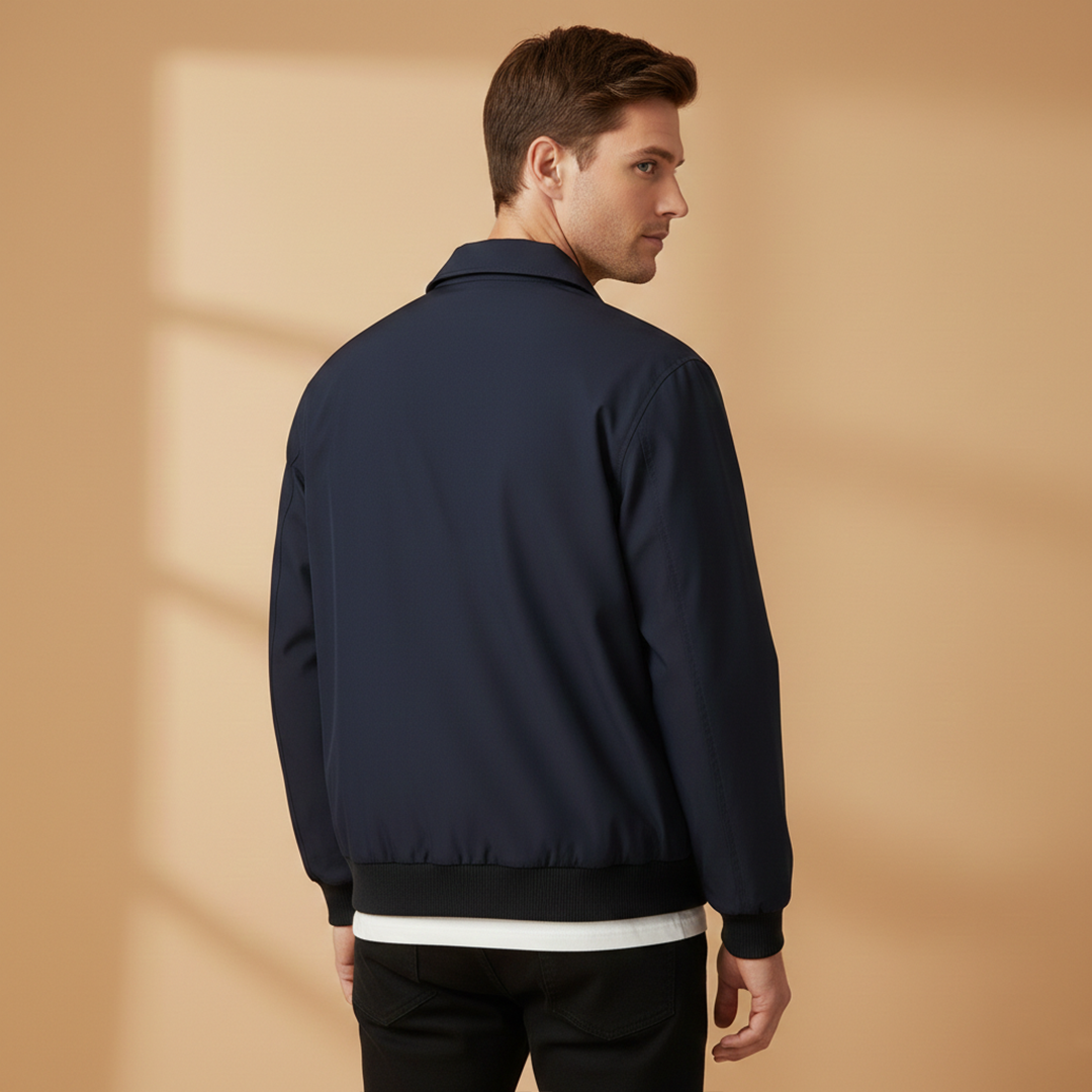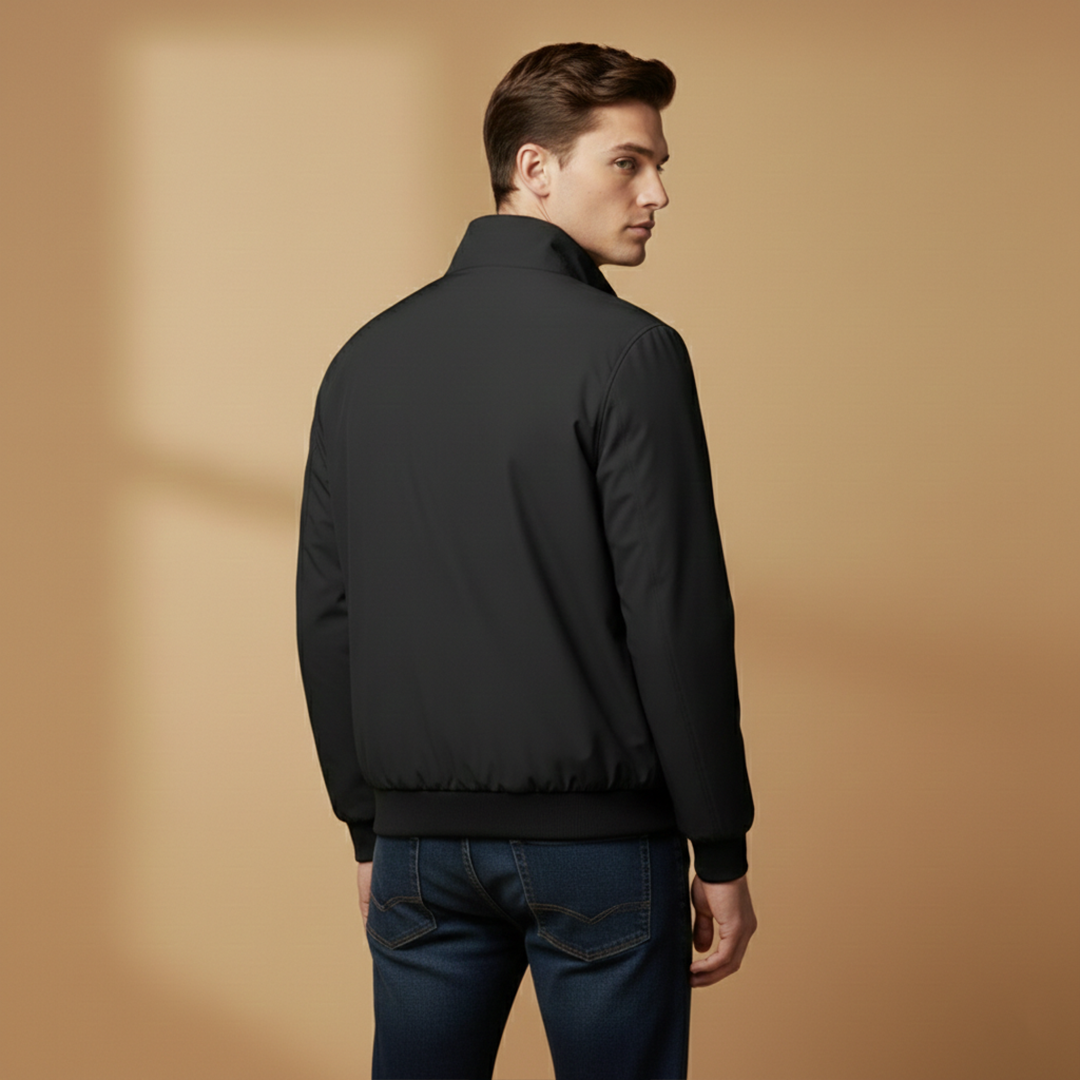 Men's Hip-Length Jacket with Ribbed Collar and Zip