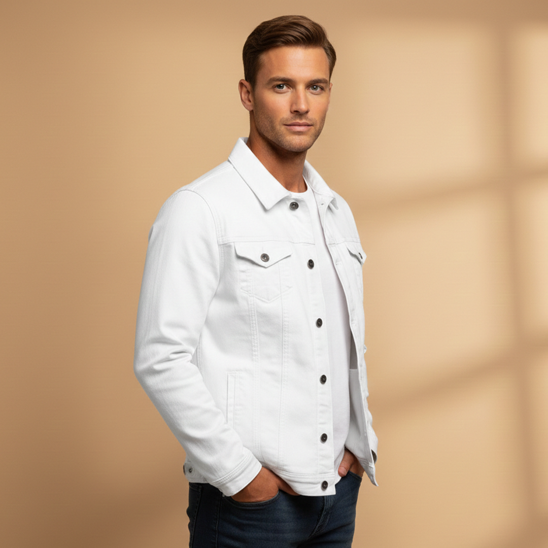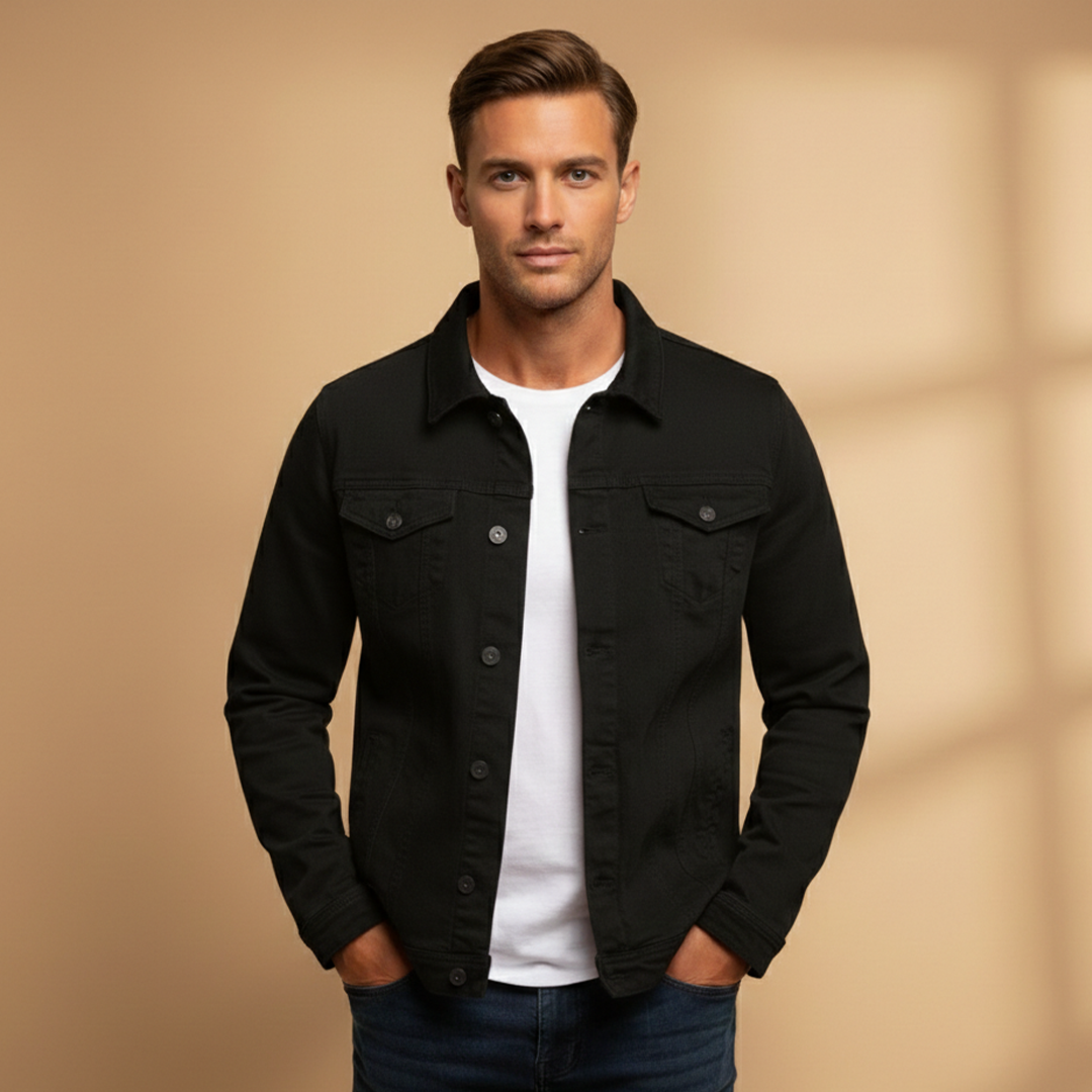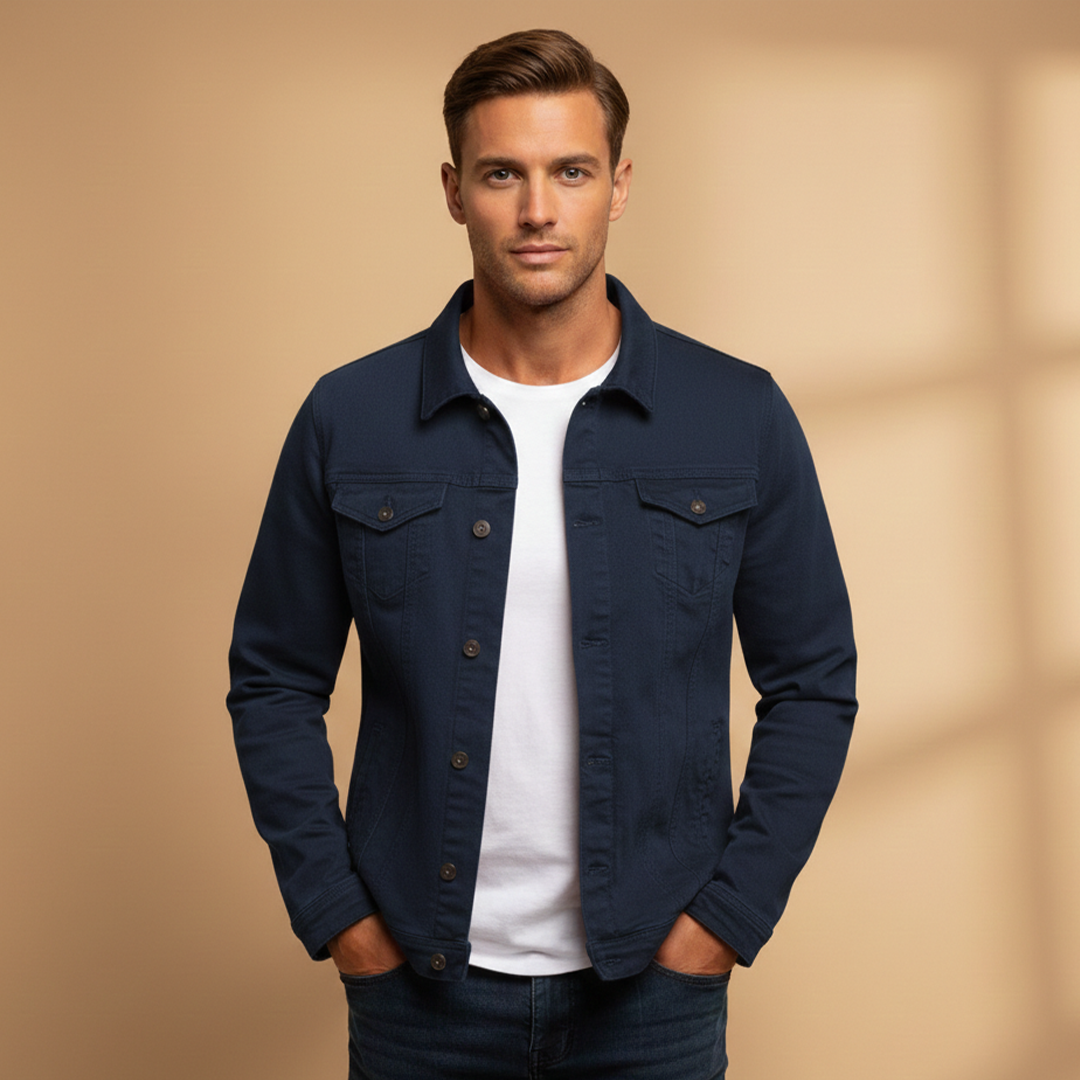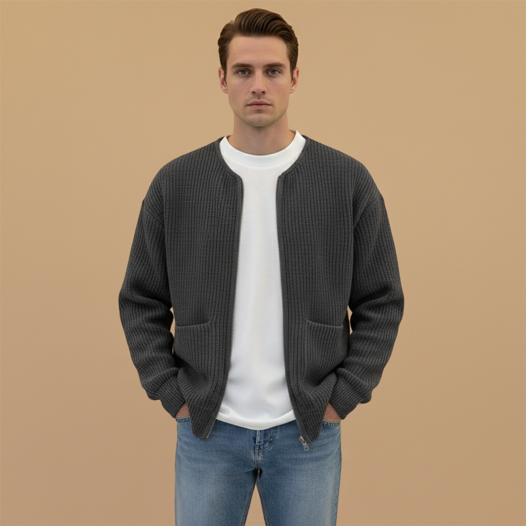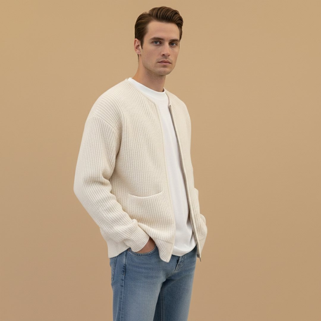 Men's Hip-Length Jacket with Ribbed Collar and Zip