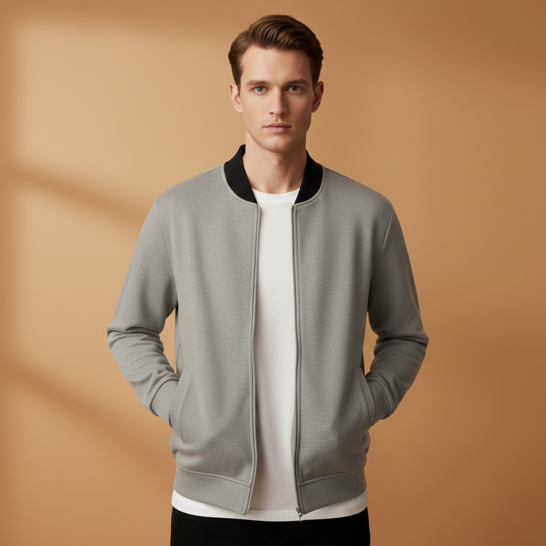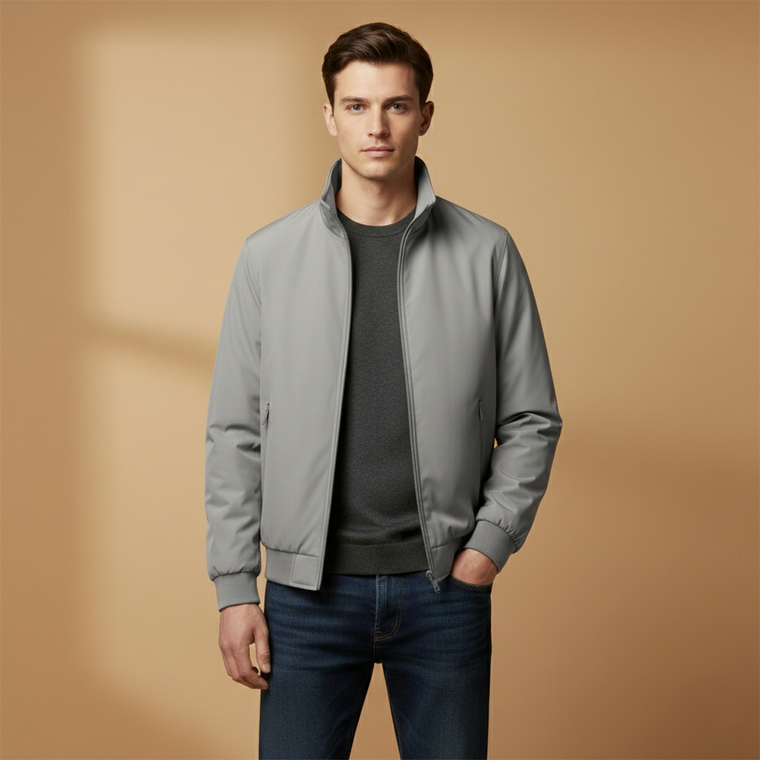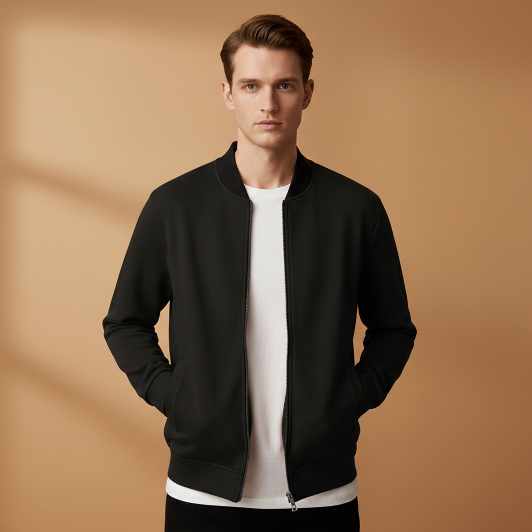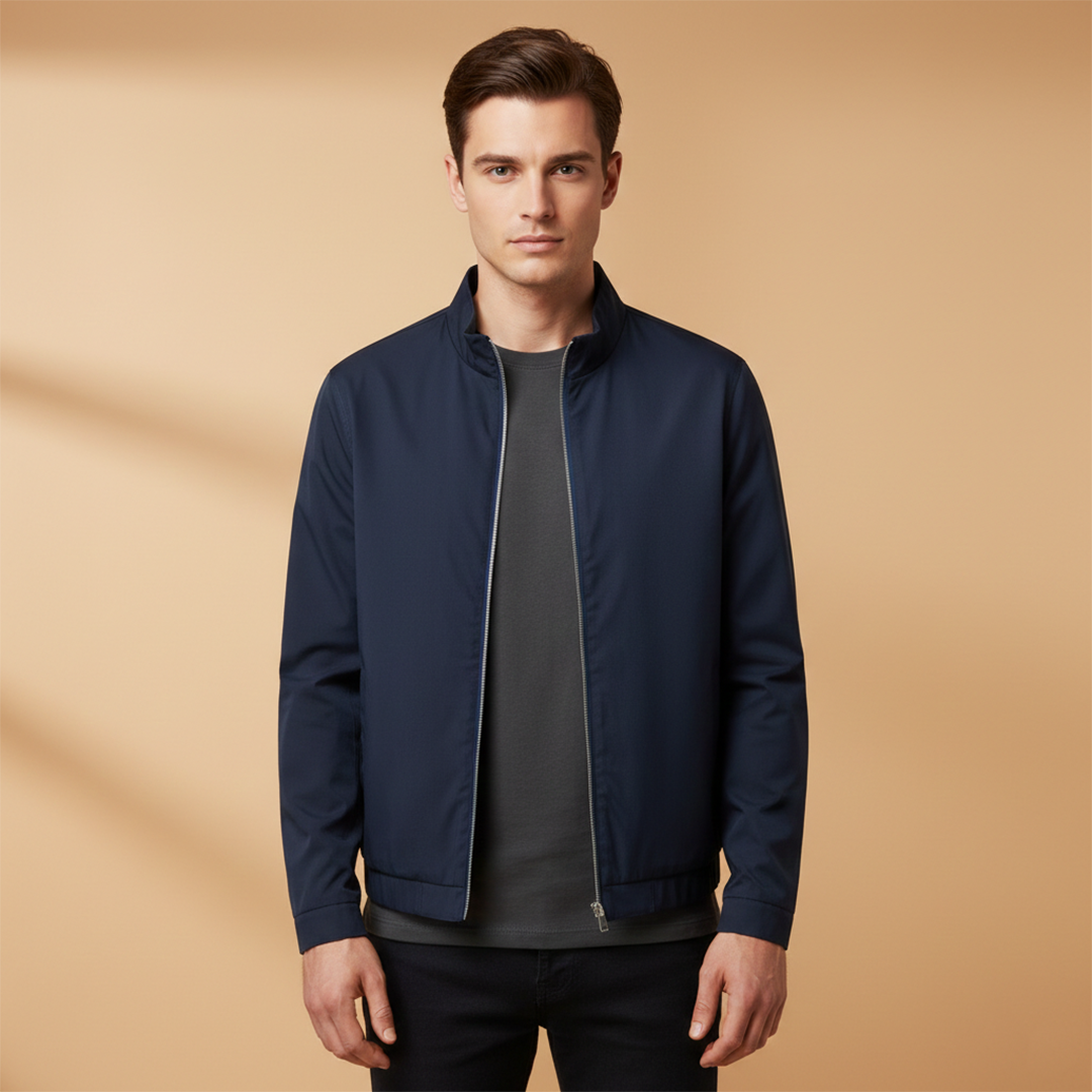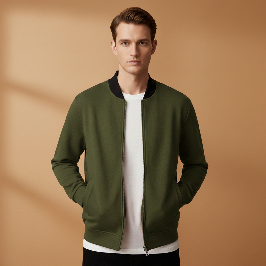 Men’s Zip Up Bomber Jacket Featuring Stand Collar and Clean Finish