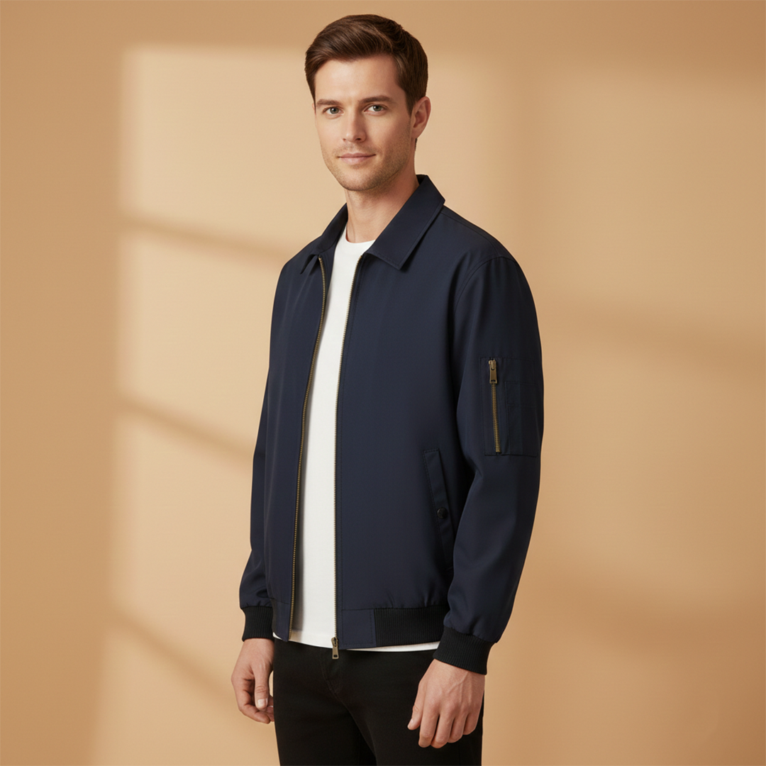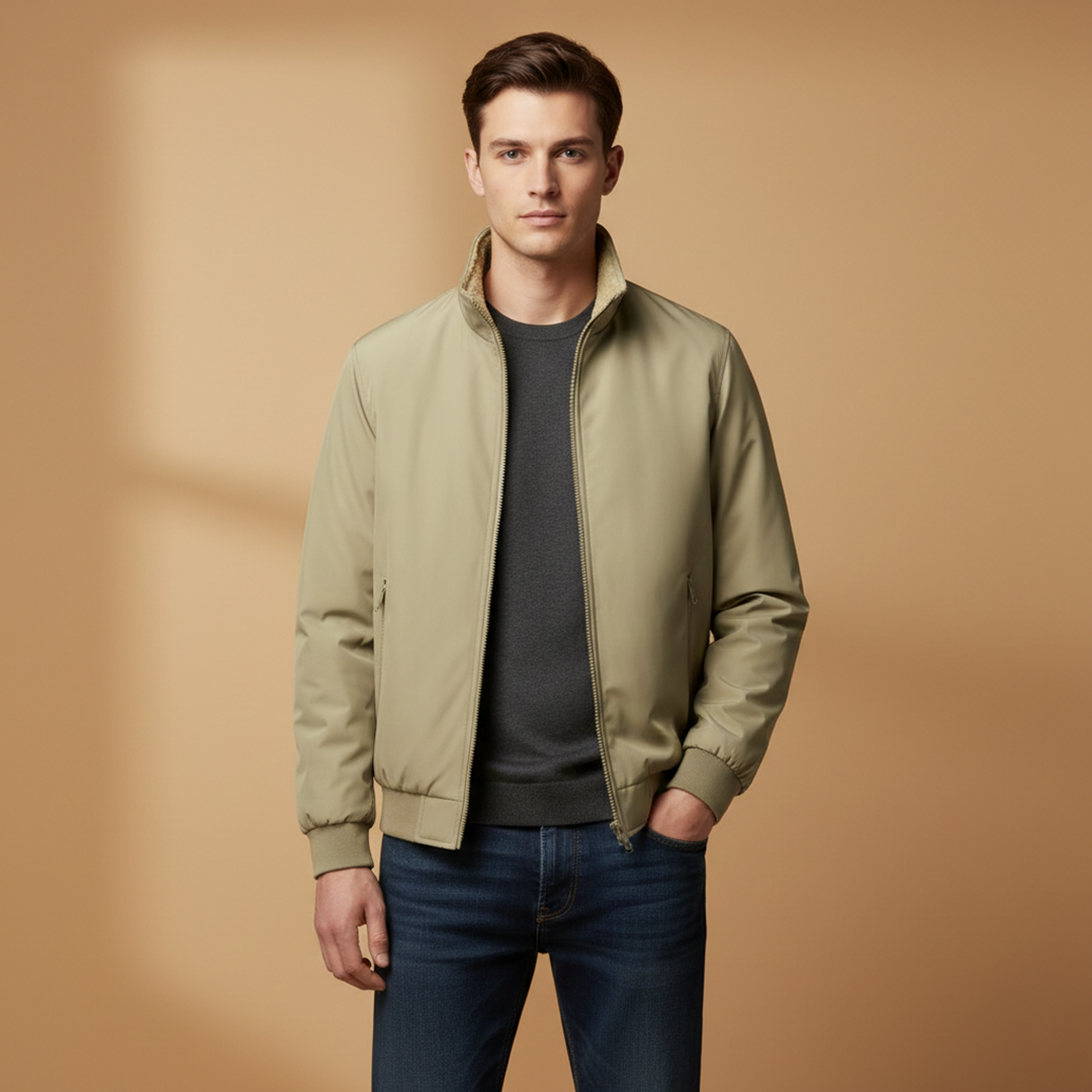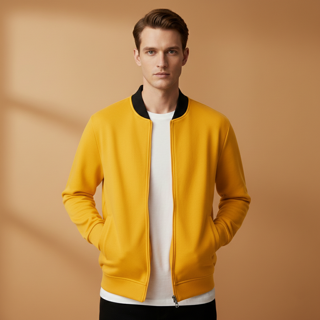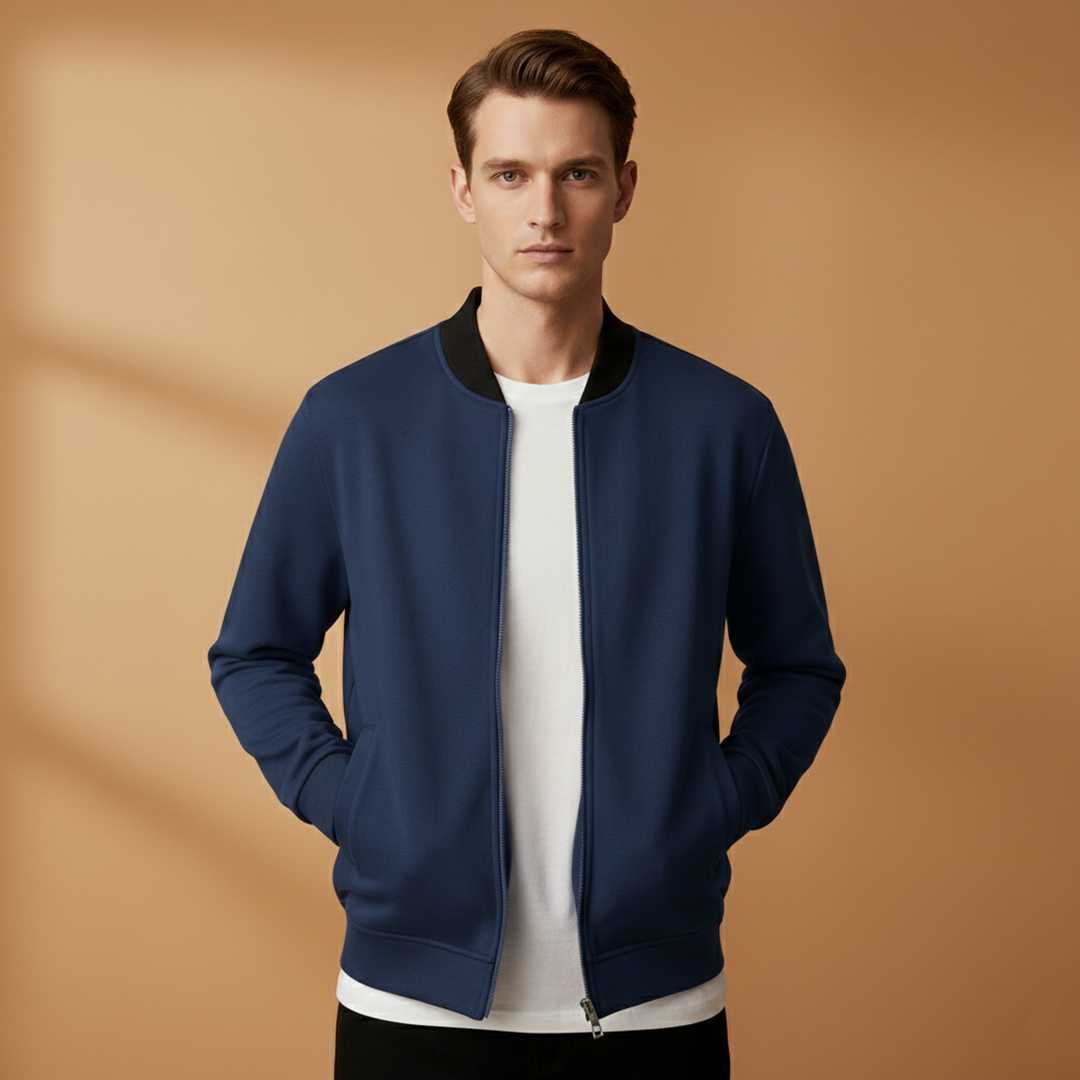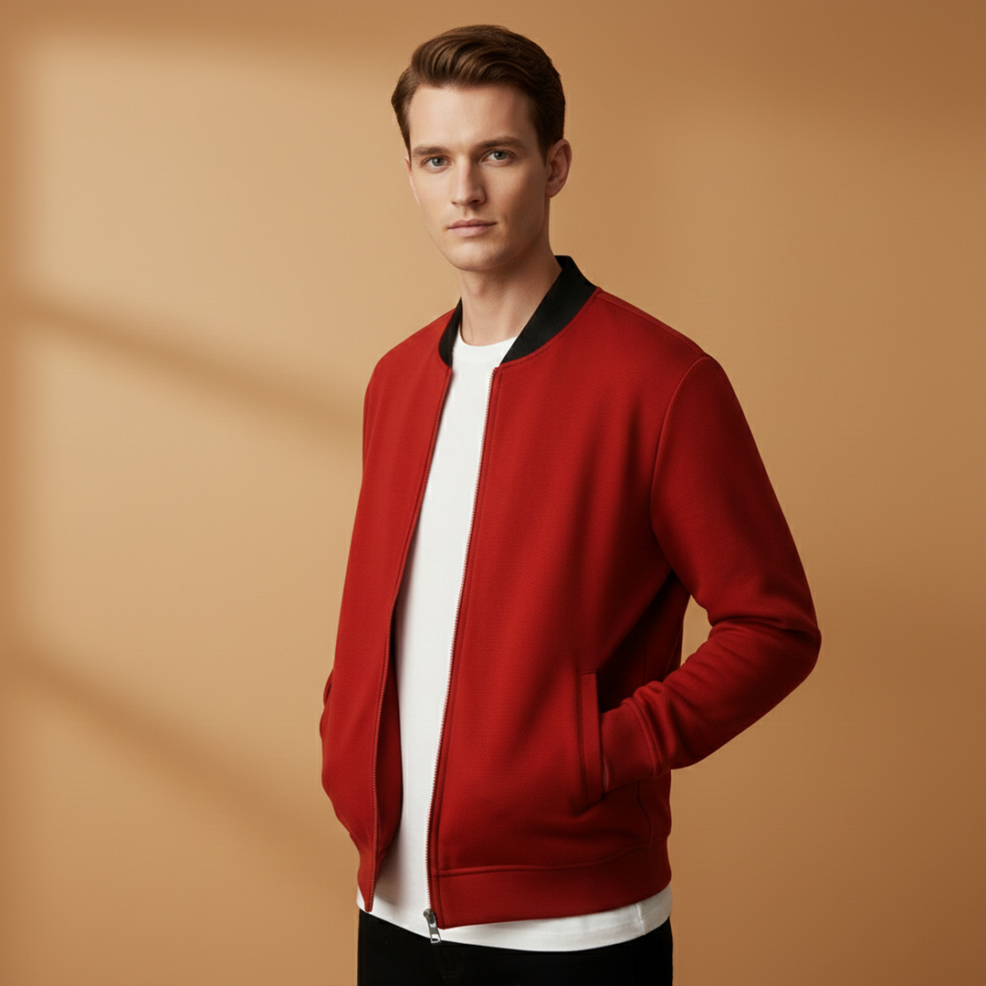 Men’s Zip Up Bomber Jacket Featuring Stand Collar and Clean Finish