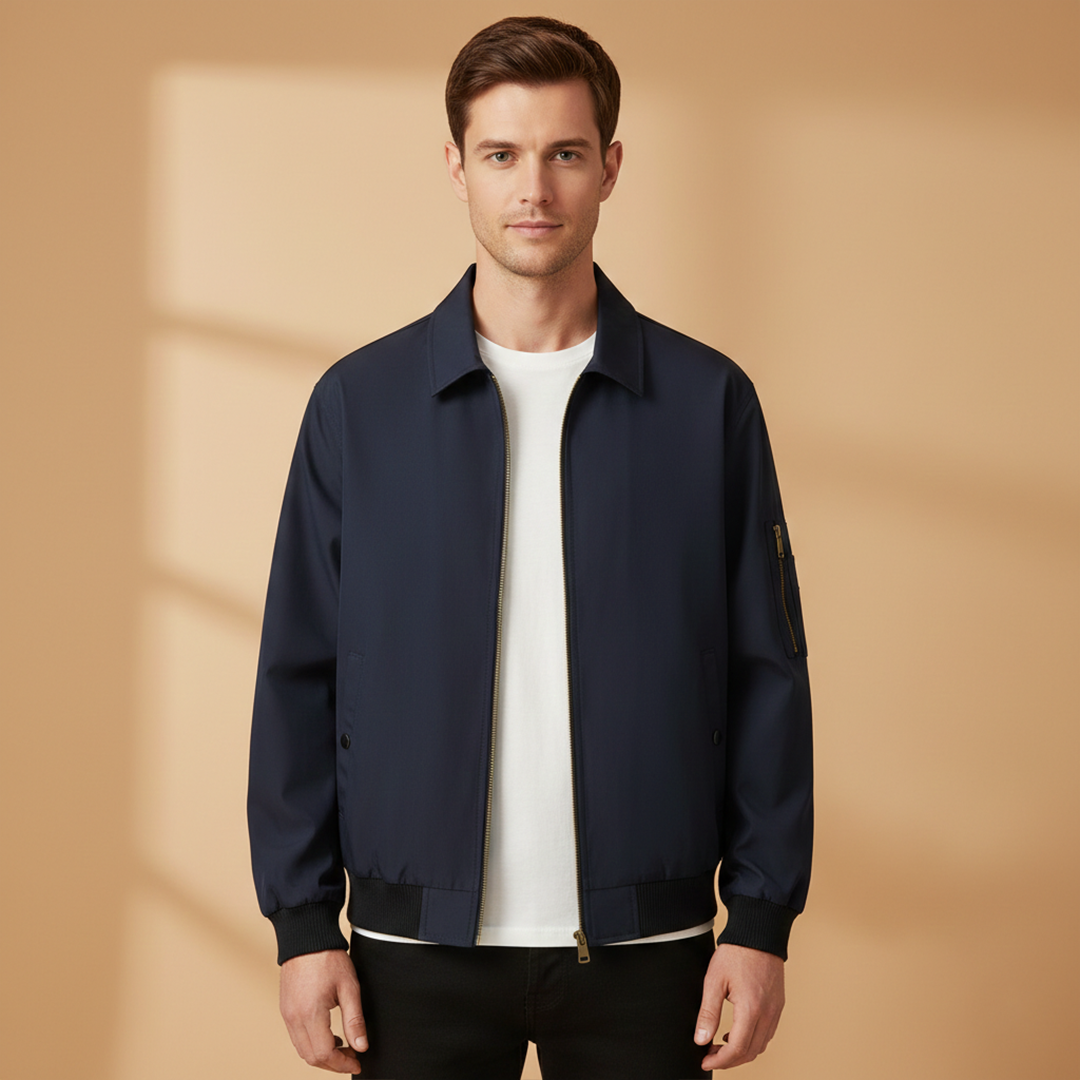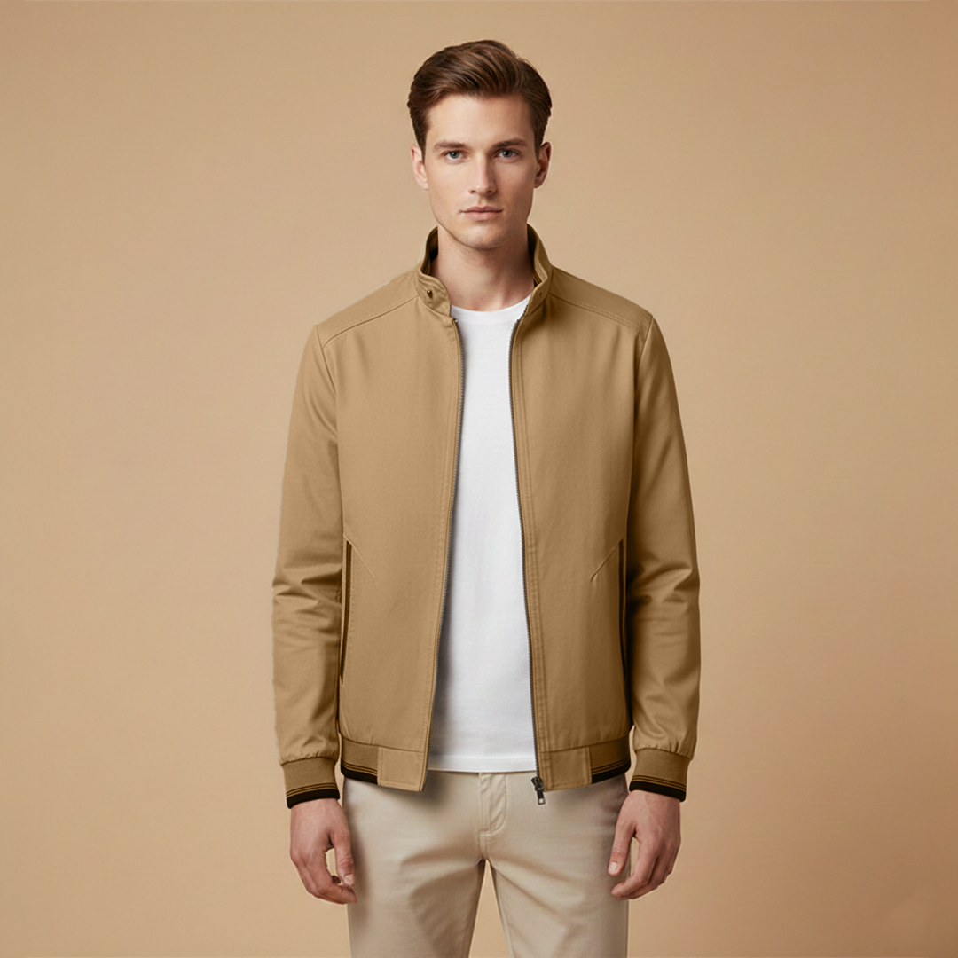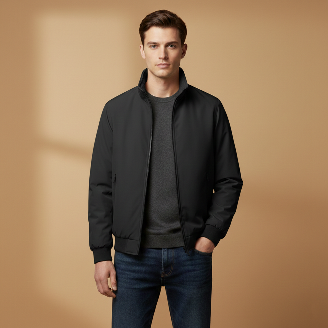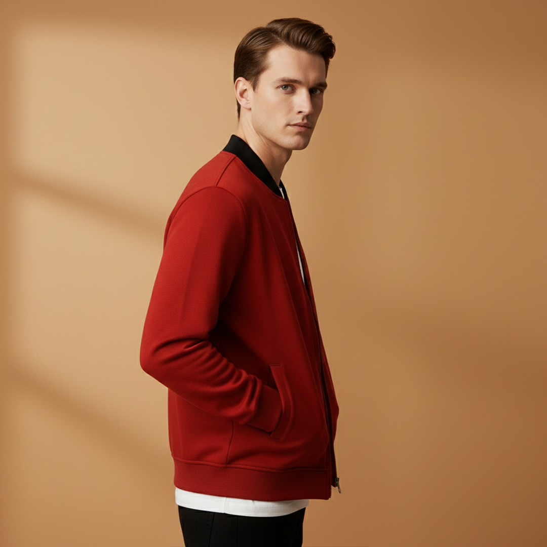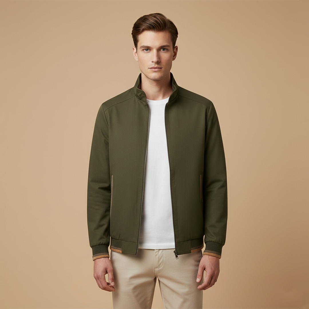 Men’s Zip Up Bomber Jacket Featuring Stand Collar and Clean Finish