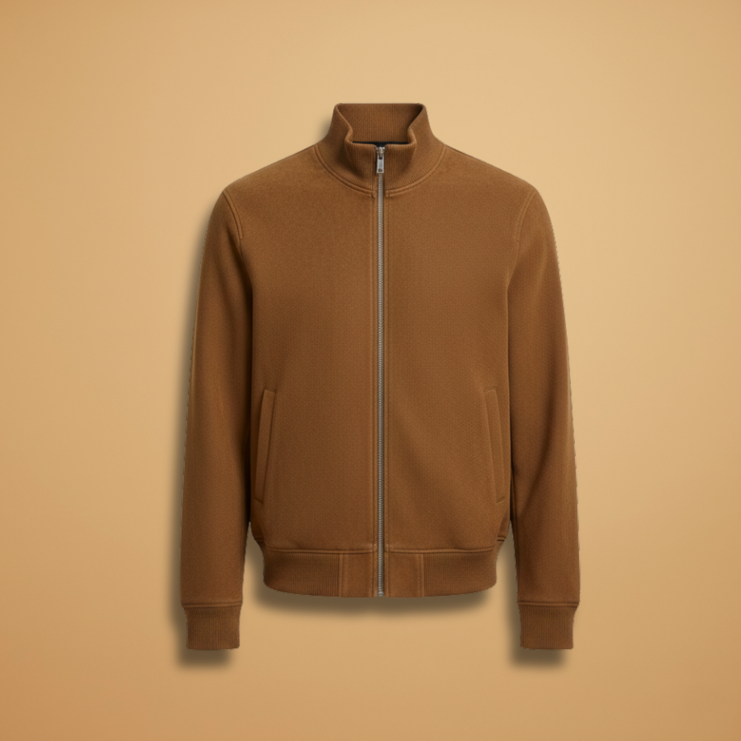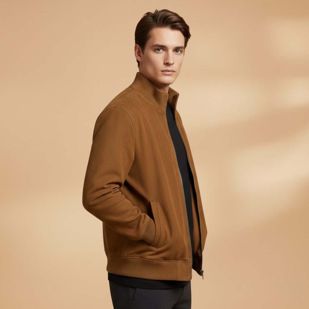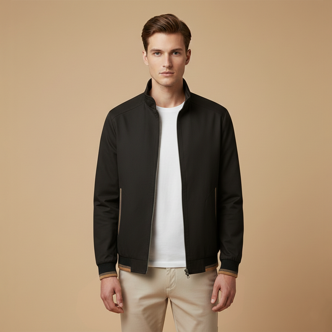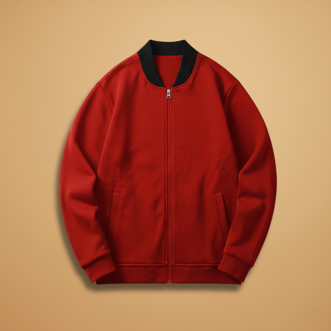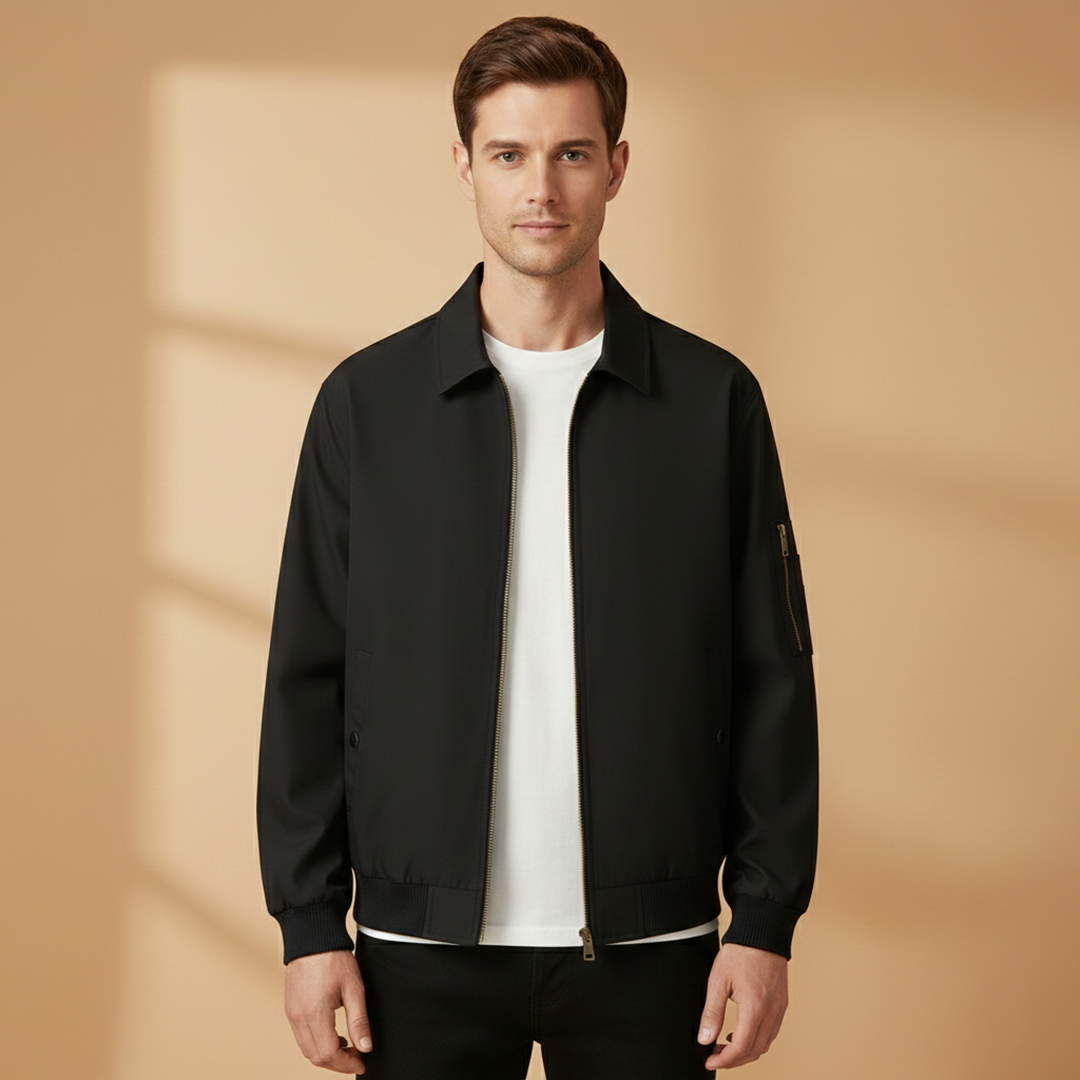 Men’s Zip Up Bomber Jacket Featuring Stand Collar and Clean Finish