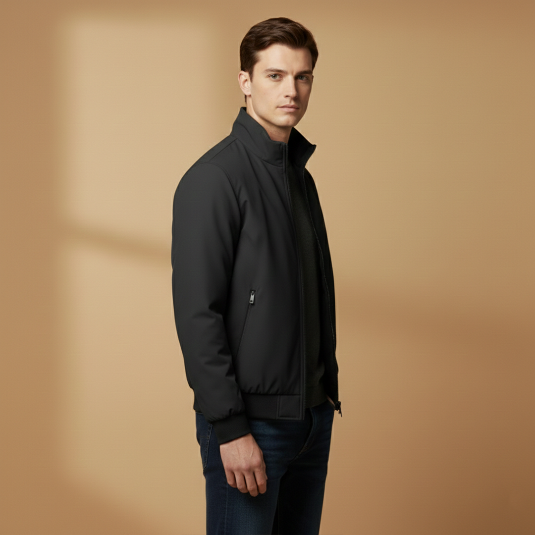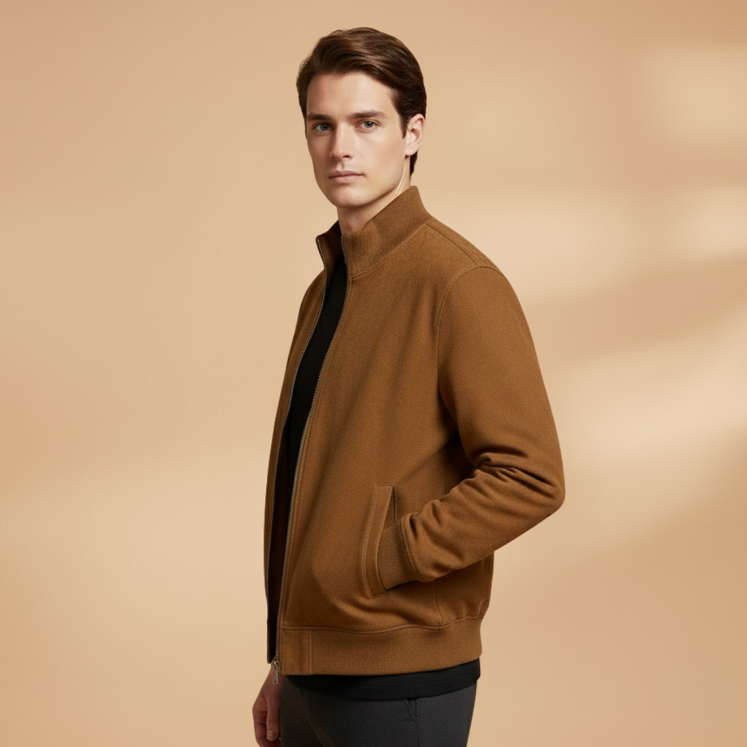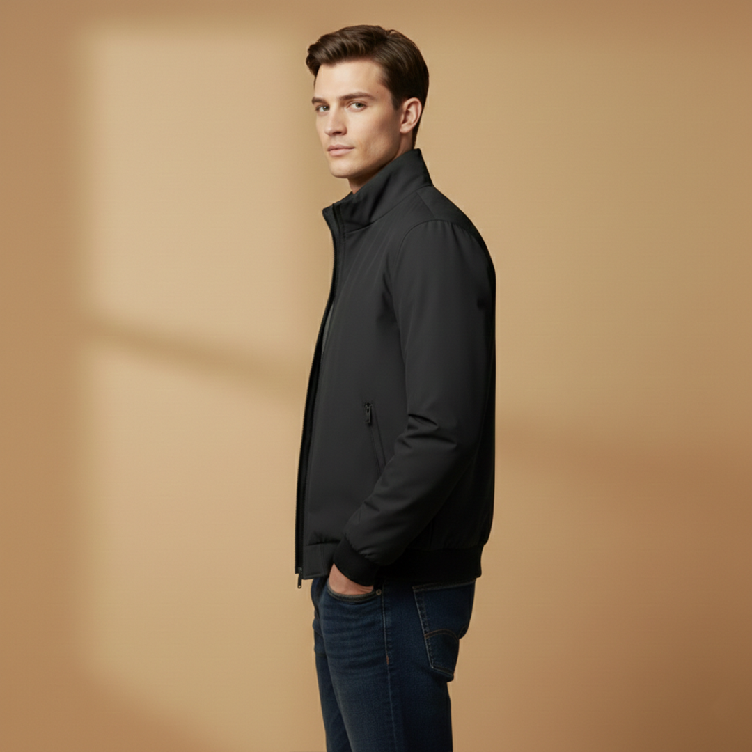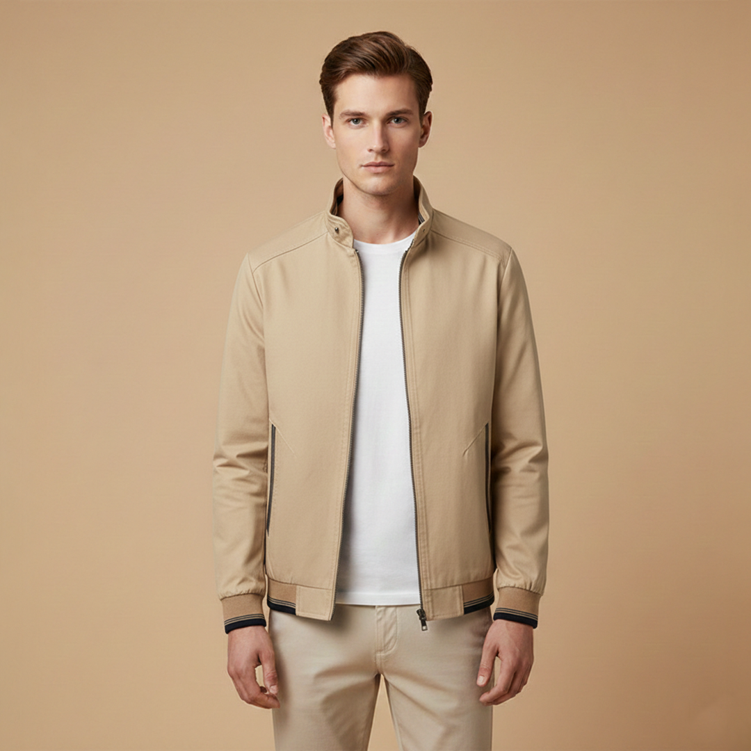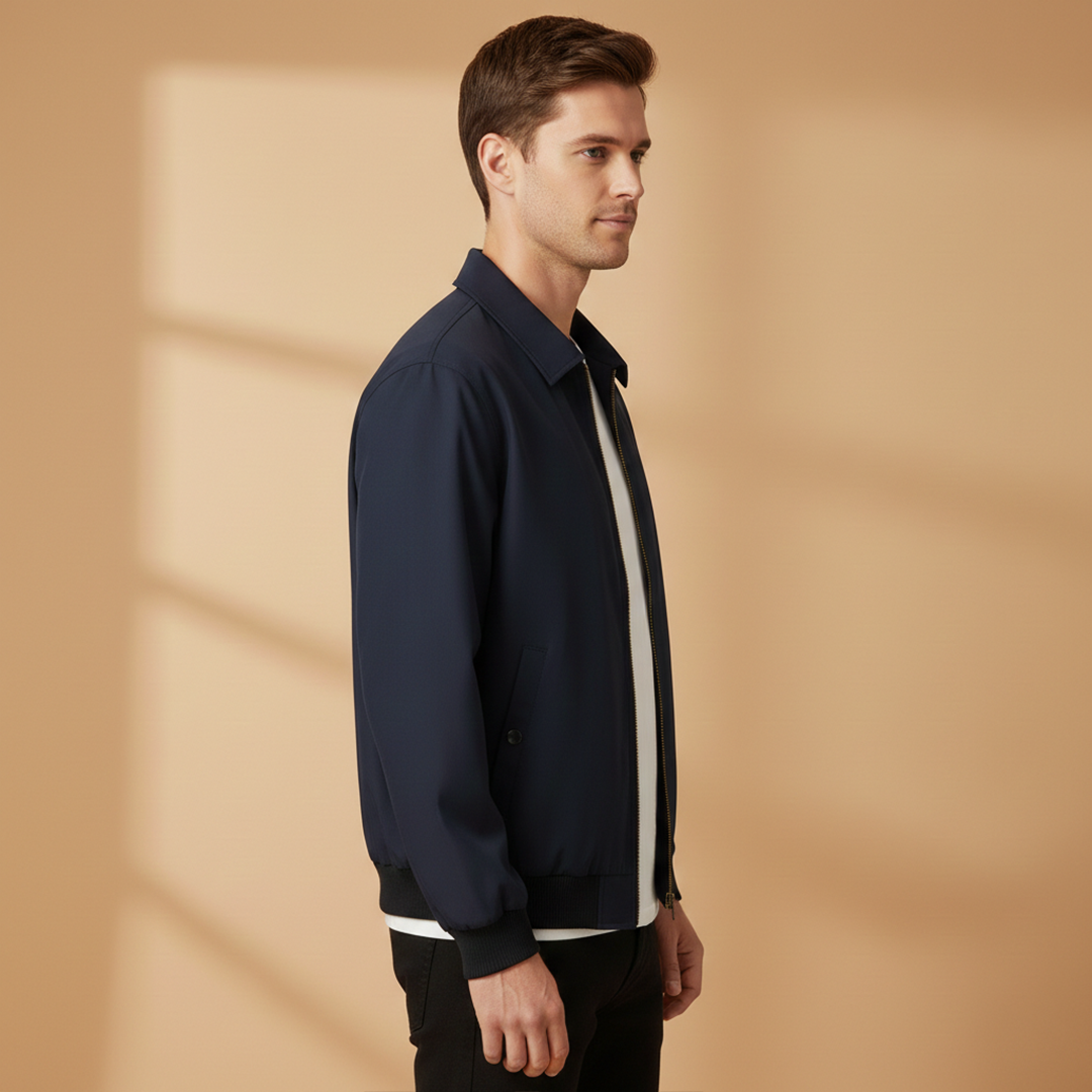 Men’s Zip Up Bomber Jacket Featuring Stand Collar and Clean Finish