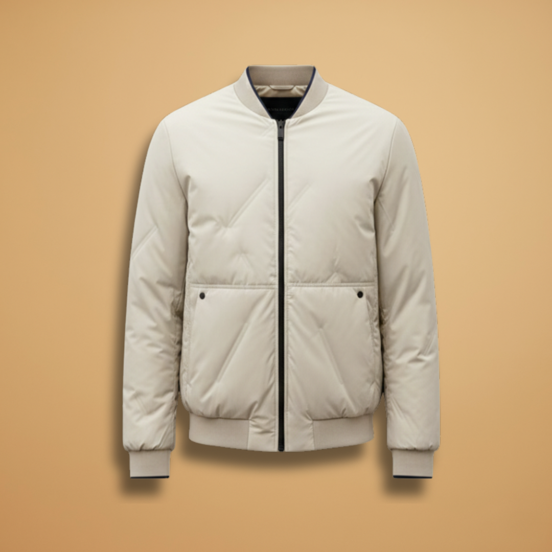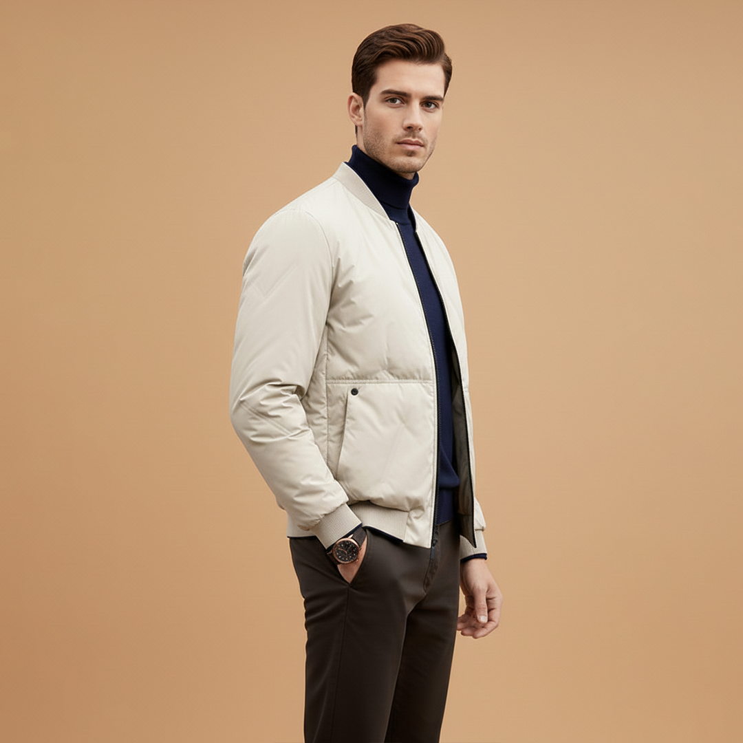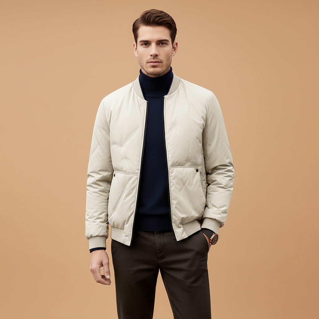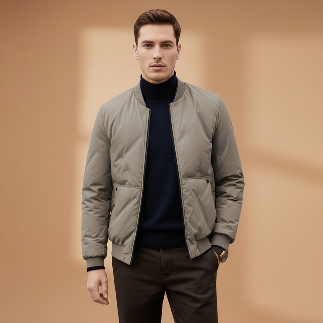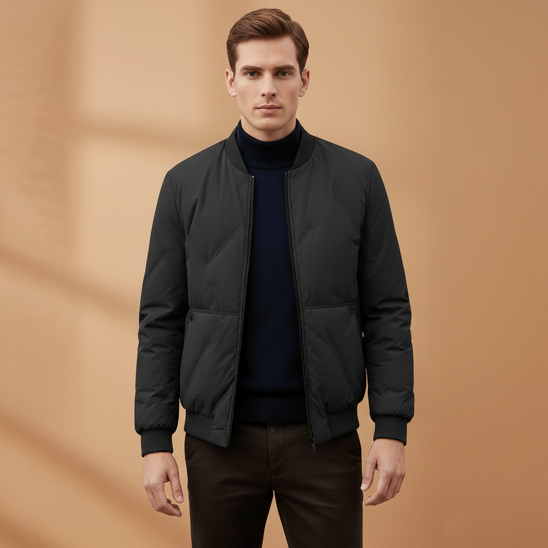 Men's Puffer Bomber Jacket with Zip Closure and Hidden Pocket