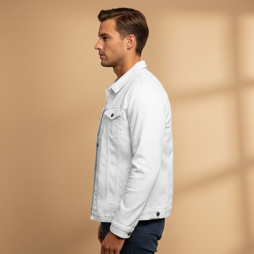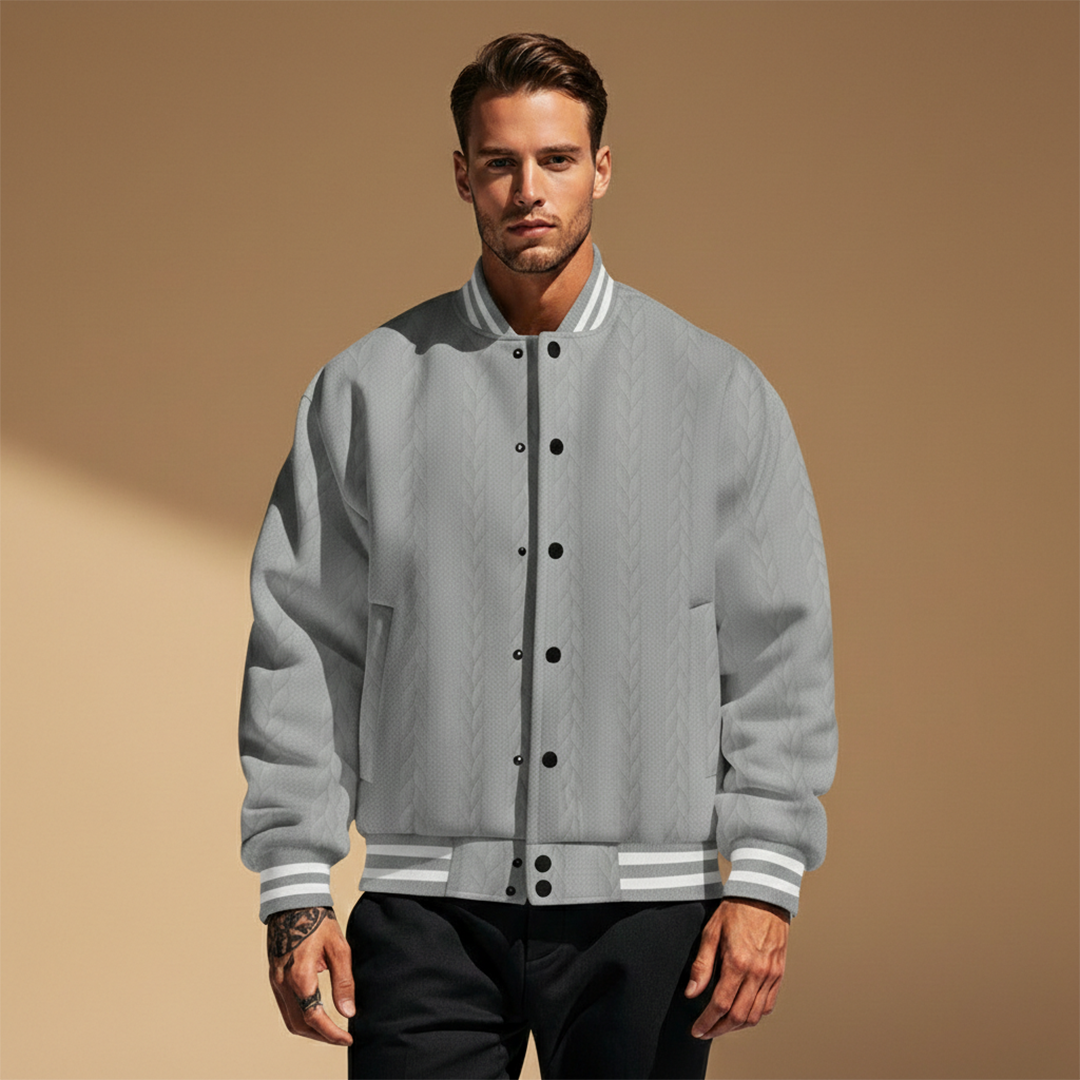 Men's Bomber Jacket with Textured Surface and Button Closure