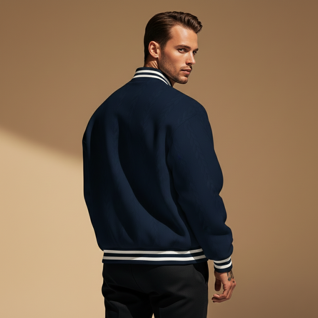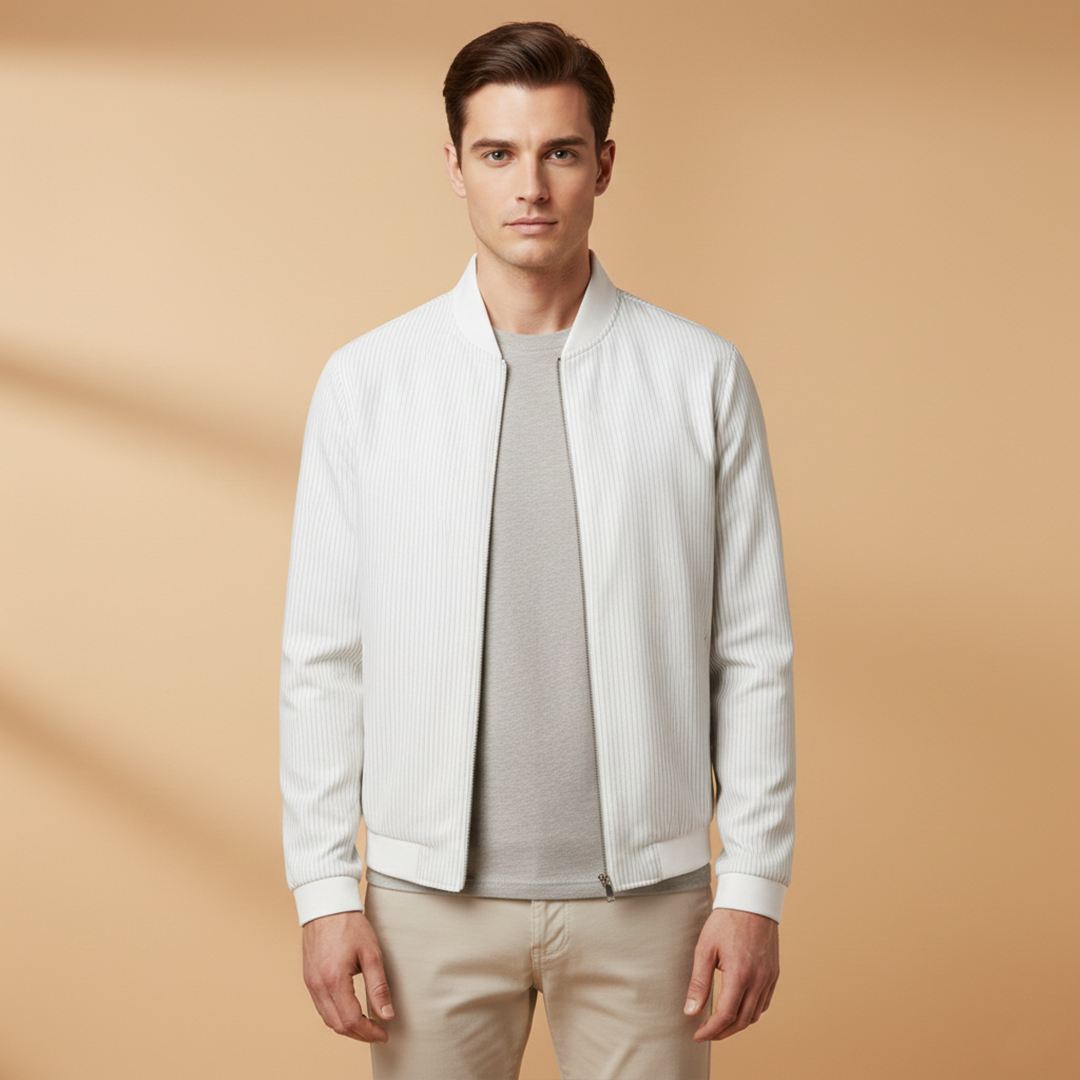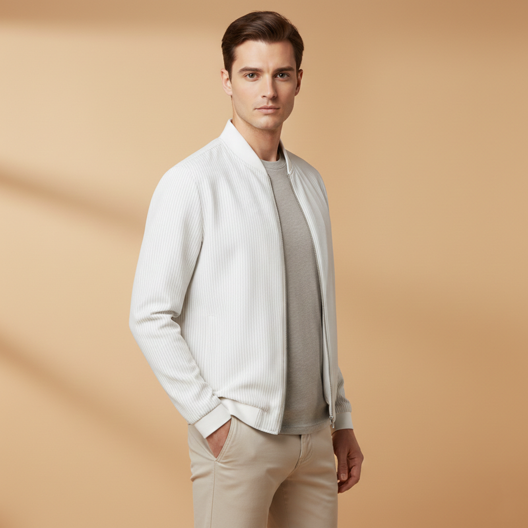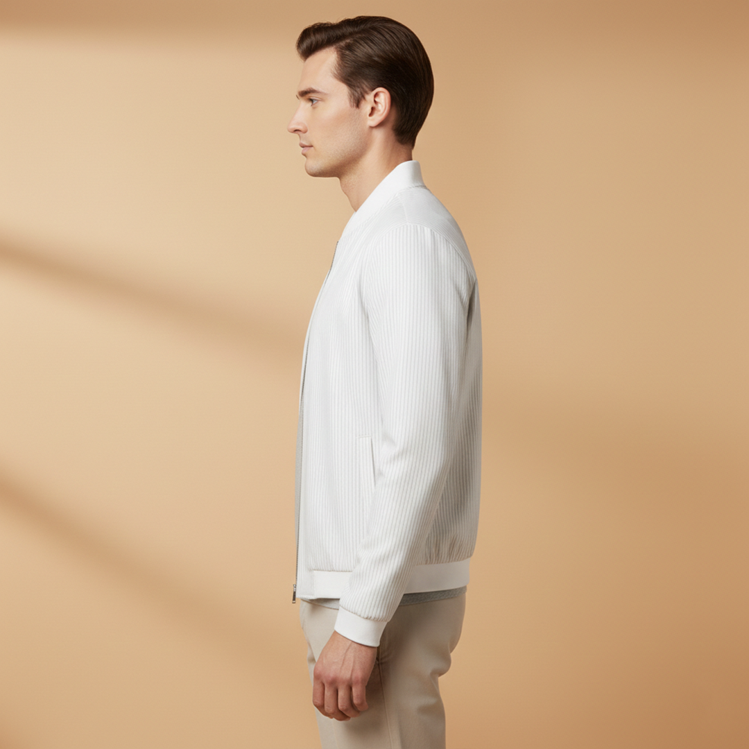Men’s Bomber Jacket with Striped Pattern and Cuffs