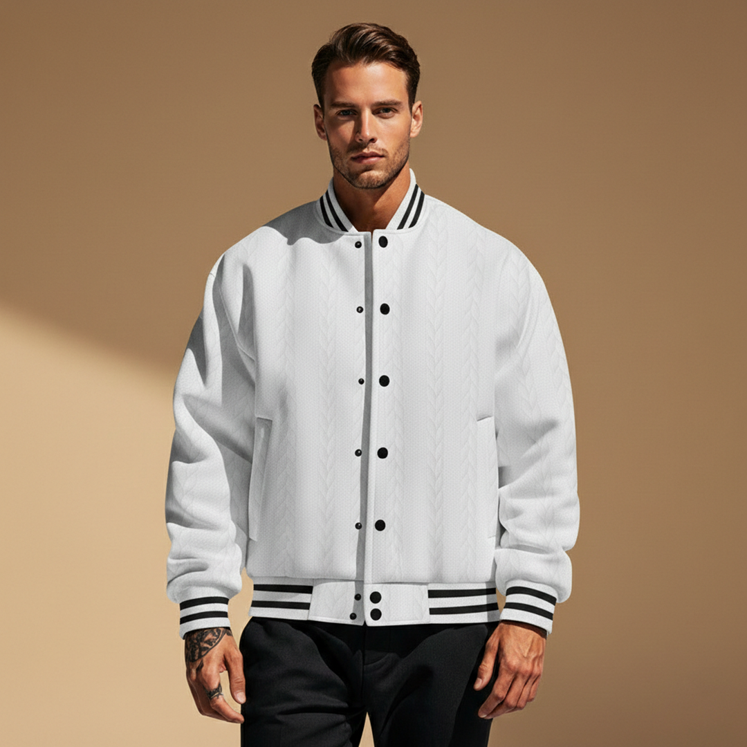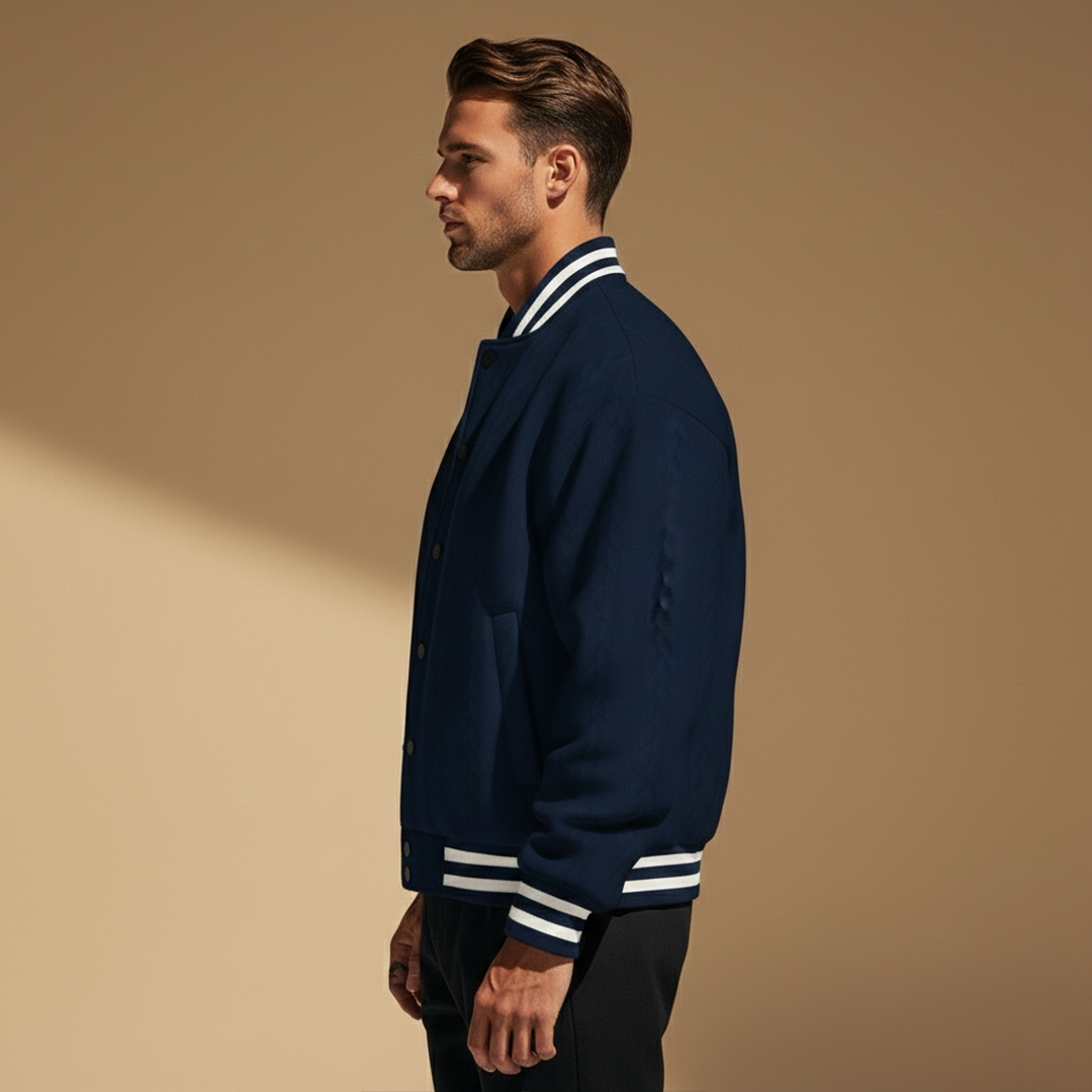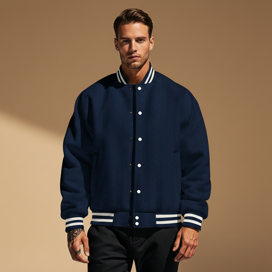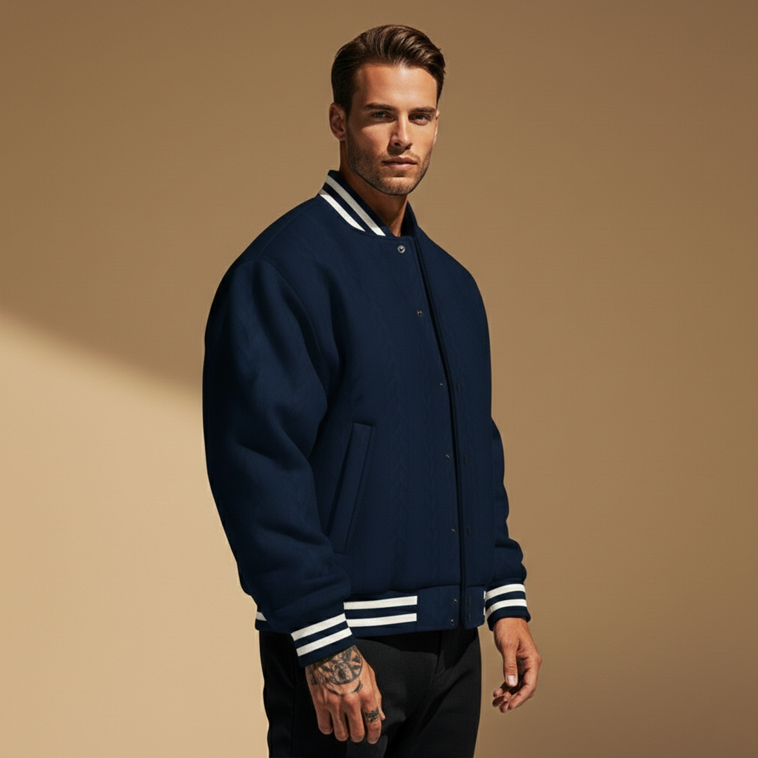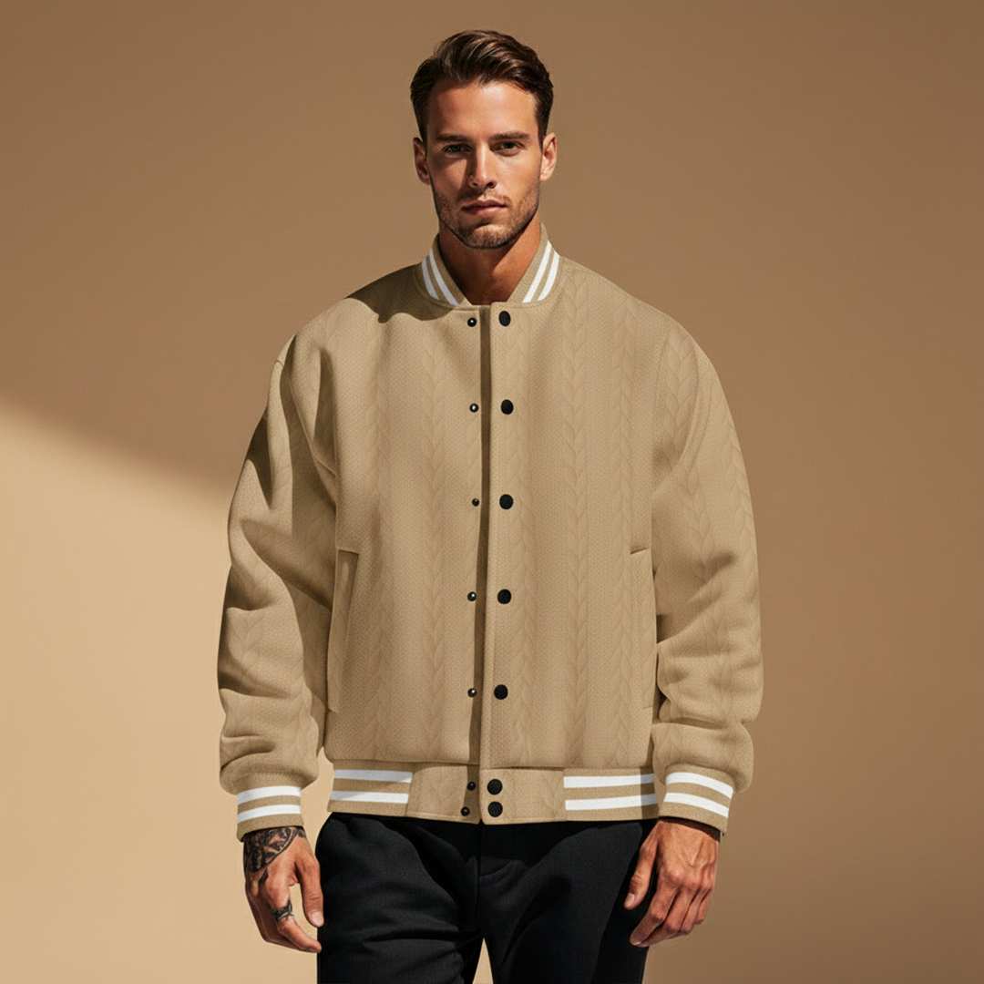Men’s Bomber Jacket with Striped Pattern and Cuffs
