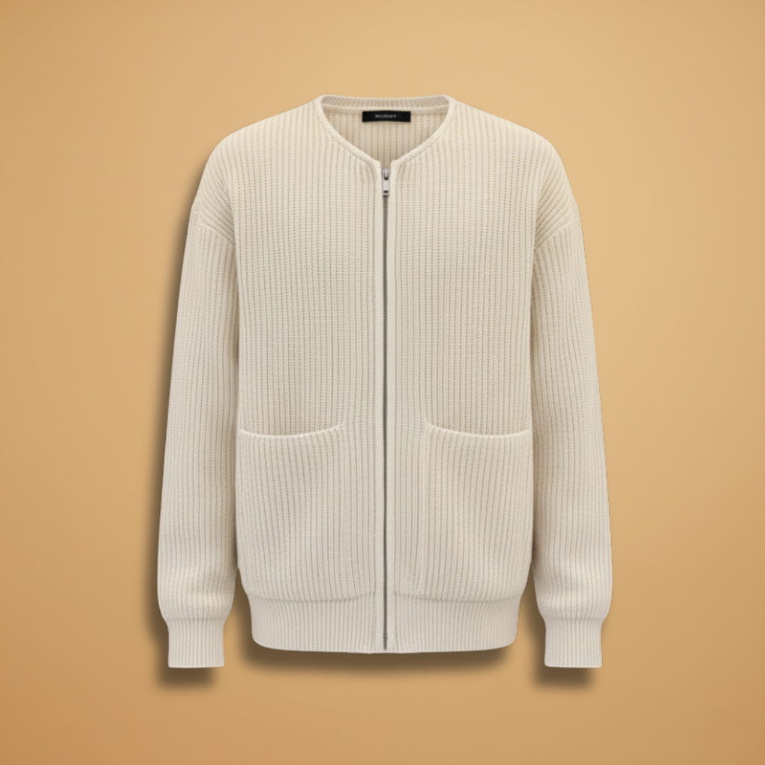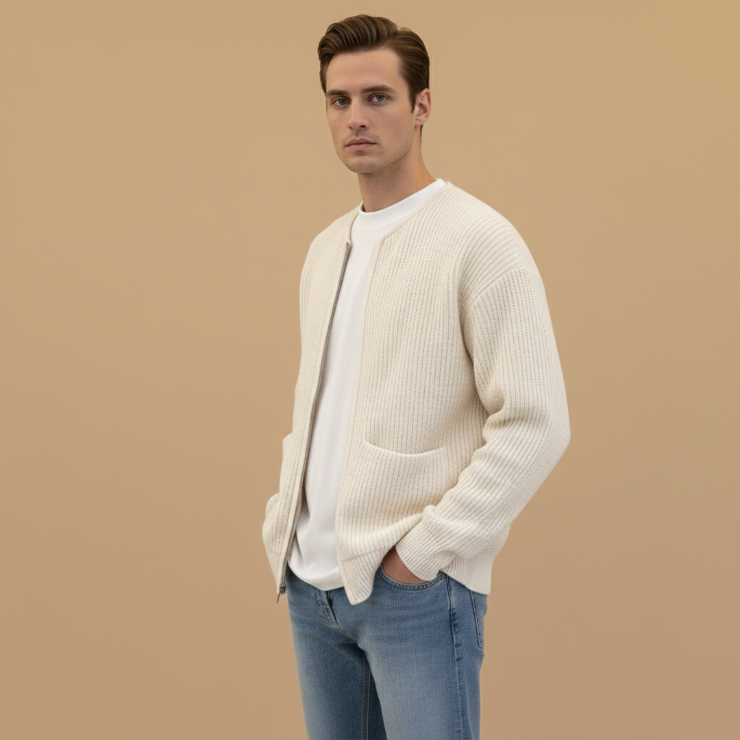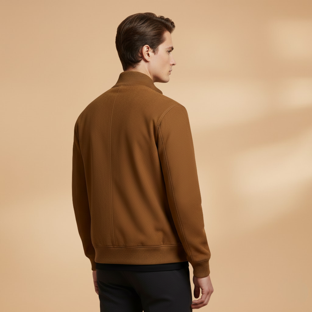 Men's Bomber Jacket with Zip Closure and Ribbed Surface