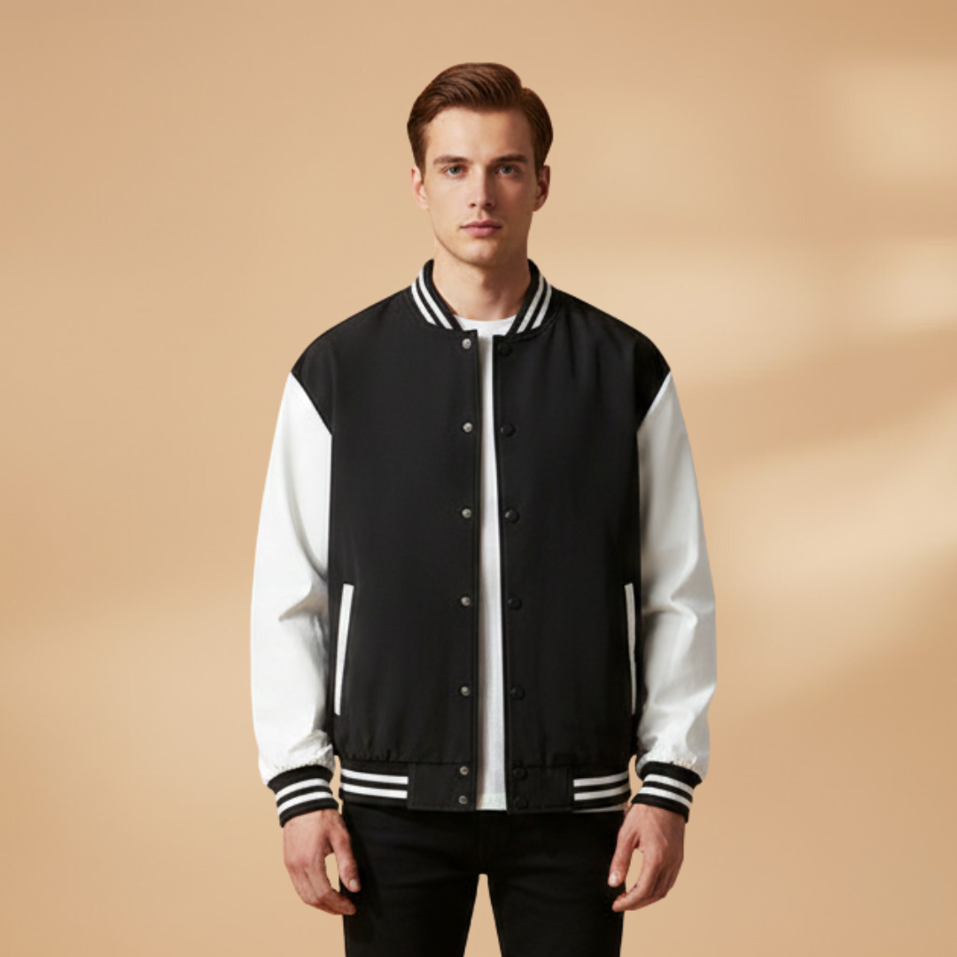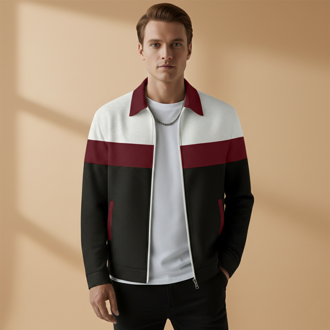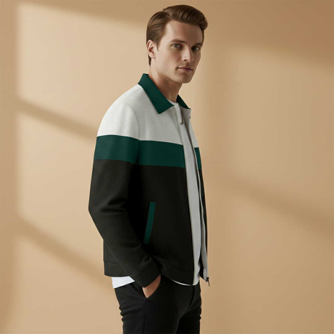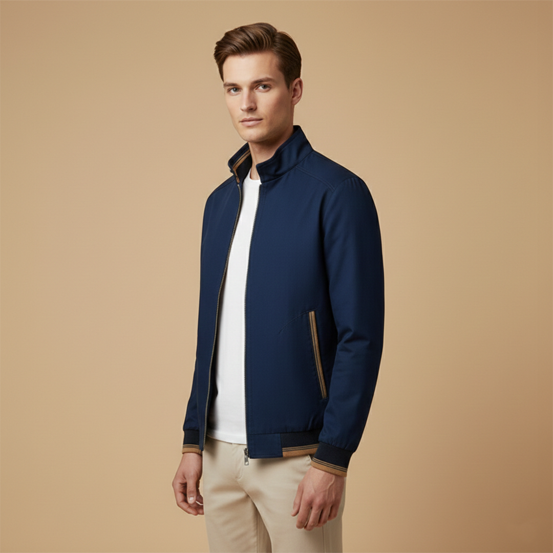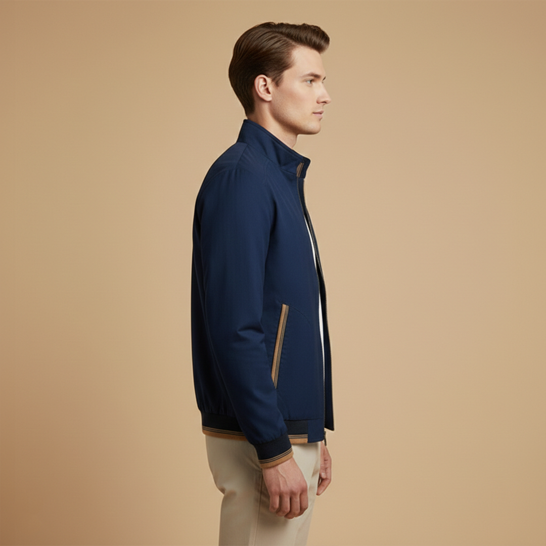 Men's Bomber Jacket with Zip and Contrast Stripes