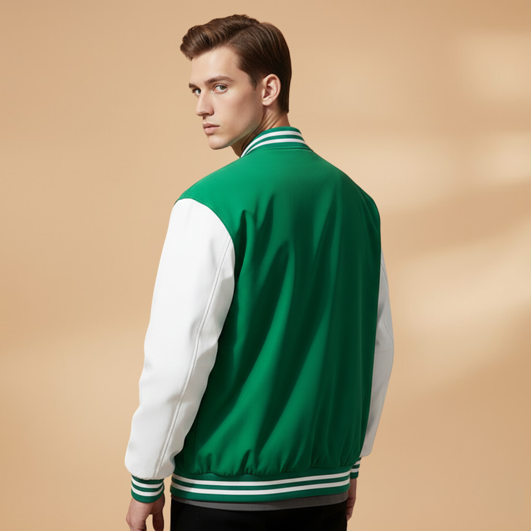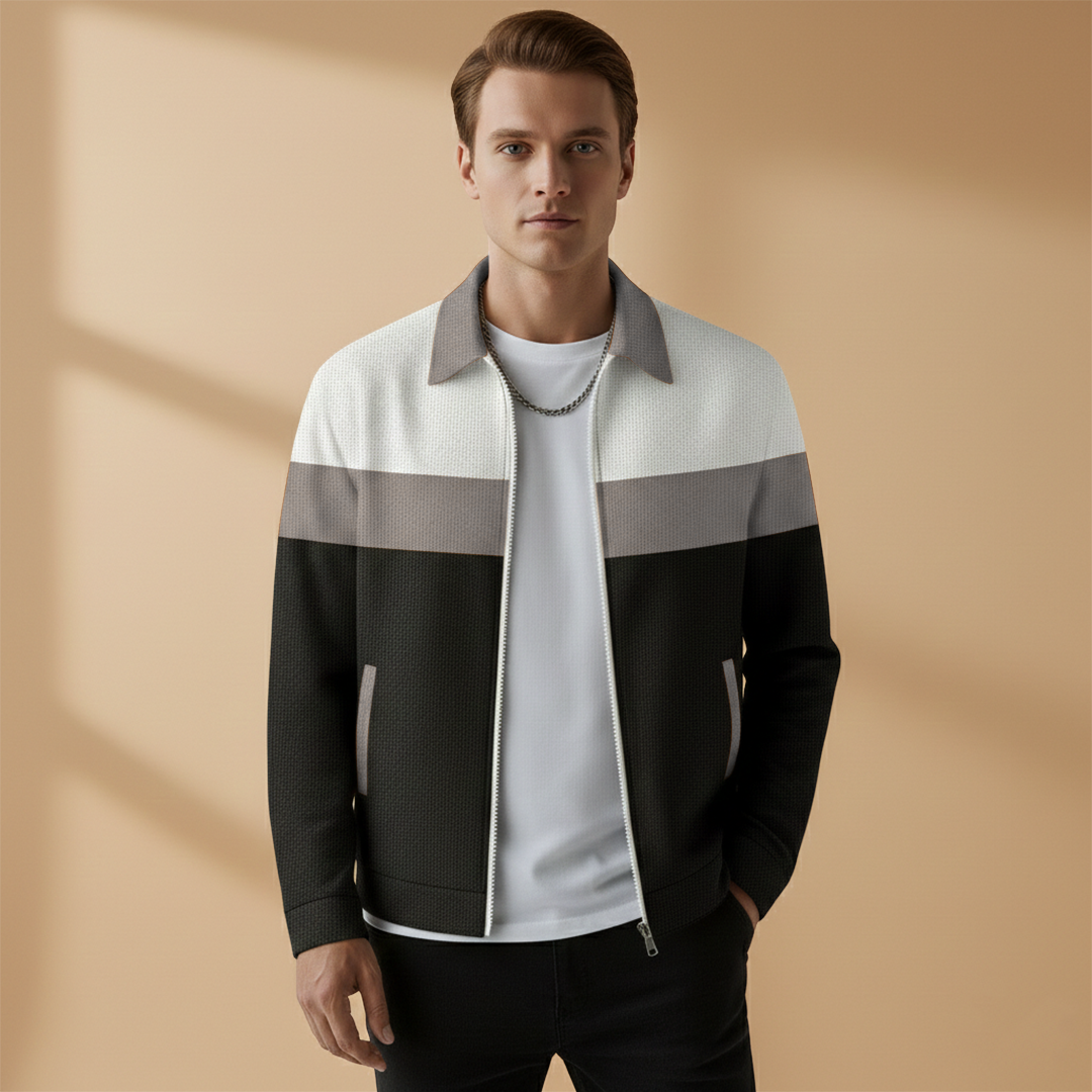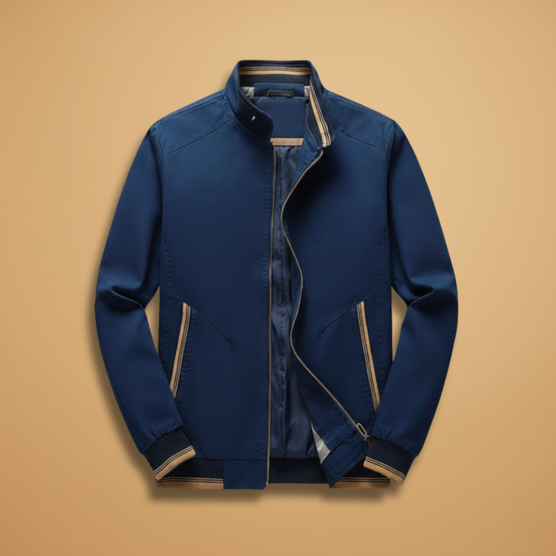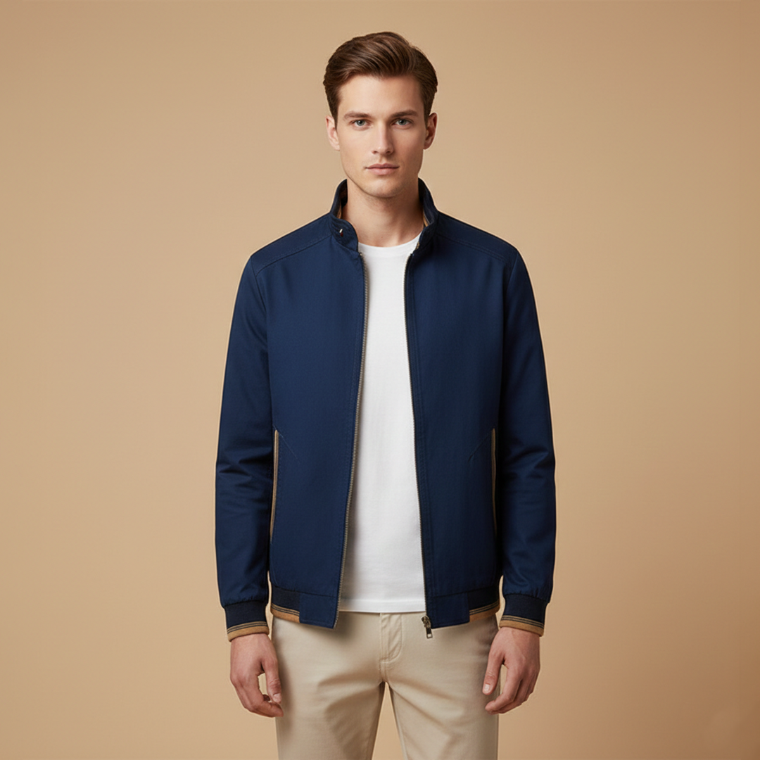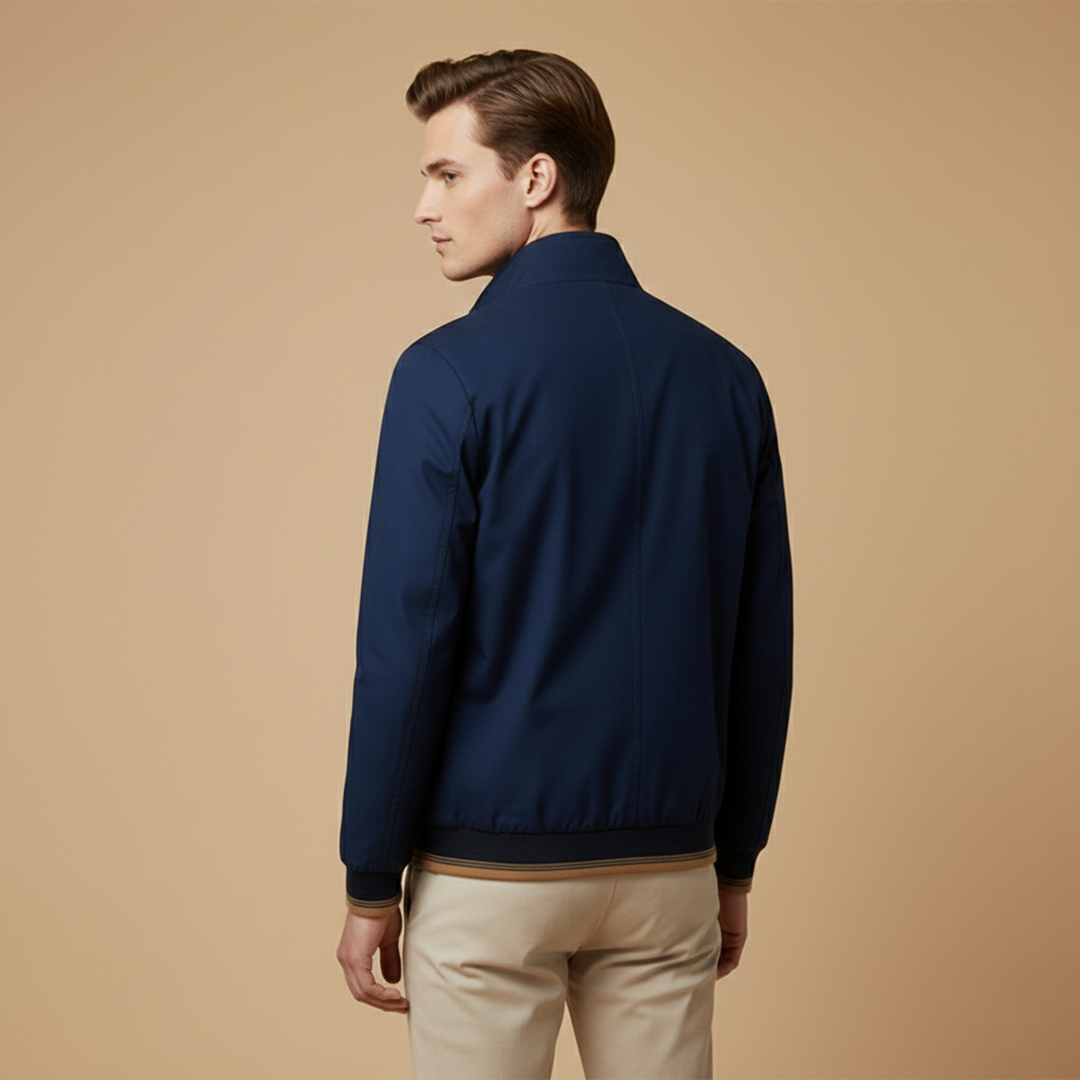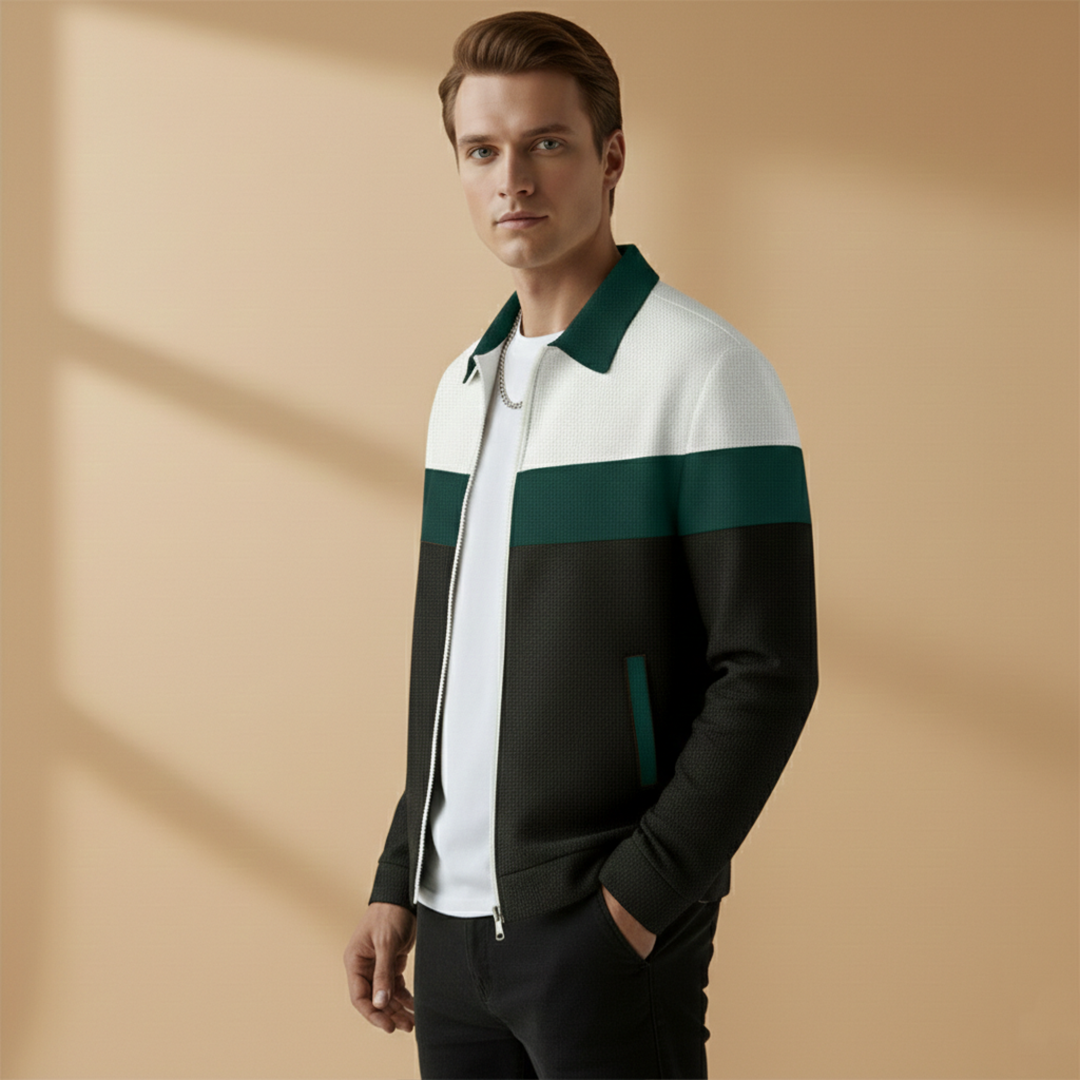 Men's Bomber Jacket with Zip and Contrast Stripes