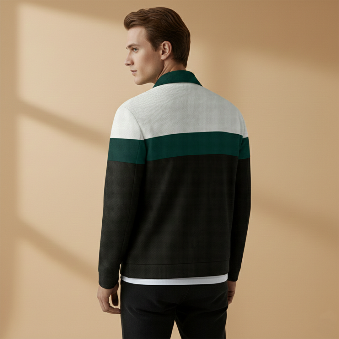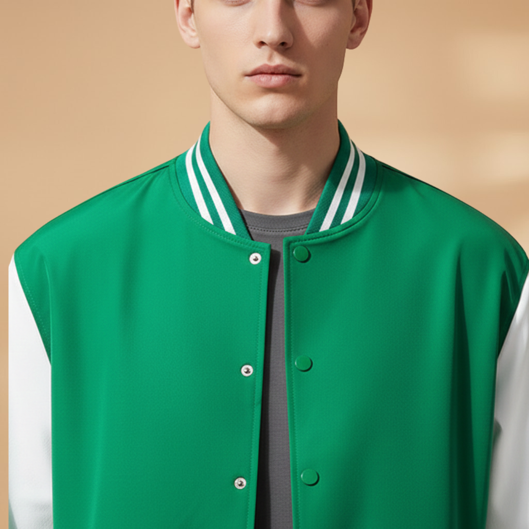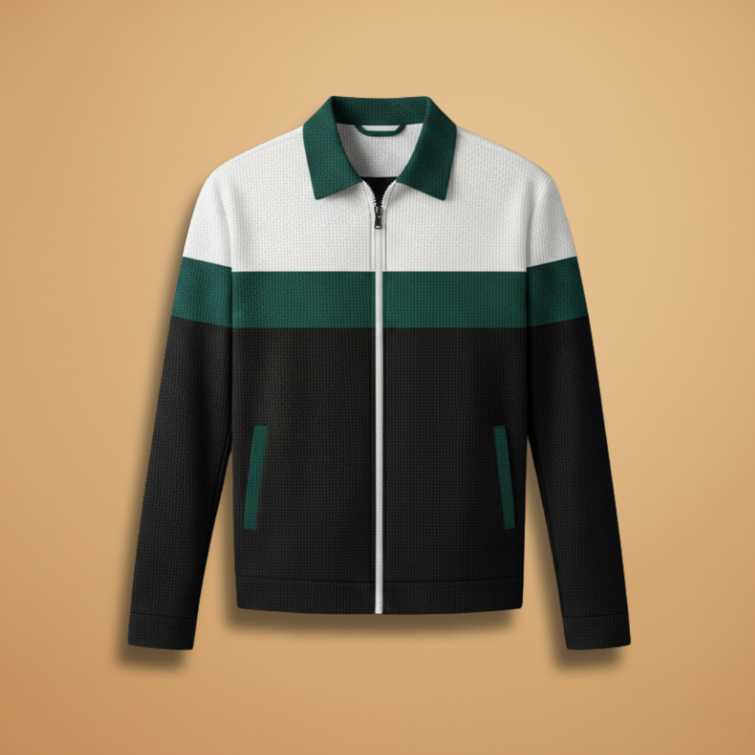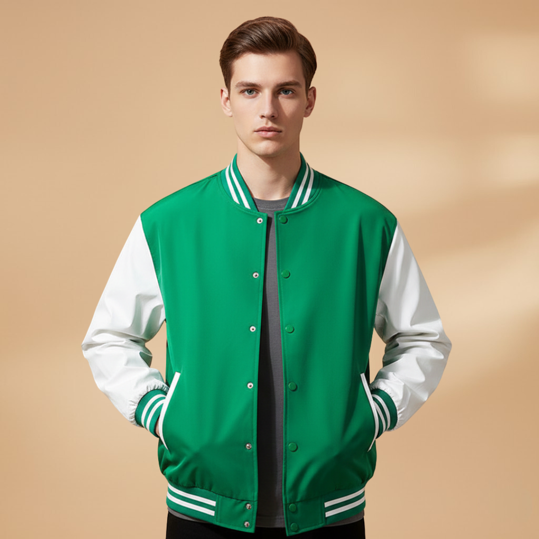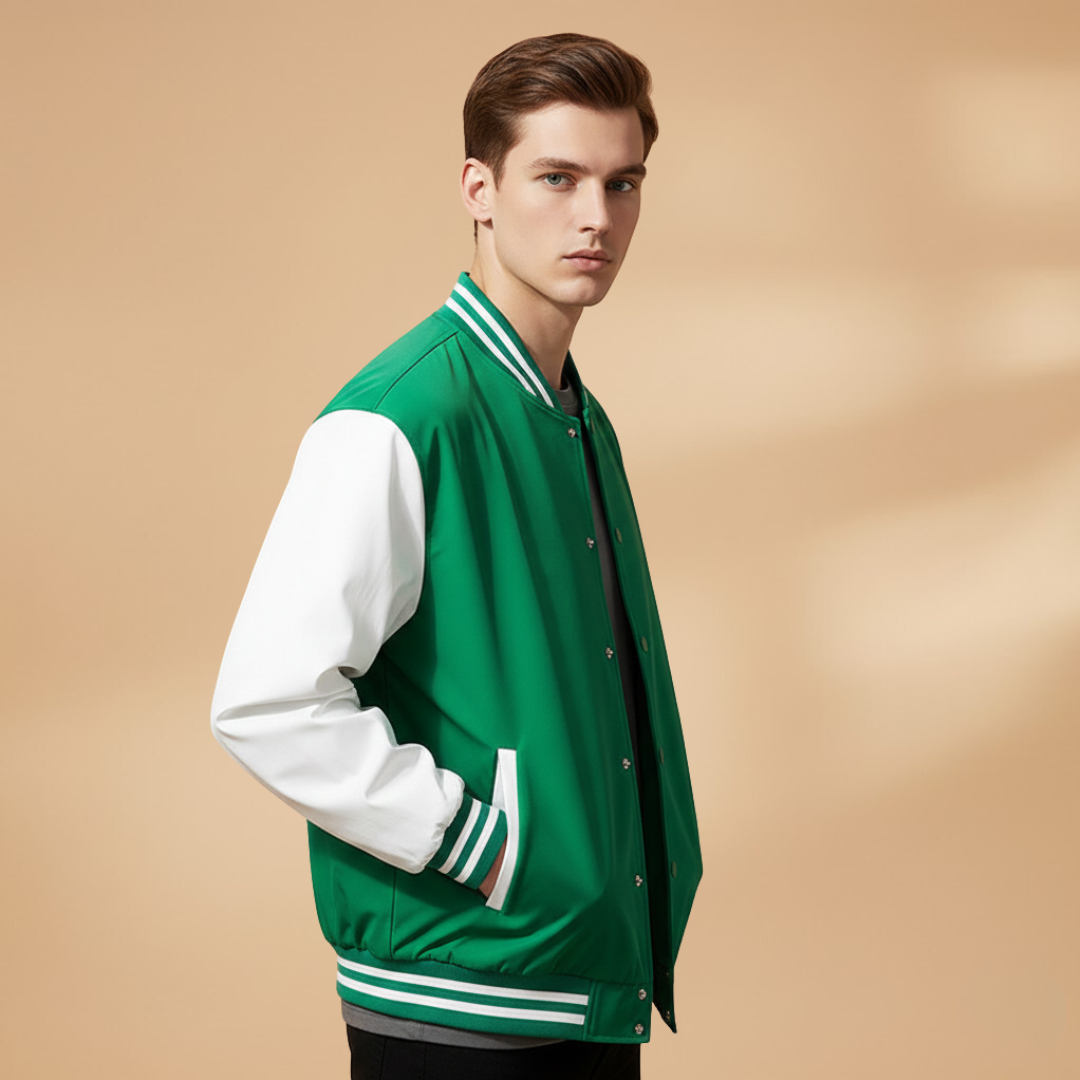 Men's Bomber Jacket with Zip and Contrast Stripes