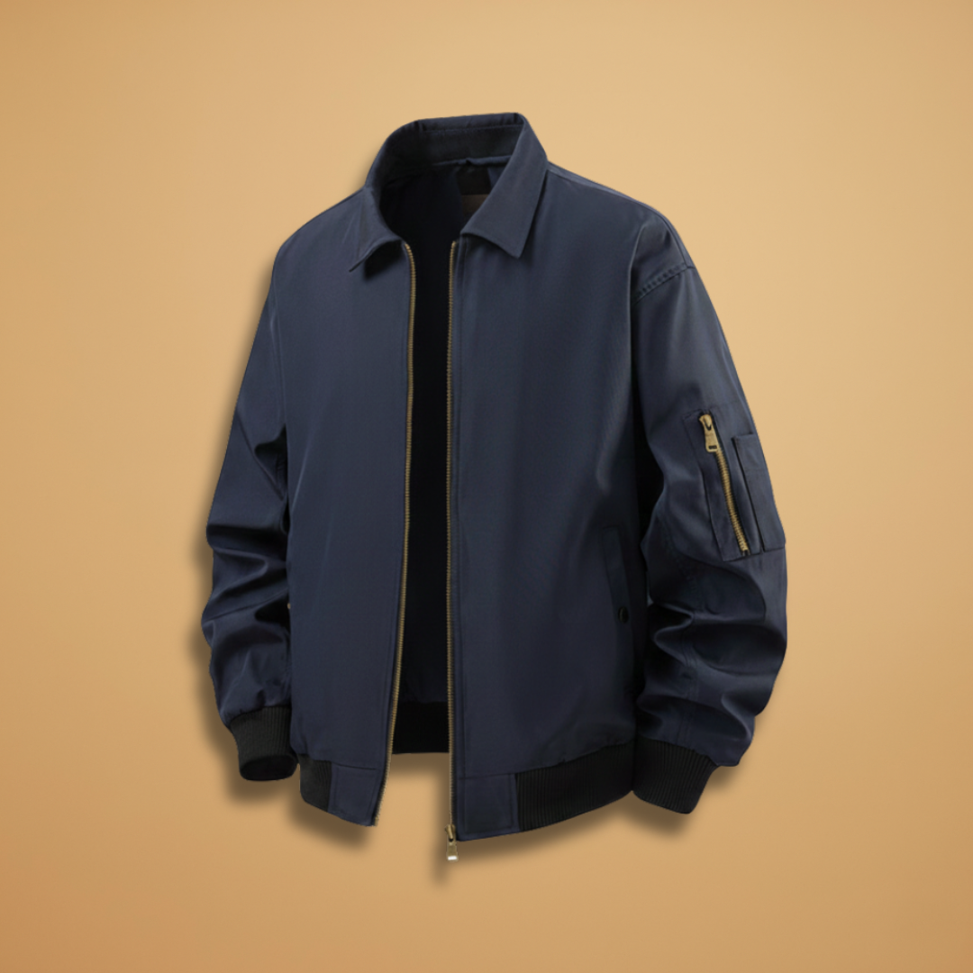 Men’s Bomber Jacket with Zipper Pockets and Ribbed Hem