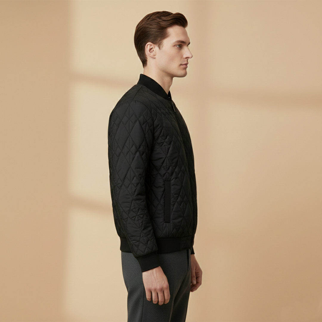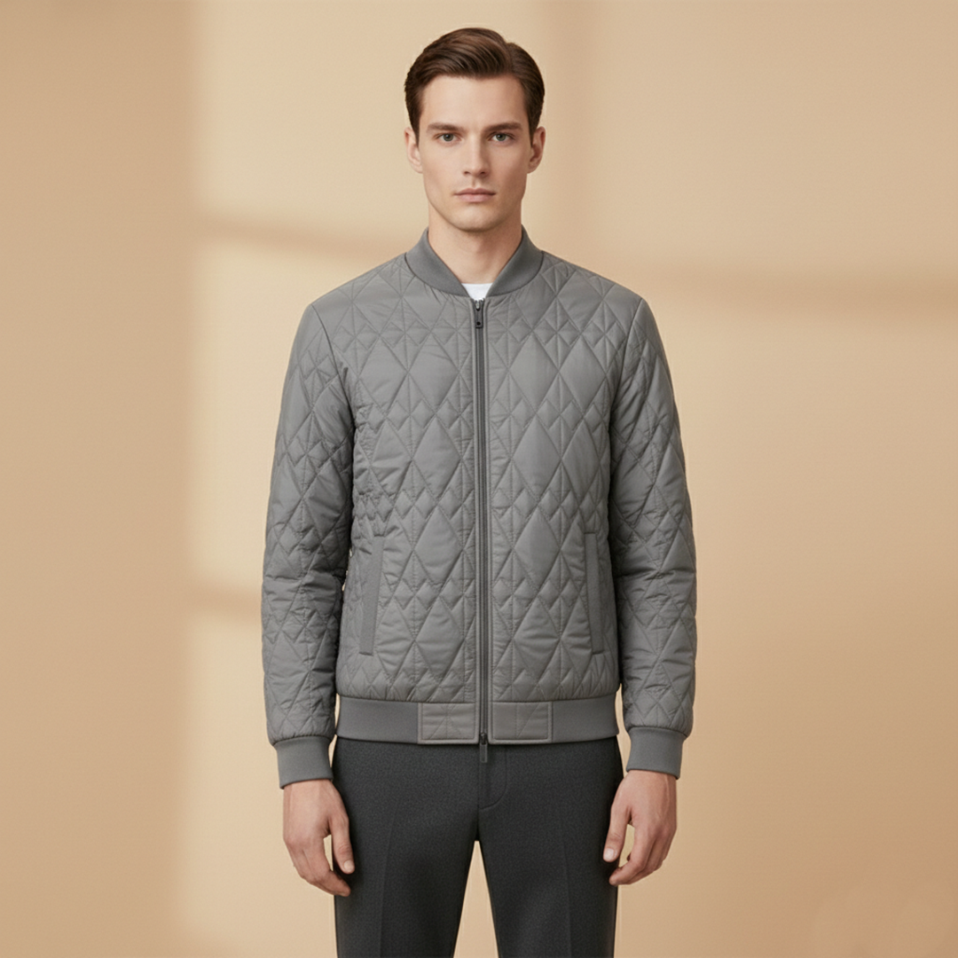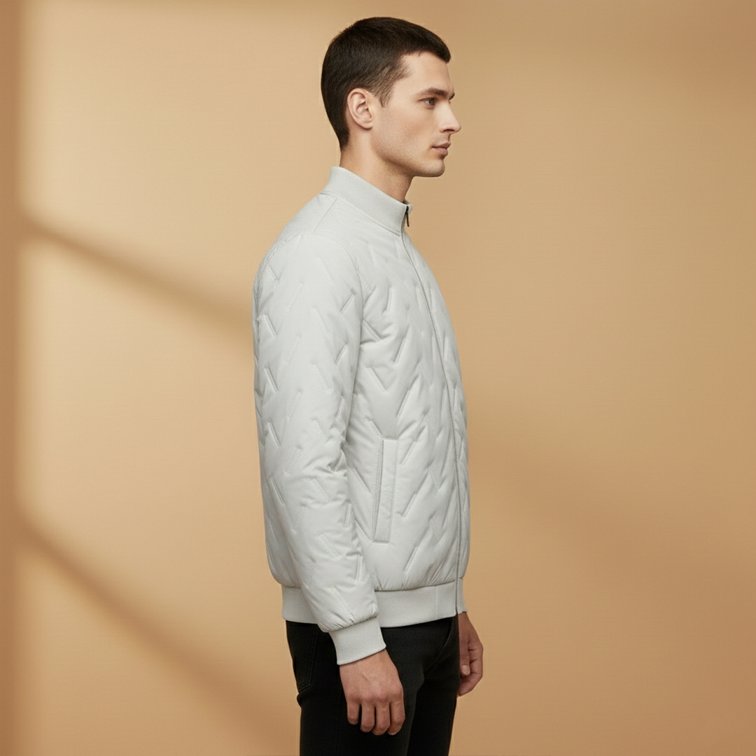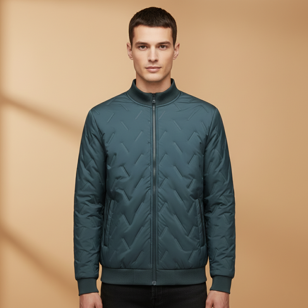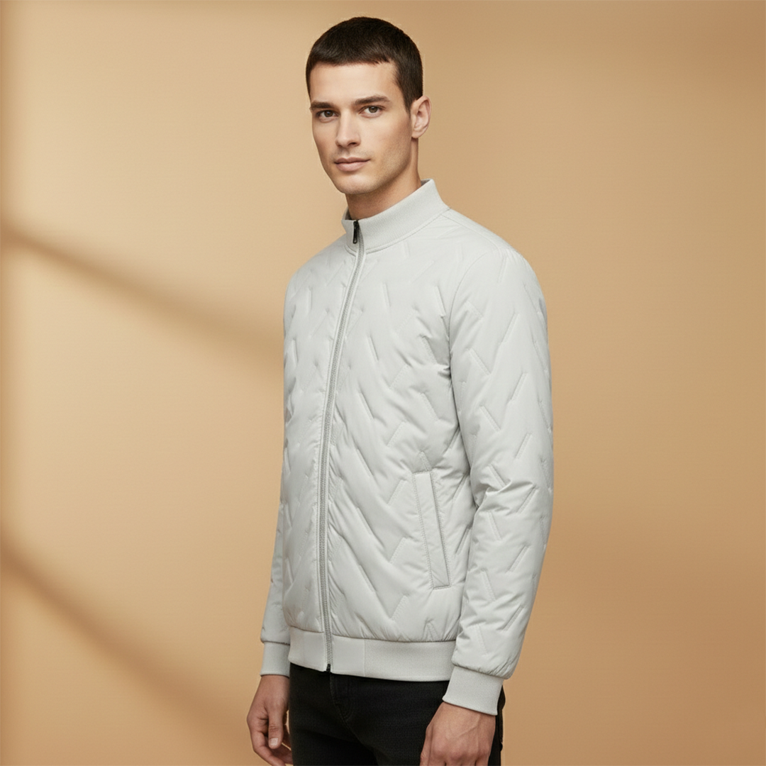 Men's Lightweight Padded Jacket with Zip and Quilted Surface