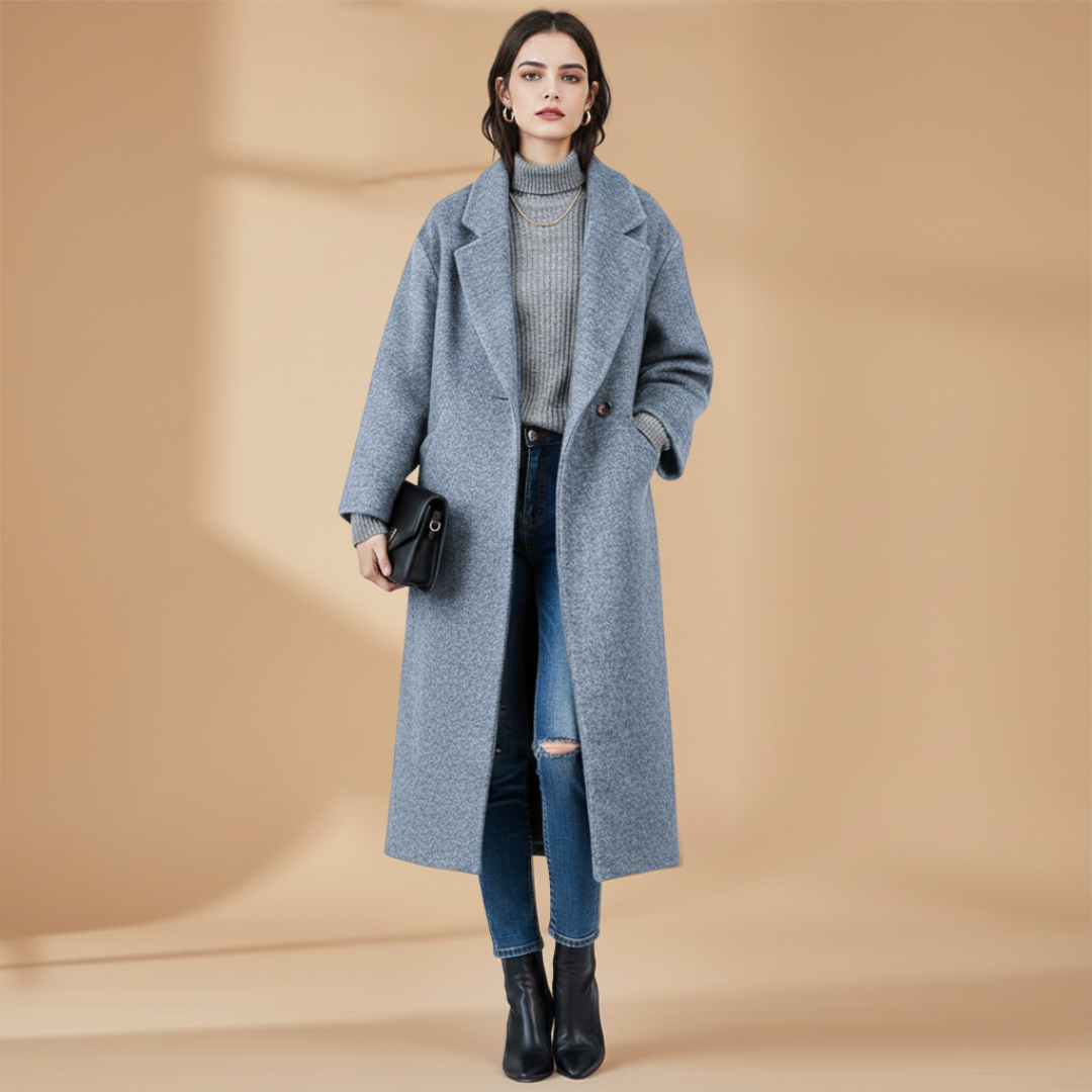 Button closure: Centrally placed button closure at the front to fasten the coat.