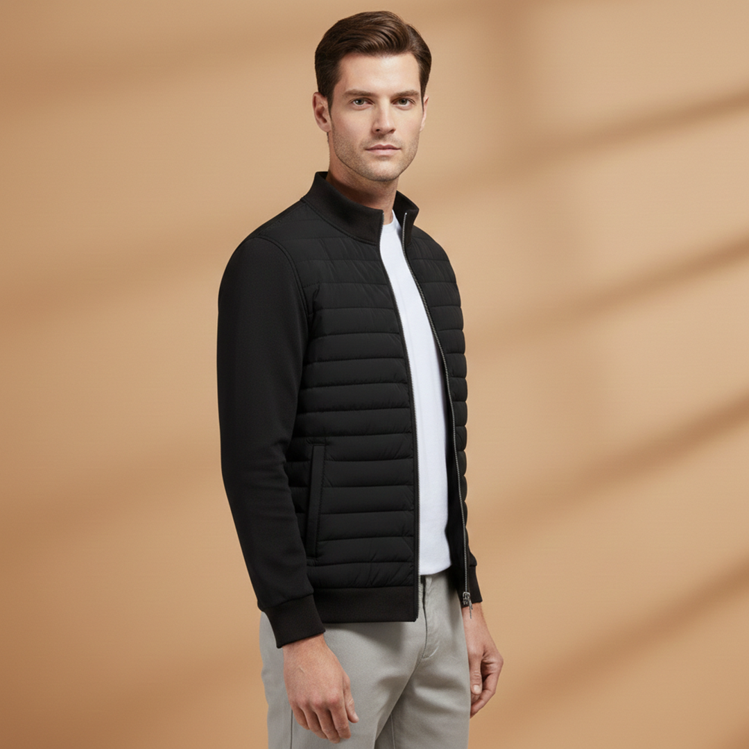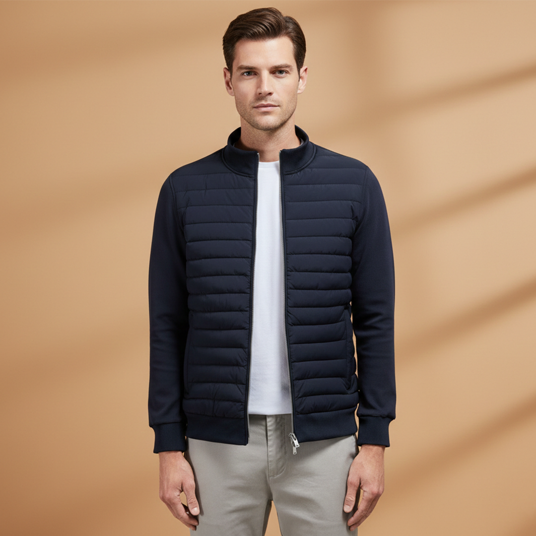 Men’s bomber jacket featuring a padded front and elastic finishing details