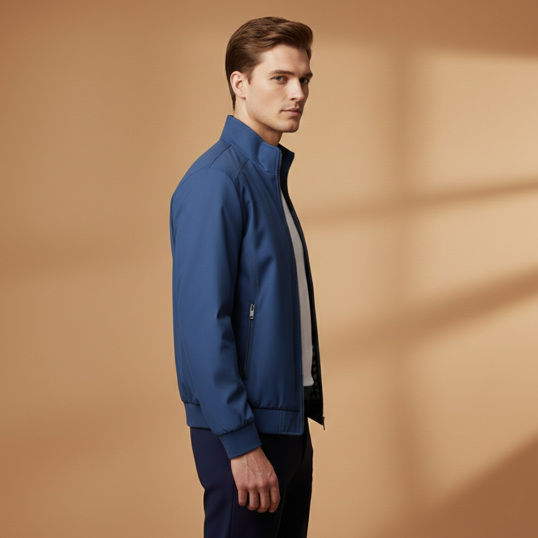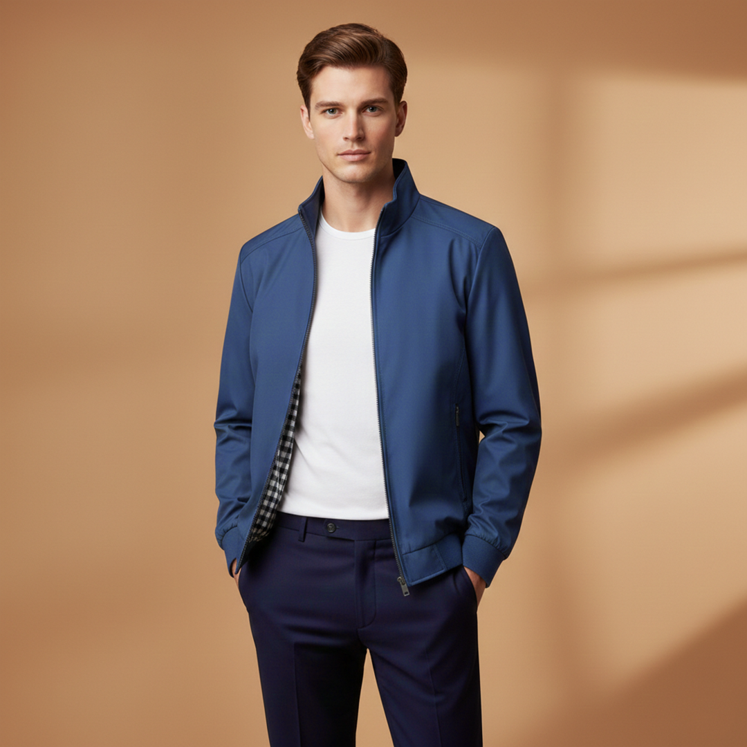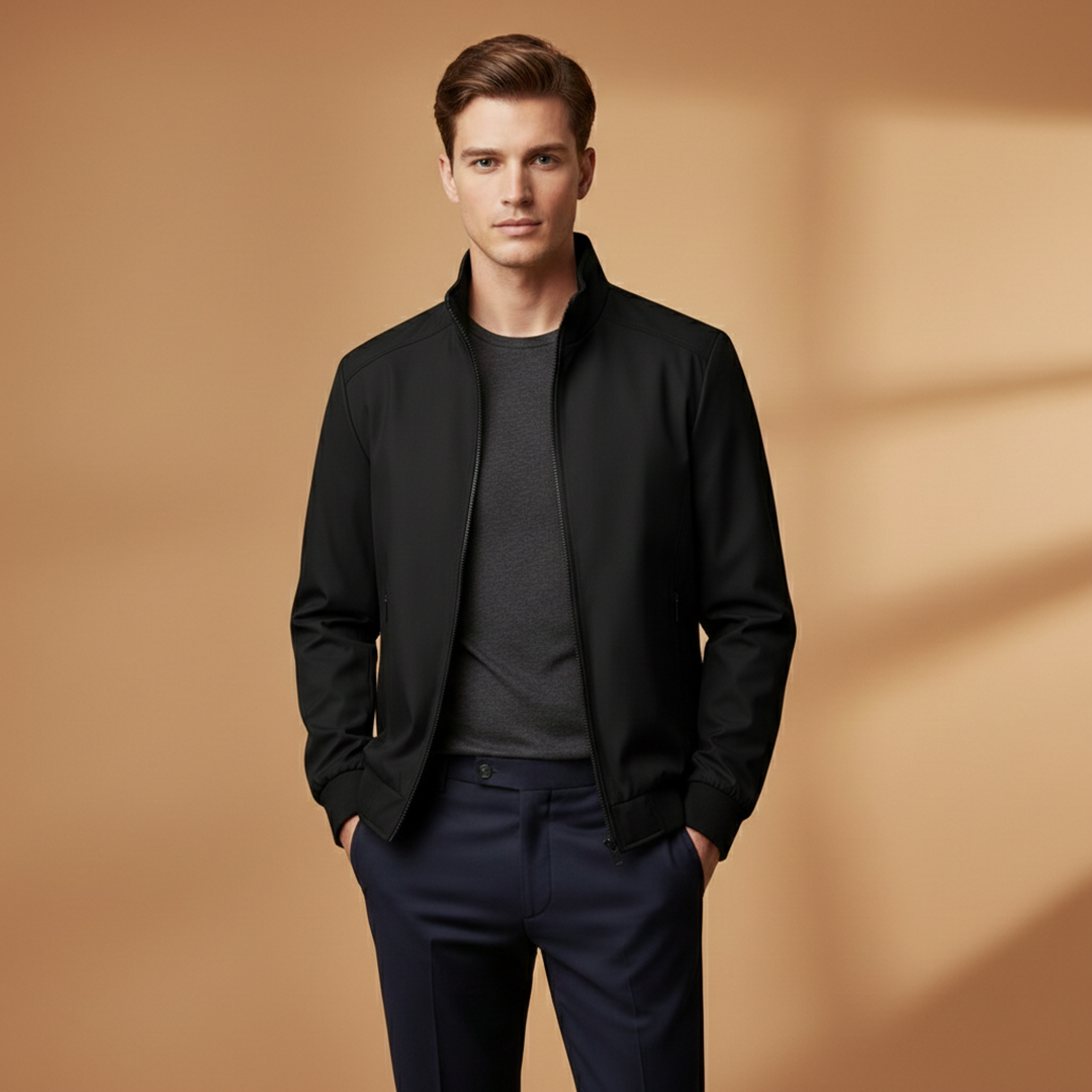 Men’s bomber jacket with a zip front and stand collar