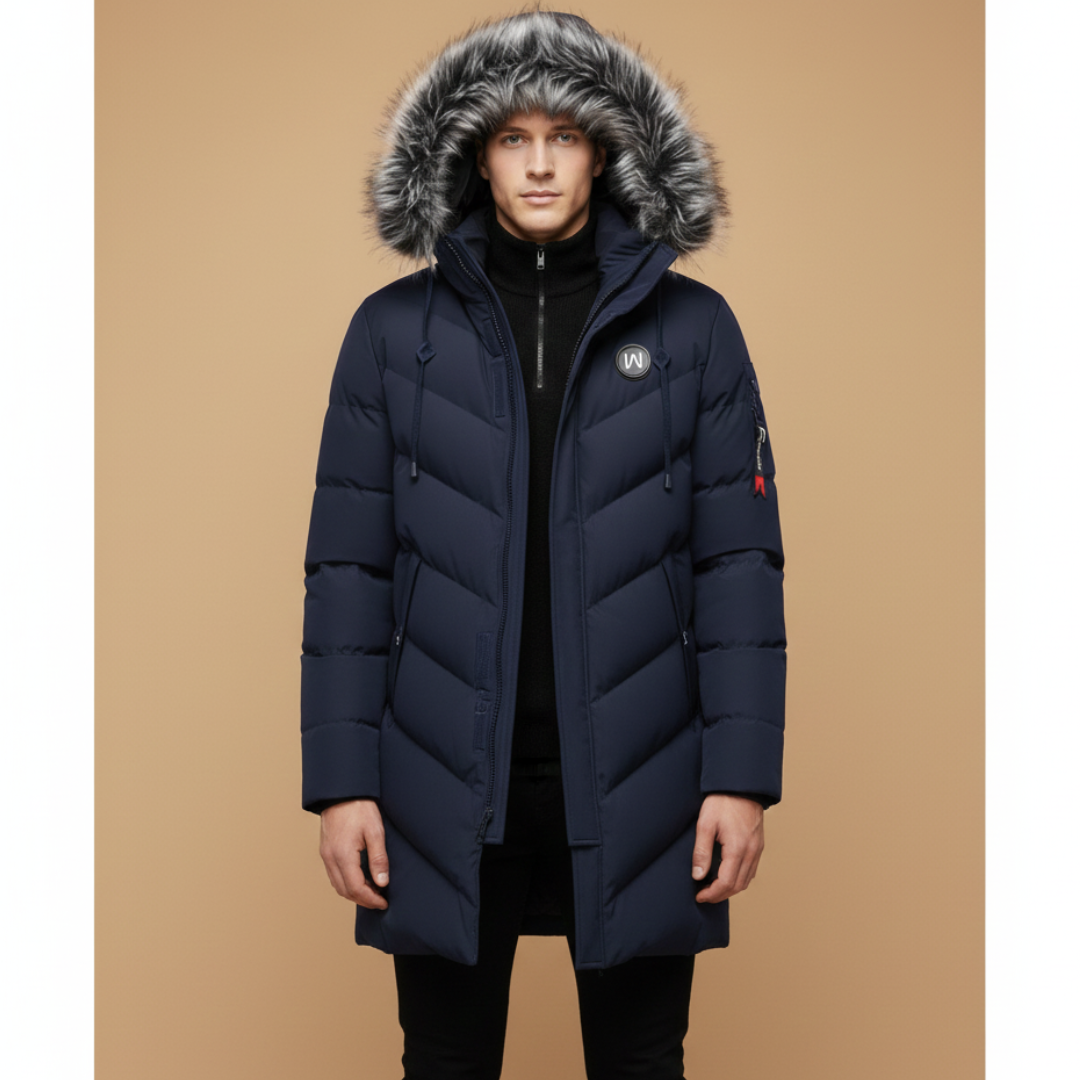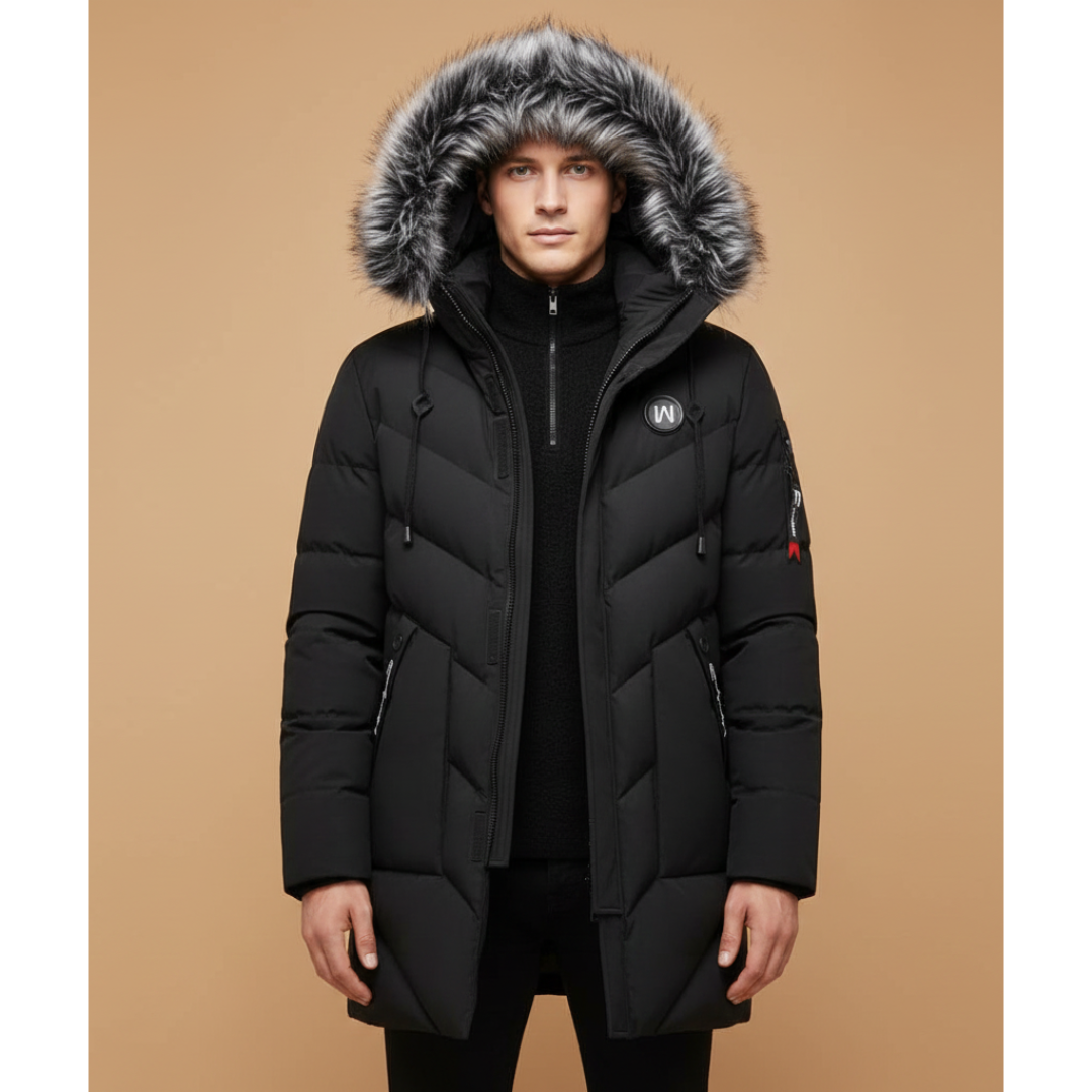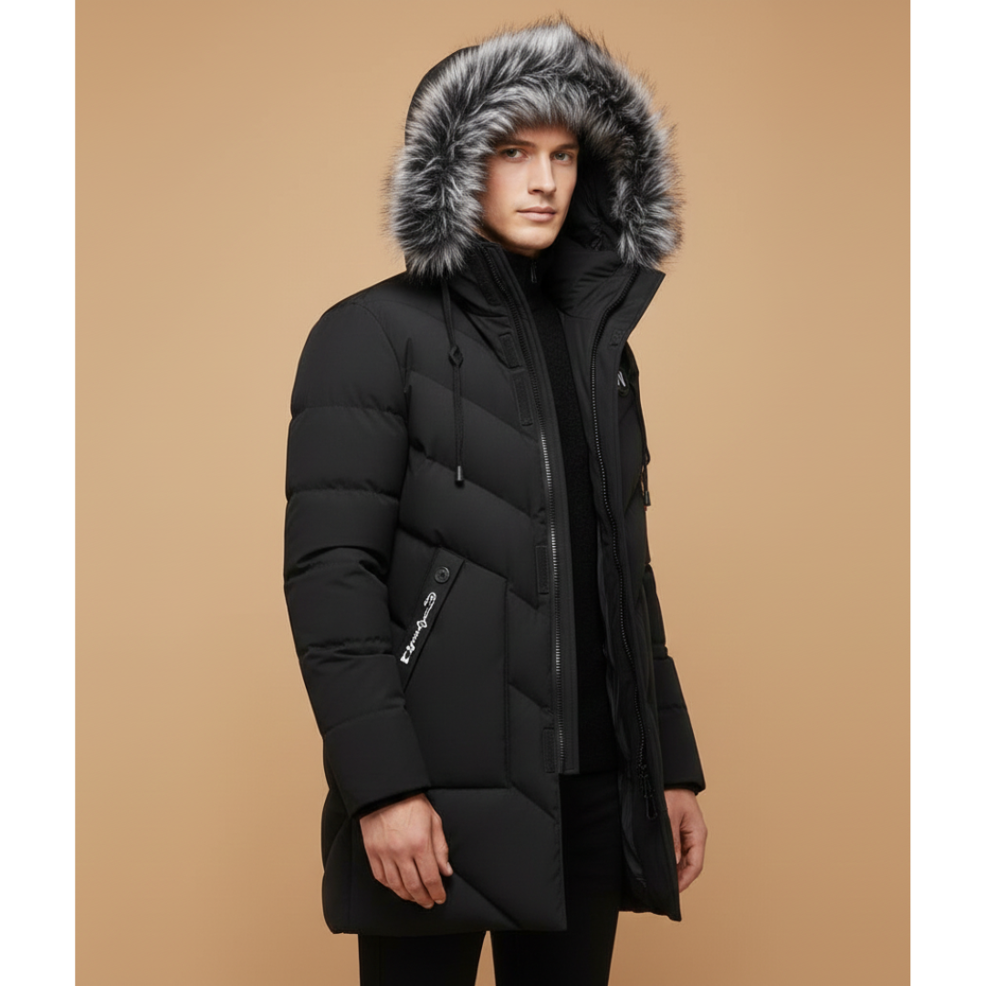 Men’s Quilted Parka with Hood and Zip Closure