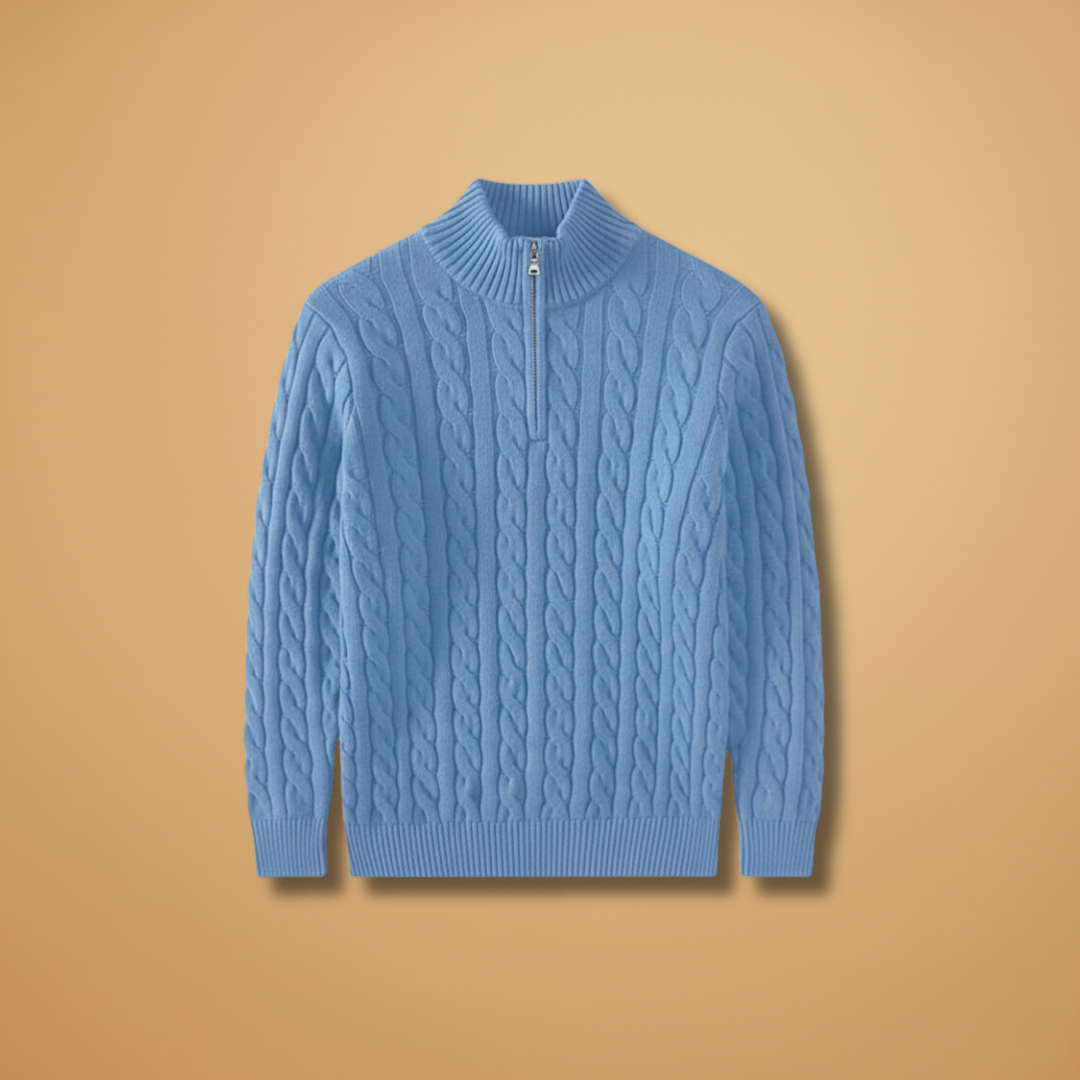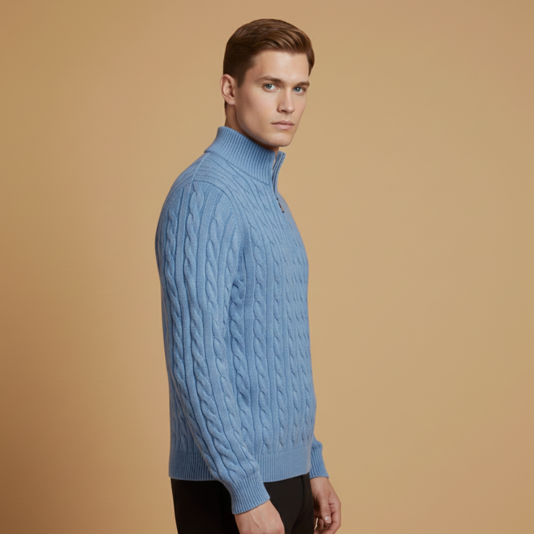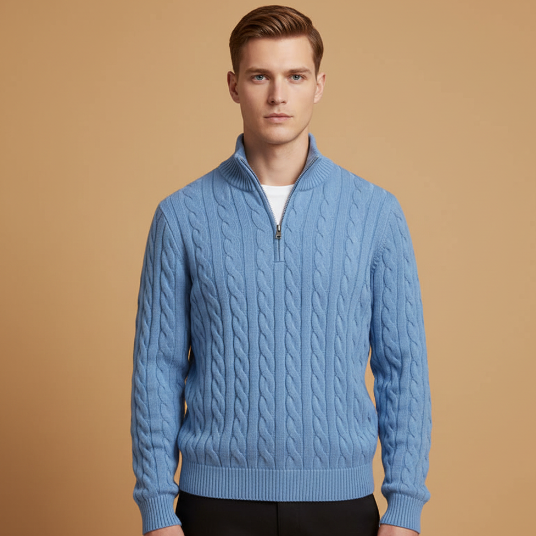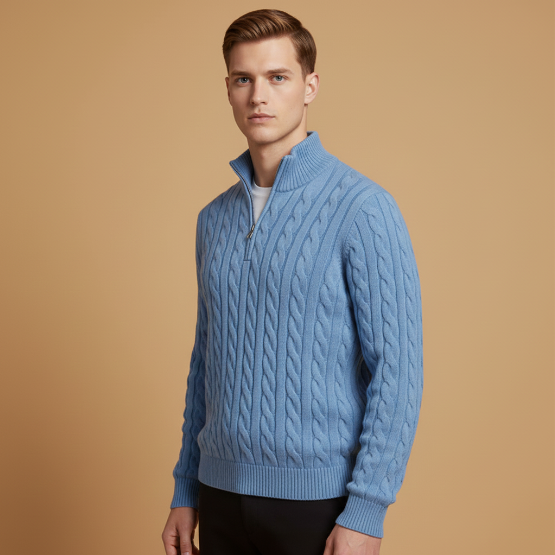 Men’s Sweater with Half-Zip Neckline and Textured Pattern