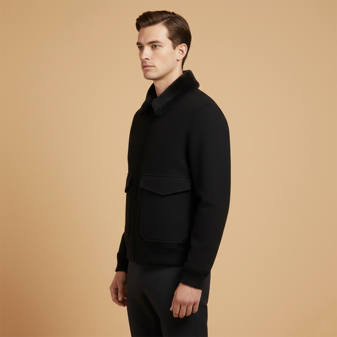 Men’s bomber jacket with a detachable collar and ribbed edge details