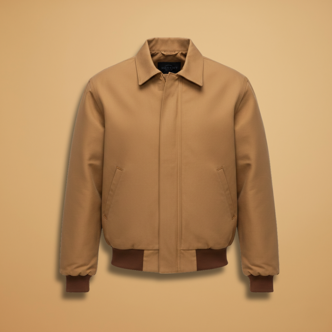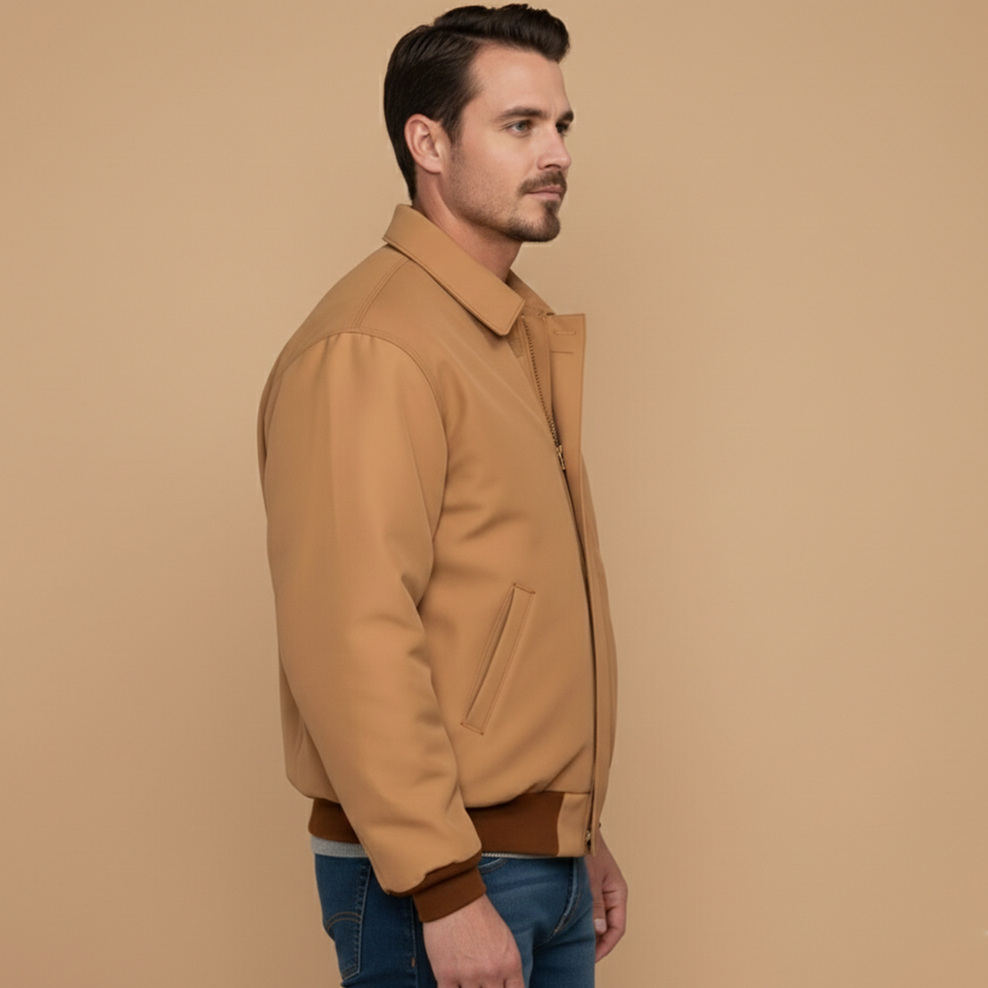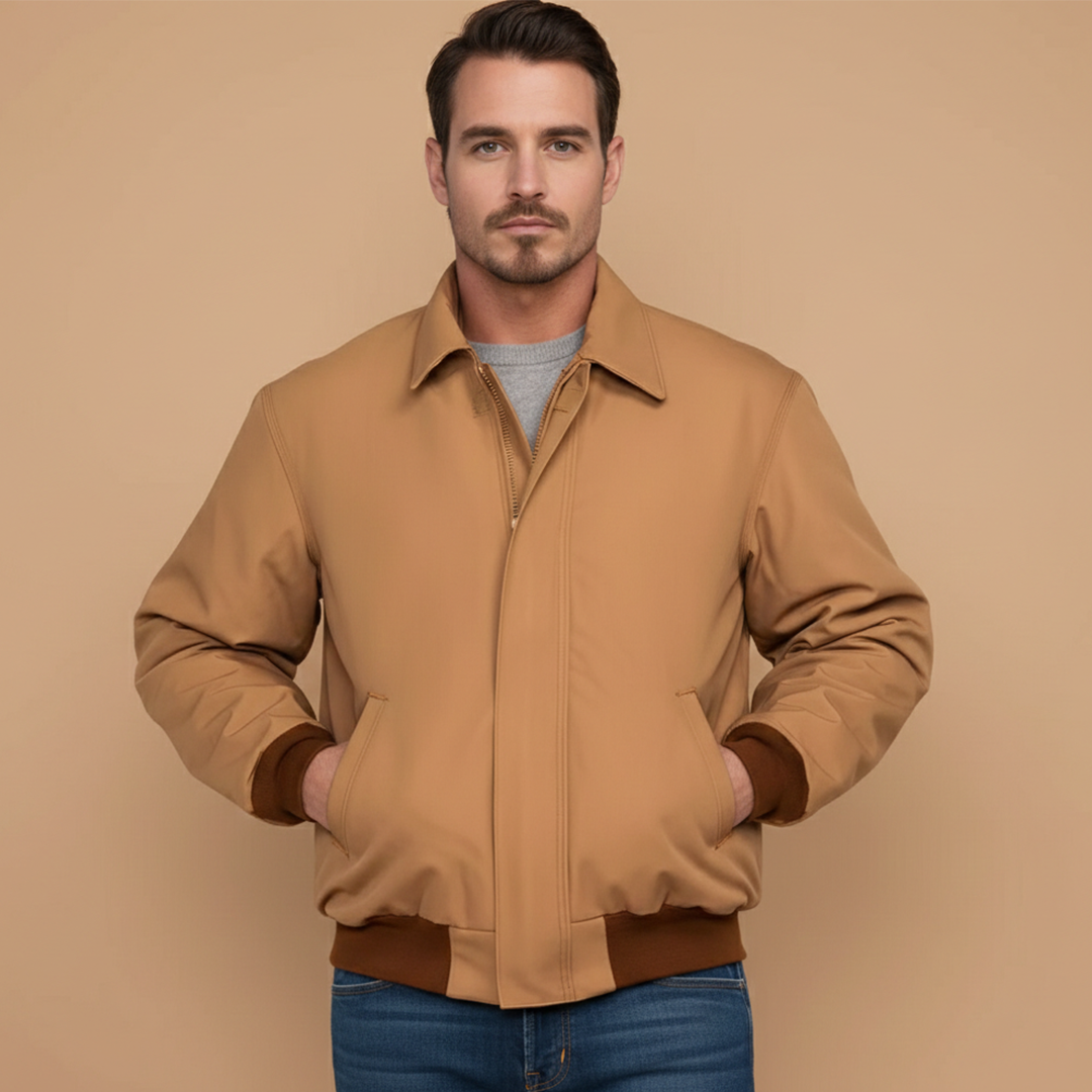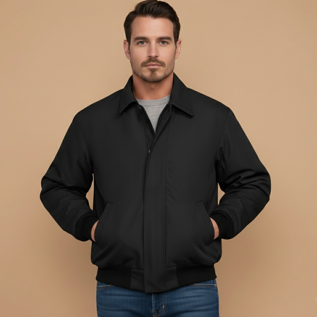 Men's Bomber Jacket with Zip Closure and Ribbed Cuffs