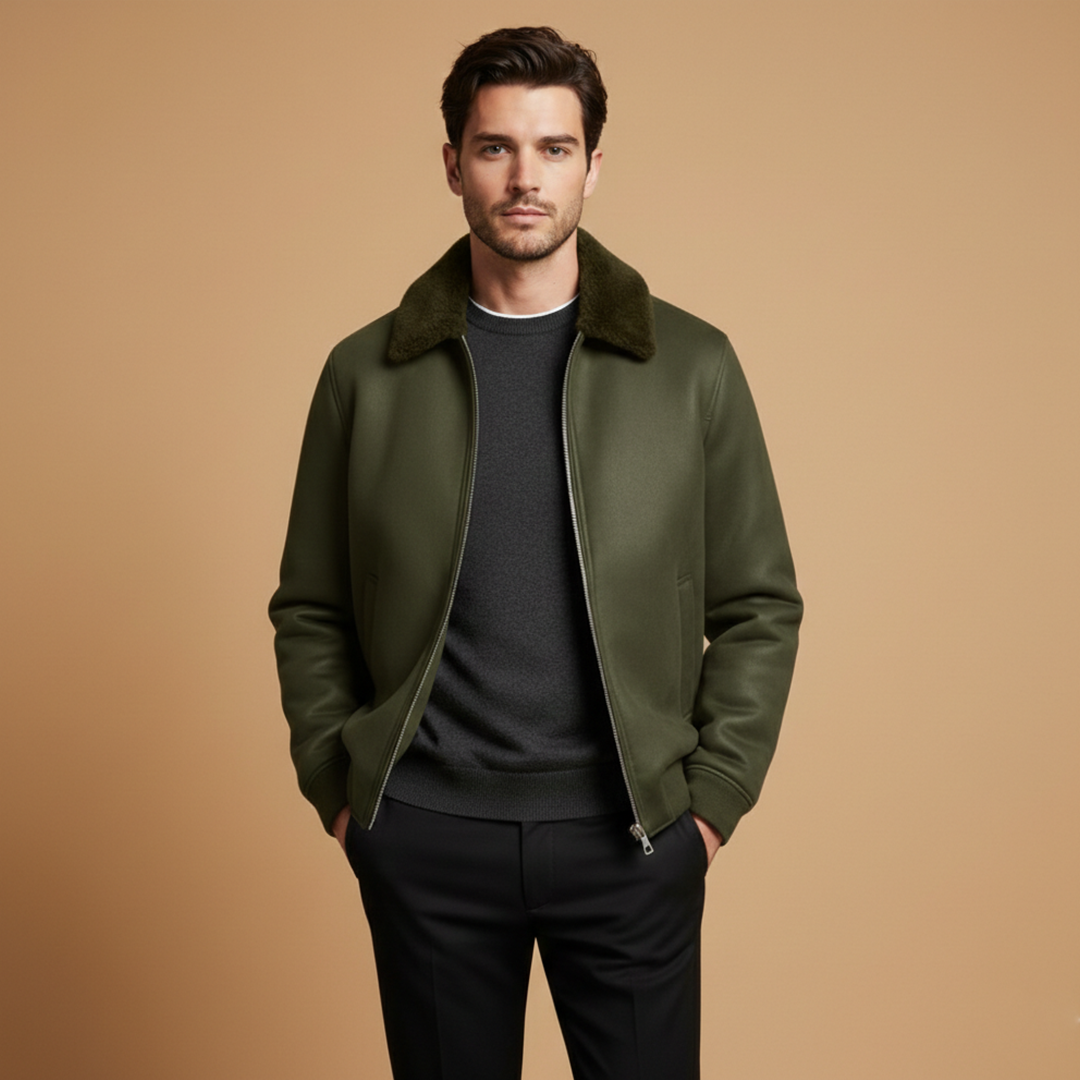 Men's Bomber Jacket with Zip Closure and Ribbed Cuffs