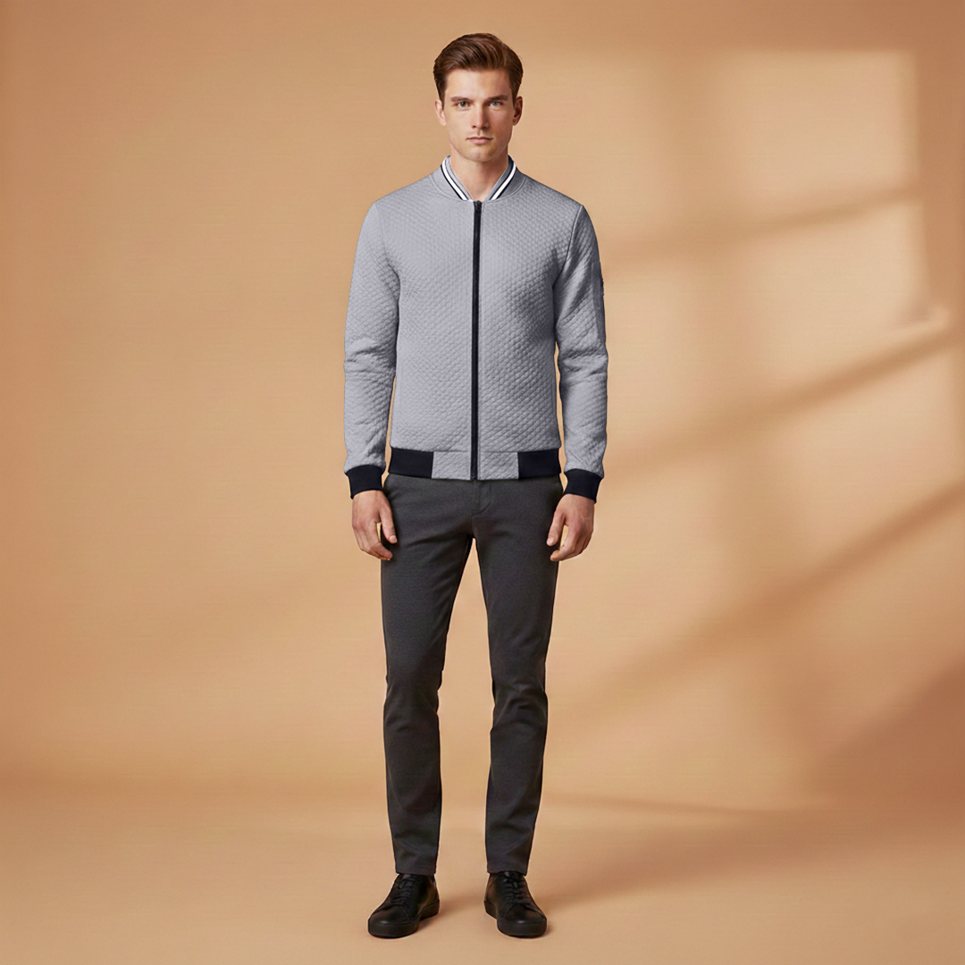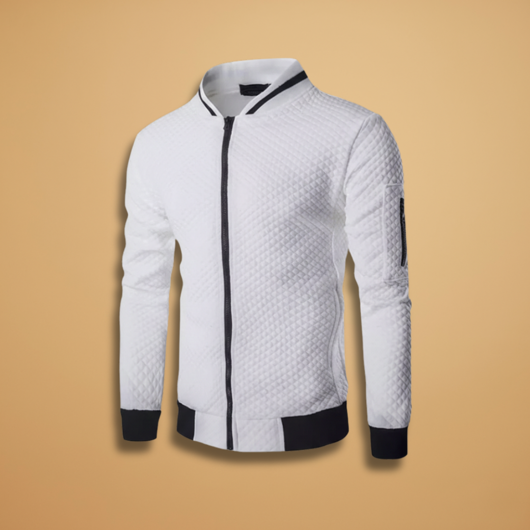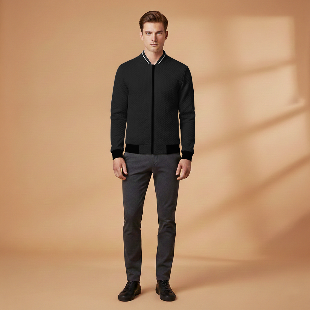 Men’s bomber jacket designed with a zip front and textured surface