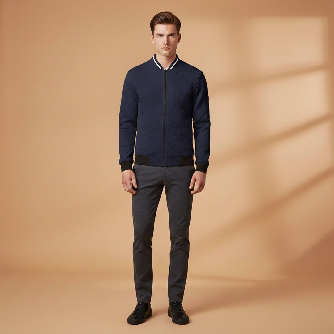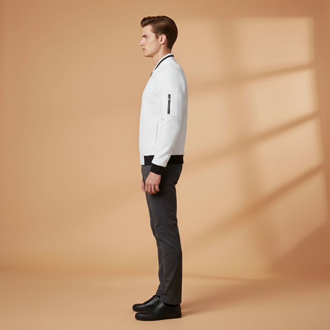 Structured Neckline: Bomber-style neckline forming a clean, defined upper edge.