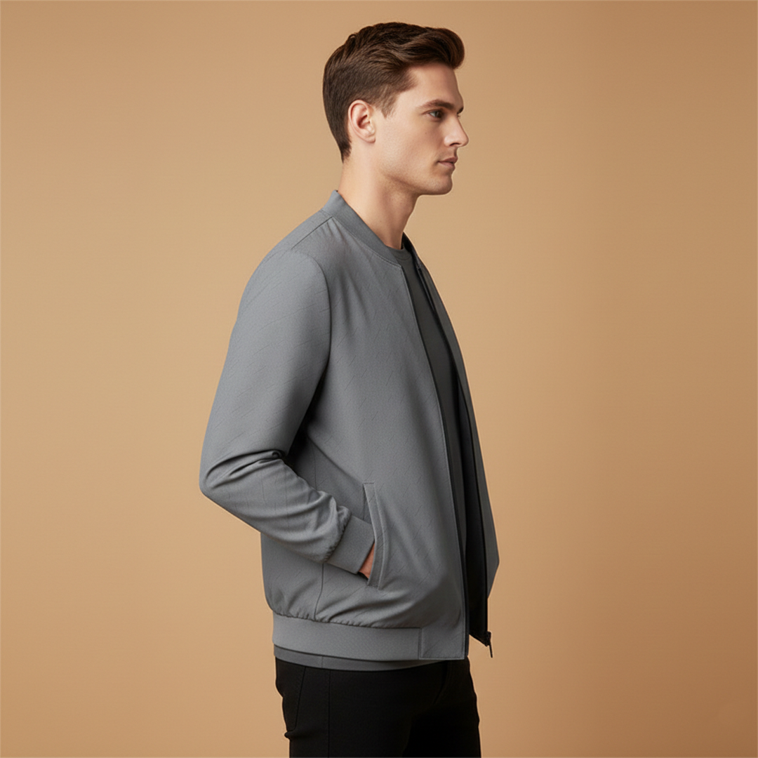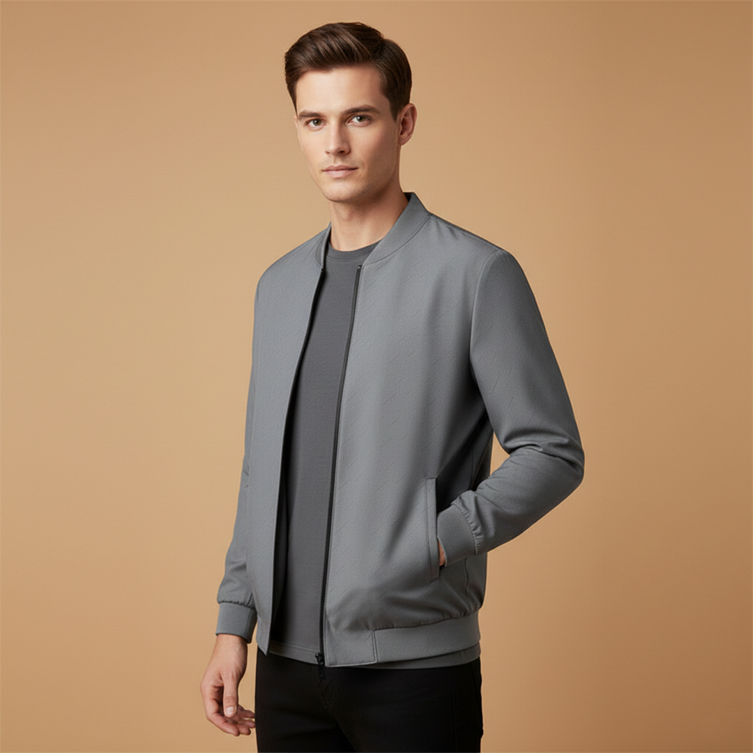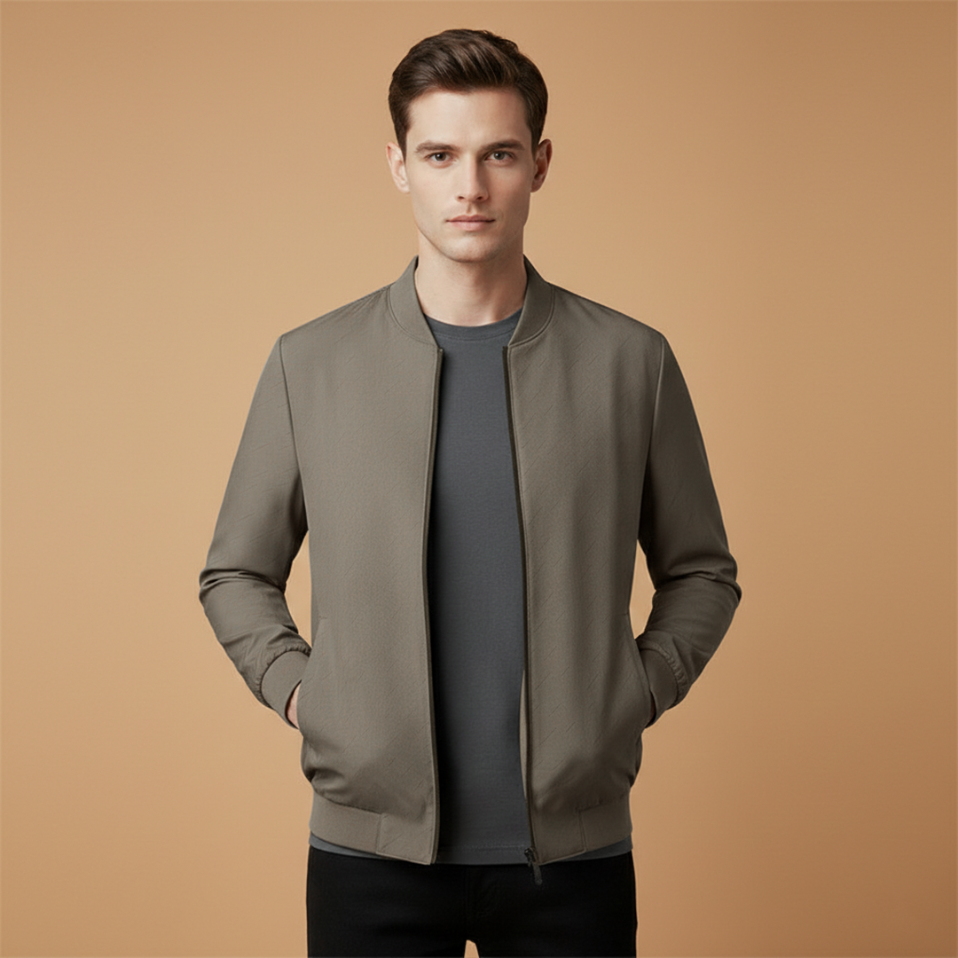 Men's Bomber Jacket with Zip Front and Ribbed Cuffs